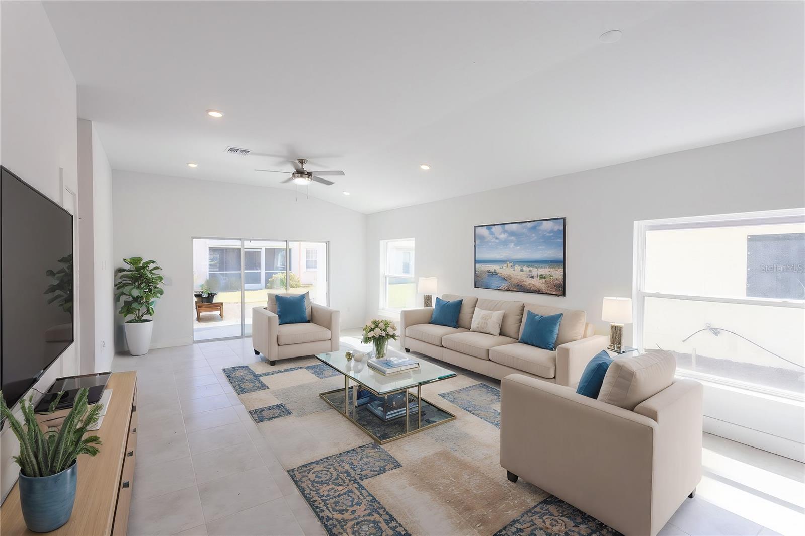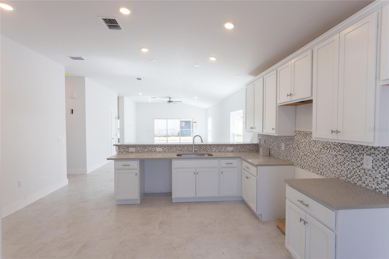 Under Construction. ***NEW CONSTRUCTION, READY IN DECEMBER 2024!*** Elevate your lifestyle with the opulence of the Anna Maria floorplan presented by Carpenter Homes—a masterpiece within the Florida Living Series, certified by the Florida Green Building Coalition (FGBC). This home features 3 bedrooms and 2 full bathrooms. This dream home is designed and built to immerse you in luxury. As you enter, a beautiful kitchen welcomes you with an expansive, oversized island that seamlessly flows into the living and dining area. The finesse of soft-close, Shaker 42" cabinets, upgraded Fresh Linens 3CM quartz countertops, and Bliss Glass/Stone Mosaic Tile kitchen backsplash add a functional touch of luxury to the kitchen. Kitchen upgrades include a Moen Sleek chrome kitchen faucet, garbage disposal, and sleek stainless steel energy efficient appliances. This home exudes sophistication with a vaulted ceiling and 3 panel 9 foot sliding glass doors! Additionally, Carpenter Homes provides an upgraded brushed nickel lighting package and a vanity fixture in 2nd bathroom, accenting the overall lighting design. Each bedroom and the great room feature 52" brushed nickel ceiling fans, complemented by an upgraded SEER2 HVAC system to keep you cool and comfortable in the Florida weather. Complimenting the expansive living area is Magnisi 18"x18" white ceramic tile flooring. The Owner's suite offers a luxurious retreat, featuring a shower adorned with 4x16” Anatolia Soho white tiles, complemented by Anatolia Zen Flat Pebble vertical listello accents, and a spacious walk-in closet. The Owner's bathroom features a striking 72x36” contemporary mirror with front and back LED lighting, anti-fog technology, and customizable color settings with a dimmer for the ultimate in modern sophistication. The home boasts Magnisi white 8x12” upgraded tiled walls in the second bath/shower, 3CM quartz vanity tops, and Moen Genta LX chrome faucets. The ampleness of this home continues with a utility room, and thoughtful additions such as energy-efficient R-4.1 insulation on concrete exterior walls, Taexx tubes for pest control, and fabric hurricane shutters for every window. The Florida friendly landscaped yard is complemented by an irrigation system with rain sensor to help maximize efficiency. This secure community not only enhances the outdoor space's sophistication but also creates an ideal setting for a range of family activities, turning the backyard into a retreat for intimate family gatherings and treasured moments. The expansive 2-car garage, complete with garage door opener and two remotes, not only provides ample space for your everyday needs but also ensures the utmost convenience and versatility for all your storage and parking requirements. Step into a world where extravagance meets eco-conscious living—your forever home awaits, a testament to timeless elegance and modern sustainability. COMMUNITY: Residents enjoy members-only access to the Oak Hollow Recreation Center which includes an exercise room, table tennis, heated swimming pool (no lifeguard), children's playground, tennis court, pickleball, bocce ball court, horseshoes, corn-hole, billiards room, basketball court, picnic tables shaded by beautiful old oak trees, and a lending library. Residents also enjoy a vibrant social calendar filled with community events year-round! Available to view anytime.