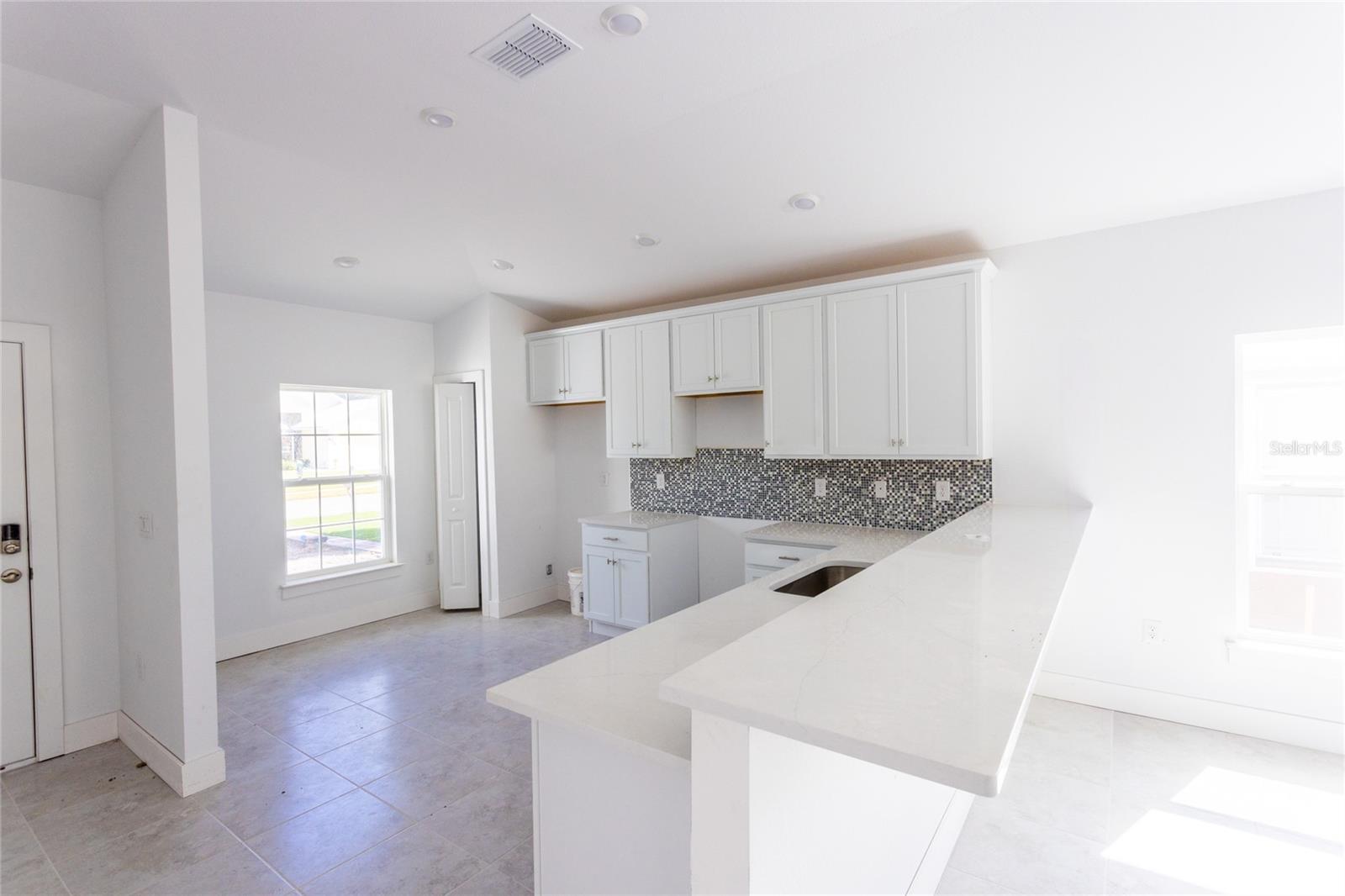 Under Construction. ***NEW CONSTRUCTION, READY IN DECEMBER 2024!*** Elevate your lifestyle with the opulence of the Anna Maria floorplan presented by Carpenter Homes—a masterpiece within the Florida Living Series, certified by the Florida Green Building Coalition (FGBC). This home features 3 bedrooms and 2 full bathrooms. This dream home is designed and built to immerse you in luxury. As you enter, a beautiful kitchen welcomes you with an expansive, oversized island that seamlessly flows into the living and dining area. The finesse of soft-close, Shaker 42" cabinets, upgraded Fresh Linens 3CM quartz countertops, and Bliss Glass/Stone Mosaic Tile kitchen backsplash add a functional touch of luxury to the kitchen. Kitchen upgrades include a Moen Sleek chrome kitchen faucet, garbage disposal, and sleek stainless steel energy efficient appliances. This home exudes sophistication with a vaulted ceiling and 3 panel 9 foot sliding glass doors! Additionally, Carpenter Homes provides an upgraded brushed nickel lighting package and a vanity fixture in 2nd bathroom, accenting the overall lighting design. Each bedroom and the great room feature 52" brushed nickel ceiling fans, complemented by an upgraded SEER2 HVAC system to keep you cool and comfortable in the Florida weather. Complimenting the expansive living area is Magnisi 18"x18" white ceramic tile flooring. The Owner's suite offers a luxurious retreat, featuring a shower adorned with 4x16” Anatolia Soho white tiles, complemented by Anatolia Zen Flat Pebble vertical listello accents, and a spacious walk-in closet. The Owner's bathroom features a striking 72x36” contemporary mirror with front and back LED lighting, anti-fog technology, and customizable color settings with a dimmer for the ultimate in modern sophistication. The home boasts Magnisi white 8x12” upgraded tiled walls in the second bath/shower, 3CM quartz vanity tops, and Moen Genta LX chrome faucets. The ampleness of this home continues with a utility room, and thoughtful additions such as energy-efficient R-4.1 insulation on concrete exterior walls, Taexx tubes for pest control, and fabric hurricane shutters for every window. The Florida friendly landscaped yard is complemented by an irrigation system with rain sensor to help maximize efficiency. This secure community not only enhances the outdoor space's sophistication but also creates an ideal setting for a range of family activities, turning the backyard into a retreat for intimate family gatherings and treasured moments. The expansive 2-car garage, complete with garage door opener and two remotes, not only provides ample space for your everyday needs but also ensures the utmost convenience and versatility for all your storage and parking requirements. Step into a world where extravagance meets eco-conscious living—your forever home awaits, a testament to timeless elegance and modern sustainability. COMMUNITY: Residents enjoy members-only access to the Oak Hollow Recreation Center which includes an exercise room, table tennis, heated swimming pool (no lifeguard), children's playground, tennis court, pickleball, bocce ball court, horseshoes, corn-hole, billiards room, basketball court, picnic tables shaded by beautiful old oak trees, and a lending library. Residents also enjoy a vibrant social calendar filled with community events year-round! Available to view anytime.