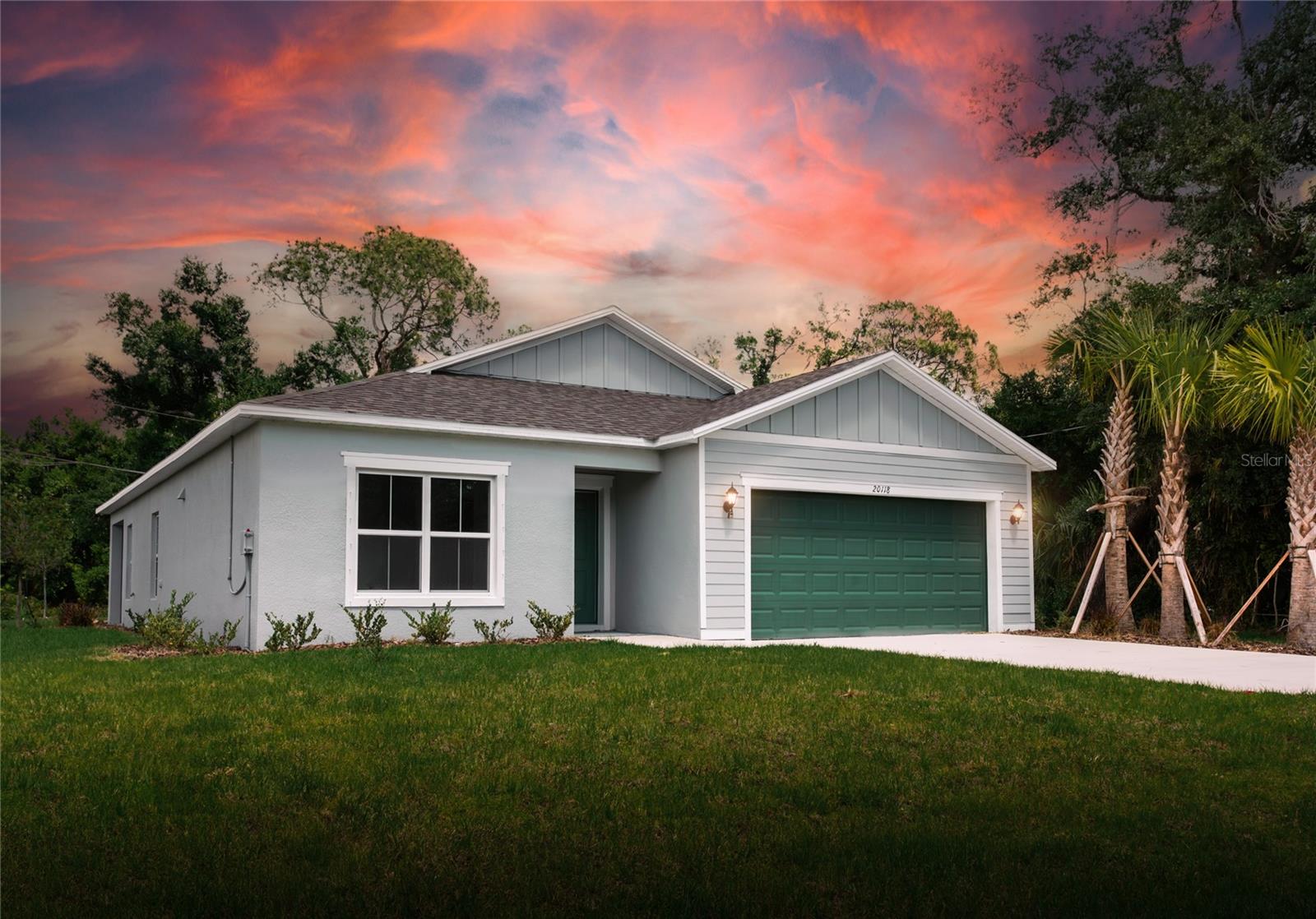 *NEW CONSTRUCTION, NO WAIT, MOVE-IN-READY!* Elevate your lifestyle with the opulence of the Sanibel floorplan presented by Carpenter Homes—a masterpiece within the Florida Living Series, certified by the Florida Green Building Coalition (FGBC). This residence features 4 bedrooms and 2 full bathrooms. This dream home is designed and built to immerse you in luxury! As you enter, a beautiful kitchen welcomes you, with an expansive, oversized bar that seamlessly flows into the living/dining area. The finesse of soft-close, Painted Shale 36" cabinets, SoHo 3x6 Halo Grey subway tile backsplash, and upgraded Blanco Matrix quartz countertops add a functional touch of luxury to the kitchen. Kitchen upgrades include a Moen Integra chrome kitchen faucet, garbage disposal, and sleek stainless steel energy efficient appliances. This home exudes sophistication with a vaulted ceiling that unveils a spacious lanai, creating an indoor-outdoor haven. Additionally, Carpenter Homes provides an upgraded brushed nickel lighting package including pendants over the kitchen bar, and vanity fixtures in both bathrooms, accenting the overall lighting design. Brushed pewter finish ceiling fans in each bedroom, as well as the great room, helps to circulate air flow and keep you cool in the Florida weather. Complimenting the expansive living area is Glen Arbor 6x26 ceramic plank flooring. The Owner's suite is a sanctuary of indulgence, showcasing dual sinks, tiled Magnisi 8x12 grey walls in the shower, and a generously sized walk-in closet! The home boasts Magnisi 8x12 grey upgraded tiled walls in in the second bath/shower, a Blanco Matrix quartz vanity top, and Moen Chateau chrome faucets and shower/tub trim kits. The ampleness of this home continues with a utility room, and additions such as energy-efficient R-4.1 insulation on concrete exterior walls, Taexx tubes for pest control, and fabric hurricane shutters for every window. The Florida friendly landscaped yard is complemented by an irrigation system with a rain sensor to help maximize efficiency! The expansive 2-car garage, complete with garage door opener and two remotes, not only provides ample space for your everyday needs but also ensures the utmost convenience and versatility for all your storage and parking requirements. Step into a world where extravagance meets eco-conscious living—your forever home awaits, a testament to timeless elegance and modern sustainability! Available to view any time!