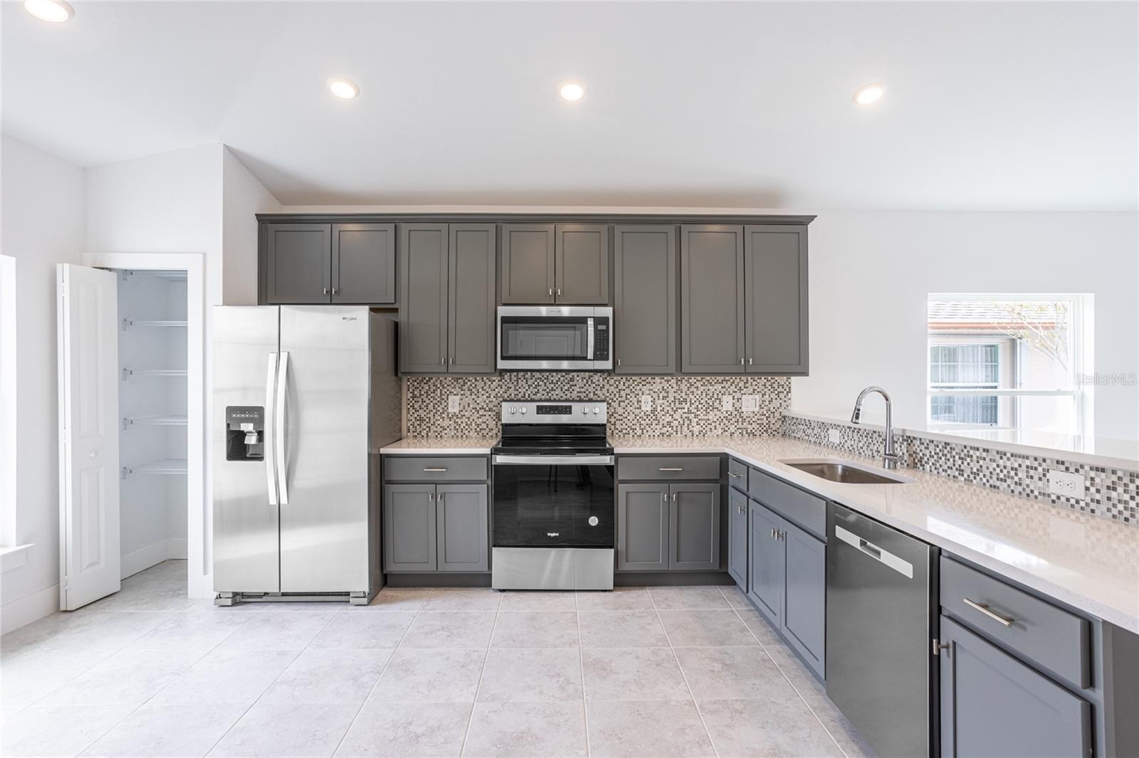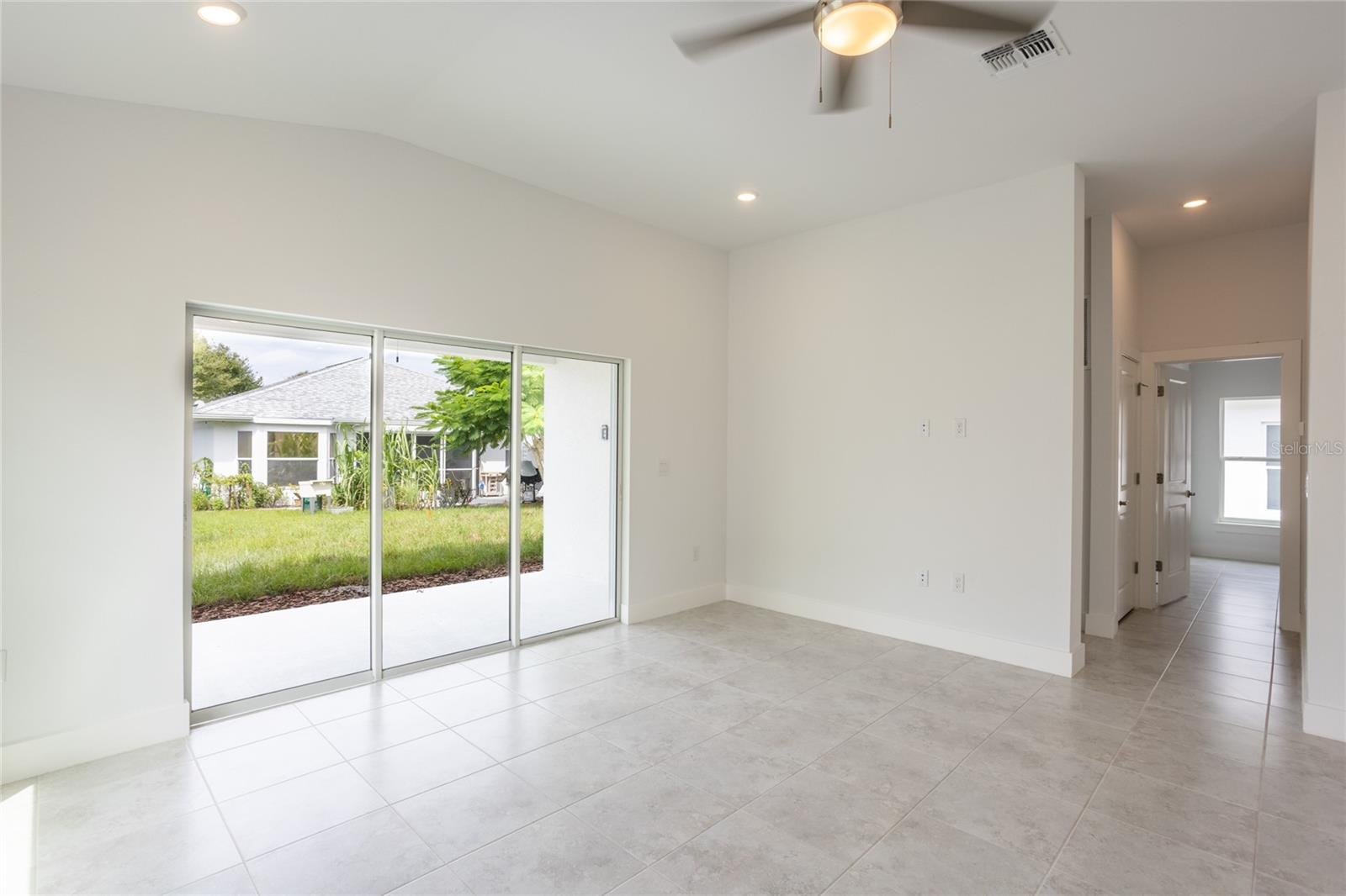 ***NEW CONSTRUCTION, NO WAIT, MOVE IN READY!*** Elevate your lifestyle with the opulence of the Anna Maria floorplan presented by Carpenter Homes—a masterpiece within the Florida Living Series, certified by the Florida Green Building Coalition (FGBC). This home features 3 bedrooms and 2 full bathrooms. This dream home is designed and built to immerse you in luxury. As you enter, a beautiful kitchen welcomes you with an expansive, oversized island that seamlessly flows into the living and dining area. The finesse of soft-close, Shaker 42" Graphite cabinets, upgraded Fresh Linens 3CM quartz countertops, and Bliss Glass/Stone Iceland Mosaic Tile kitchen backsplash add a functional touch of luxury to the kitchen. Kitchen upgrades include a Moen Sleek chrome kitchen faucet, garbage disposal, and sleek stainless steel energy efficient appliances. This home exudes sophistication with a vaulted ceiling and 3 panel 9 foot sliding glass doors! Additionally, Carpenter Homes provides an upgraded brushed nickel lighting package and a vanity fixture in 2nd bathroom, accenting the overall lighting design. Each bedroom and the great room feature 52" brushed nickel ceiling fans, complemented by an upgraded SEER2 HVAC system to keep you cool and comfortable in the Florida weather. Complimenting the expansive living area is Magnisi 18"x18" white ceramic tile flooring. The Owner's suite offers a luxurious retreat, featuring a shower adorned with 4x16” Anatolia Soho white tiles, complemented by Anatolia Zen Flat Pebble vertical listello accents, and a spacious walk-in closet. The Owner's bathroom features a striking 72x36” contemporary mirror with front and back LED lighting, anti-fog technology, and customizable color settings with a dimmer for the ultimate in modern sophistication. The home boasts Magnisi white 8x12” upgraded tiled walls in the second bath/shower, Fresh Linens 3CM quartz vanity tops, and Moen Genta LX chrome faucets. The ampleness of this home continues with a utility room, and thoughtful additions such as energy-efficient R-4.1 insulation on concrete exterior walls, Taexx tubes for pest control, and corrugated metal hurricane shutters for every window. The Florida friendly landscaped yard is complemented by an irrigation system with rain sensor to help maximize efficiency. This secure community not only enhances the outdoor space's sophistication but also creates an ideal setting for a range of family activities, turning the backyard into a retreat for intimate family gatherings and treasured moments. The expansive 2-car garage, complete with garage door opener and two remotes, not only provides ample space for your everyday needs but also ensures the utmost convenience and versatility for all your storage and parking requirements. Step into a world where extravagance meets eco-conscious living—your forever home awaits, a testament to timeless elegance and modern sustainability. COMMUNITY: Residents enjoy members-only access to the Oak Hollow Recreation Center which includes an exercise room, table tennis, heated swimming pool (no lifeguard), children's playground, tennis court, pickleball, bocce ball court, horseshoes, corn-hole, billiards room, basketball court, picnic tables shaded by beautiful old oak trees, and a lending library. Residents also enjoy a vibrant social calendar filled with community events year-round. Available to view anytime.