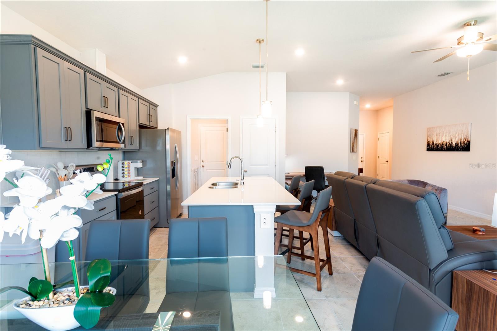 ***NEW CONSTRUCTION, NO WAIT, MOVE IN READY!*** Elevate your lifestyle with the opulence of the Lido floorplan presented by Carpenter Homes—a masterpiece within the Florida Living Series, certified by the Florida Green Building Coalition (FGBC). This home features 3 bedrooms and 2 full bathrooms. This dream home is designed and built to immerse you in luxury. As you enter, a beautiful kitchen welcomes you with an expansive, oversized island that seamlessly flows into the living and dining area. The finesse of soft-close, Shaker 36" cabinets, and upgraded Miami White quartz countertops add a functional touch of luxury to the kitchen. Kitchen upgrades include a Moen Sleek chrome kitchen faucet, garbage disposal, and sleek stainless steel energy efficient appliances. This home exudes sophistication with a vaulted ceiling and sliding glass doors! Additionally, Carpenter Homes provides an upgraded Oslo brushed nickel lighting package including pendants over the kitchen island, and vanity fixtures in both bathrooms, accenting the overall lighting design. Brushed steel finish ceiling fans in each bedroom, as well as the great room, helps to circulate air flow and keep you cool in the Florida weather. Complimenting the expansive living area is Magnisi 18"x18" ceramic tile flooring. The Owner's suite is a sanctuary of indulgence, showcasing tiled Magnisi Silver 8x12 walls in the shower and a large walk-in closet. The home boasts Magnisi Silver 8x12 upgraded tiled walls in the second bath/shower, Miami White quartz vanity tops, and Moen Genta LX chrome faucets and shower/tub trim kits. The ampleness of this home continues with a utility room, and thoughtful additions such as energy-efficient R-4.1 insulation on concrete exterior walls, Taexx tubes for pest control, and fabric hurricane shutters for every window. The Florida friendly landscaped yard is complemented by an irrigation system with rain sensor to help maximize efficiency. This secure community not only enhances the outdoor space's sophistication but also creates an ideal setting for a range of family activities, turning the backyard into a retreat for intimate family gatherings and treasured moments. The expansive 2-car garage, complete with garage door opener and two remotes, not only provides ample space for your everyday needs but also ensures the utmost convenience and versatility for all your storage and parking requirements. Step into a world where extravagance meets eco-conscious living—your forever home awaits, a testament to timeless elegance and modern sustainability. COMMUNITY Oak Hollow residents enjoy municipal water and sewer, underground utilities, and paved county sidewalks. We are within walking or biking distance to major grocery stores, restaurants, the public library, cultural center, and many shopping areas! Residents enjoy members-only access to the Oak Hollow Recreation Center which includes an exercise room, table tennis, heated swimming pool (no lifeguard), children's playground, tennis court, pickleball, bocce ball court, horseshoes, corn-hole, billiards room, basketball court, picnic tables shaded by beautiful old oak trees, a lending library, and many social events throughout the year!