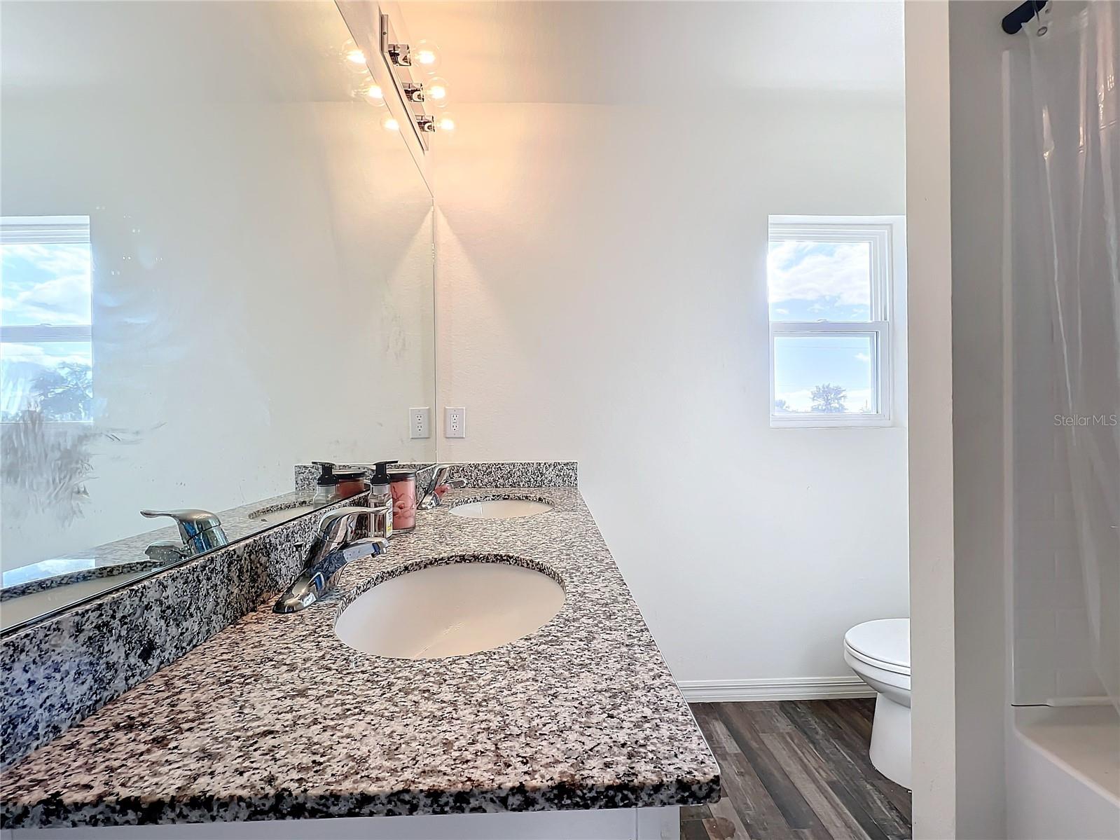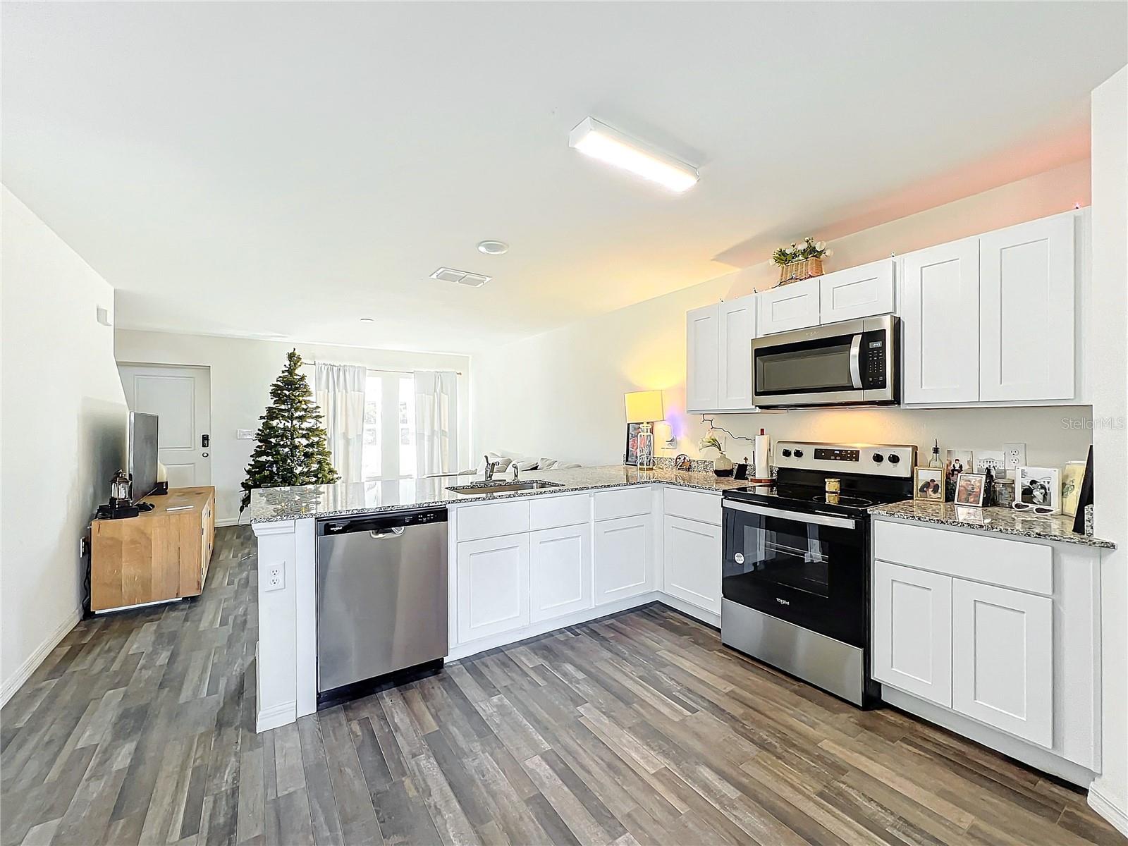 Welcome to this beautiful two-story home, built in 2022, offering modern design, spacious living, and a layout designed for both comfort and functionality. Perfectly situated on a private street with wonderful neighbors, this home is an ideal retreat for families seeking a peaceful and welcoming community. As you step inside, you’ll immediately notice the thoughtful attention to detail. The main floor features an open and inviting layout, highlighted by a guest suite with a full bathroom, making it ideal for visiting friends, family, or multi-generational living. The spacious living area flows seamlessly into the heart of the home: the kitchen. With granite countertops, sleek stainless-steel appliances, and ample cabinetry, this space is perfect for both everyday cooking and entertaining guests. Durable laminate flooring extends throughout the main living spaces, while plush carpet adds warmth and comfort to the bedrooms. Upstairs, you’ll find a tranquil master suite that serves as a private oasis. This expansive bedroom features a luxurious en-suite bathroom with dual sinks, perfect for busy mornings or relaxing evenings. A large walk-in closet completes the suite, providing ample space for all your wardrobe needs. In addition to the master, there are two more generously sized bedrooms on the second floor, as well as a versatile loft space that can easily transform into an office, playroom, or second living area. The convenience of a walk-in laundry room on the second floor ensures your daily routines run smoothly. The outdoor space is just as impressive. The large, backyard offers plenty of room to play, relax, and entertain. It features an above-ground pool, making it the perfect spot to cool off on hot summer days or host weekend gatherings with friends and family. The home also includes a two-car garage, providing ample storage and parking options. Located on a private street, this home offers a sense of tranquility while still being part of a vibrant neighborhood with great neighbors. Whether you’re enjoying quiet evenings in your backyard, hosting gatherings in the open living spaces, or simply appreciating the modern design and thoughtful layout, this home truly has it all. Don’t miss the opportunity to make this stunning property your own. Schedule a showing today and experience everything this exceptional home has to offer!