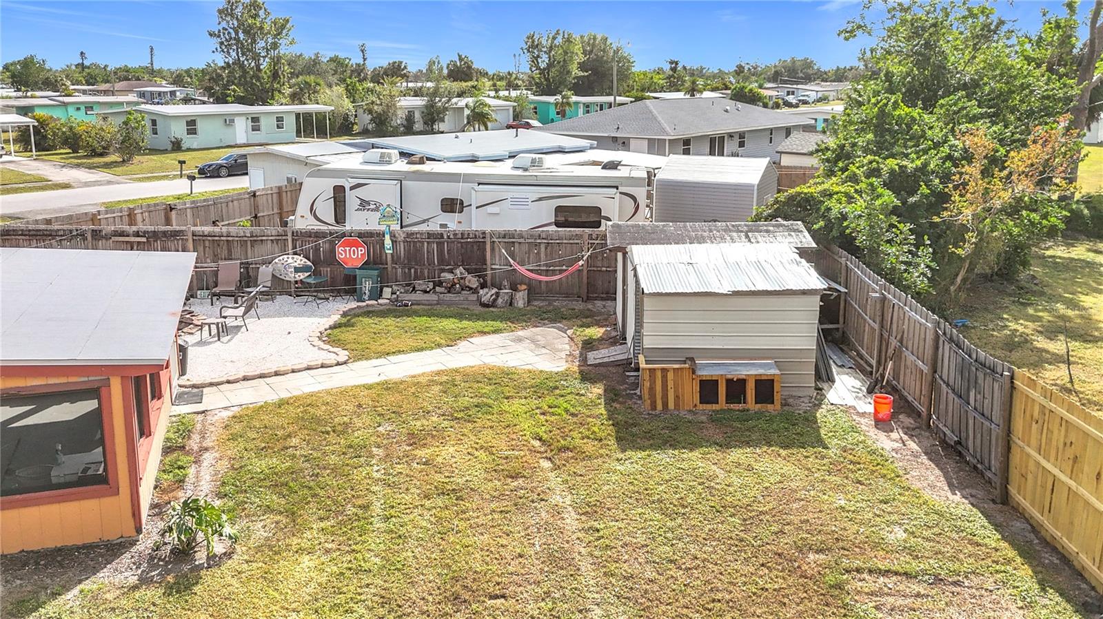 This adorable 2 bedroom 1 bathroom oversized corner lot home is perfect for a starter home or investment opportunity! This home has been lovingly maintained and updated. The spacious kitchen features newer stainless-steel appliances and butcher block countertops. The backyard is completely fenced and allows for RV storage or room and the kids and animals to play. A fabulous outdoor firepit area will allow for relaxing nights with family and friends. The backyard also features a built-in grill area for entertaining. There are two storage sheds and one of them has power for the handyman's delight. Outdoor outlets and lighting were added for convenience and holiday decorations. The home features custom hurricane shutters with easy install ability. The flat roof was completely replaced in 2021. The home features 3 Split AC wall units that more than sufficiently cool the home adequately. An added bonus is the locking mailbox for your safe postal deliveries. This Parkside District home never lost power during the recent storms as all of the utilities are underground. The gorgeous beaches sit just 30 minutes away and only 2 minutes to the closest hospital and 10 minutes to downtown Punta Gorda. Schedule your showing today!