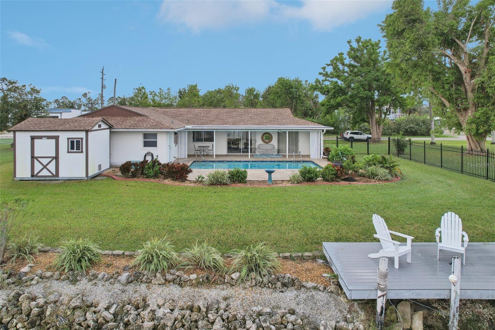 *** Price Improvement - Will not last - Beautiful view looking down the canal with QUICK/EASY ACCESS TO BIG WATER !!! Beautifully remodeled 3-bedroom, 2-bathroom, 2-car garage waterfront pool home in the desirable Gulf Cove community on the Myakka River. This stunning property features a split floor plan, gourmet kitchen with black granite countertops and shaker style cabinetry, a luxurious primary suite with walk-in shower. A host of recent upgrades have been completed, including a new roof (2023), Electrical panel and service, luxury vinyl flooring (2023), hurricane-rated windows (2020), a Tuff Shed (2023), accordion hurricane shutters (2023), and freshly retextured walls and ceilings (2022). The driveway was also updated in 2019 for added curb appeal. For peace of mind a security system has been installed and owned, and monitored by ADT. Nestled on a canal located just beyond the river bend, this home offers easy, silt-free access to the harbor, Gulf of Mexico, and beyond. The street and canal are maintained by a municipal benefit services unit, providing owners with the opportunity to participate in the upkeep. Enjoy breathtaking water views straight down the canal to the Myakka River, and revel in the convenience of being close to top-notch restaurants, golf courses, Boca Grande beaches, and world-class fishing. Schedule your showing today!