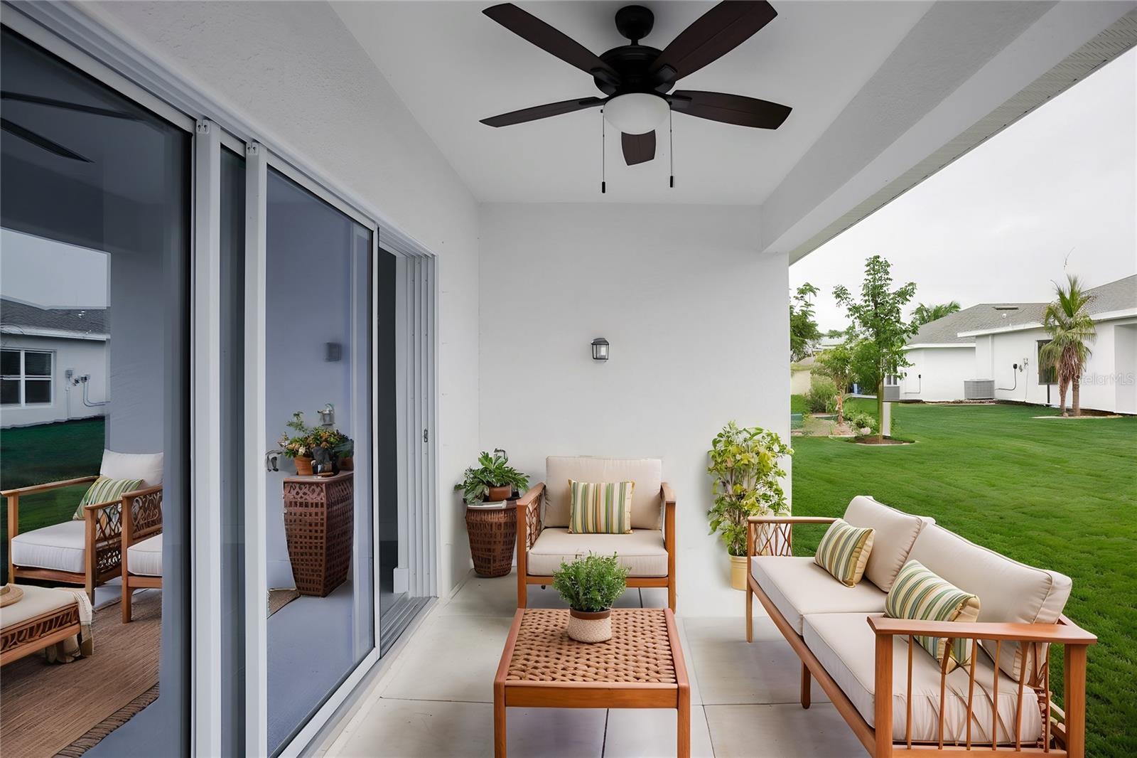 ***NEW CONSTRUCTION, MOVE IN-READY!*** Elevate your lifestyle with the opulence of the Anna Maria floorplan presented by Carpenter Homes—a masterpiece within the Florida Living Series, certified by the Florida Green Building Coalition (FGBC). This home features 3 bedrooms and 2 full bathrooms. This dream home is designed and built to immerse you in luxury. As you enter, a beautiful kitchen welcomes you with an expansive, oversized island that seamlessly flows into the living and dining area. The finesse of soft-close, Shaker 42" cabinets, upgraded Fresh Linens 3CM quartz countertops, and Bliss Glass/Stone Mosaic Tile kitchen backsplash add a functional touch of luxury to the kitchen. Kitchen upgrades include a Moen Sleek chrome kitchen faucet, garbage disposal, and sleek stainless steel energy efficient appliances. This home exudes sophistication with a vaulted ceiling and 3 panel 9 foot sliding glass doors! Additionally, Carpenter Homes provides an upgraded brushed nickel lighting package and a vanity fixture in 2nd bathroom, accenting the overall lighting design. Each bedroom and the great room feature 52" brushed nickel ceiling fans, complemented by an upgraded SEER2 HVAC system to keep you cool and comfortable in the Florida weather. Complimenting the expansive living area is Magnisi 18"x18" white ceramic tile flooring. The Owner's suite offers a luxurious retreat, featuring a shower adorned with 4x16” Anatolia Soho white tiles, complemented by Anatolia Zen Flat Pebble vertical listello accents, and a spacious walk-in closet. The Owner's bathroom features a striking 72x36” contemporary mirror with front and back LED lighting, anti-fog technology, and customizable color settings with a dimmer for the ultimate in modern sophistication. The home boasts Magnisi white 8x12” upgraded tiled walls in the second bath/shower, 3CM quartz vanity tops, and Moen Genta LX chrome faucets. The ampleness of this home continues with a utility room, and thoughtful additions such as energy-efficient R-4.1 insulation on concrete exterior walls, Taexx tubes for pest control, and fabric hurricane shutters for every window. The Florida friendly landscaped yard is complemented by an irrigation system with rain sensor to help maximize efficiency. This secure community not only enhances the outdoor space's sophistication but also creates an ideal setting for a range of family activities, turning the backyard into a retreat for intimate family gatherings and treasured moments. The expansive 2-car garage, complete with garage door opener and two remotes, not only provides ample space for your everyday needs but also ensures the utmost convenience and versatility for all your storage and parking requirements. Step into a world where extravagance meets eco-conscious living—your forever home awaits, a testament to timeless elegance and modern sustainability. COMMUNITY: Residents enjoy members-only access to the Oak Hollow Recreation Center which includes an exercise room, table tennis, heated swimming pool (no lifeguard), children's playground, tennis court, pickleball, bocce ball court, horseshoes, corn-hole, billiards room, basketball court, picnic tables shaded by beautiful old oak trees, and a lending library. Residents also enjoy a vibrant social calendar filled with community events year-round! Available to view anytime.