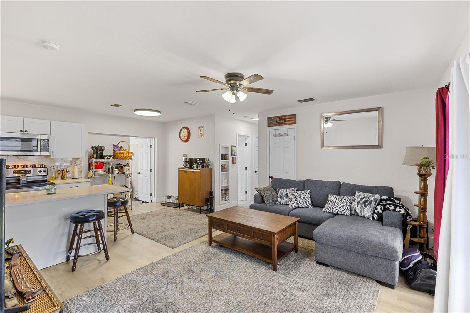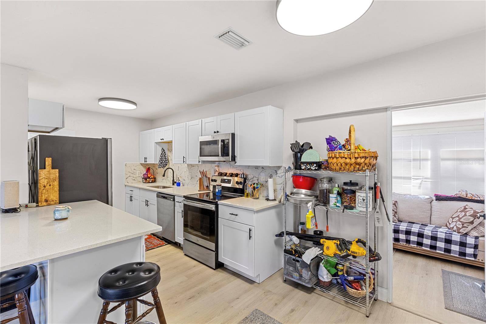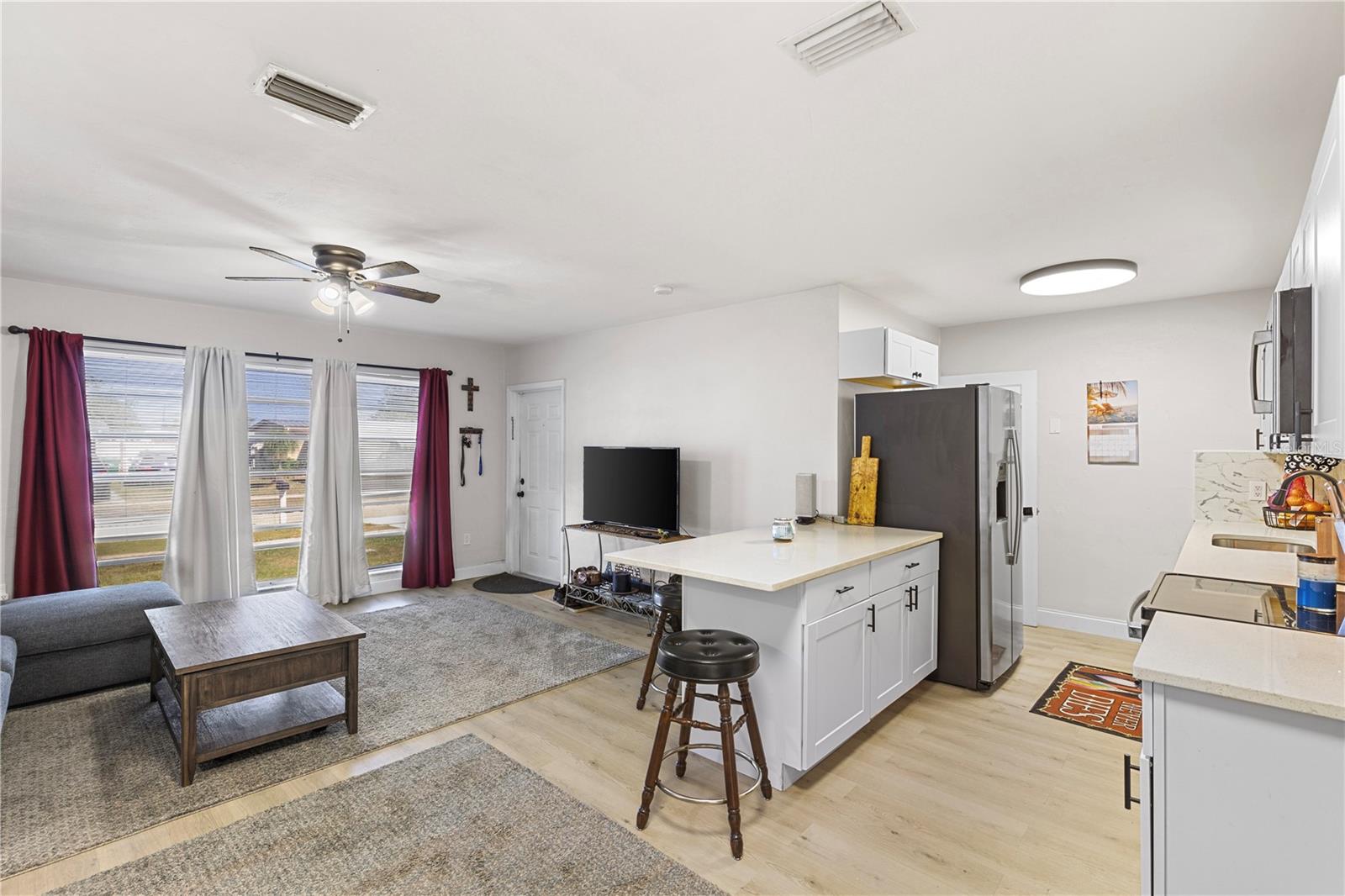 Fully Remodeled & Move-In Ready! This beautifully updated 3-bedroom, 1-bathroom home offers modern upgrades and comfortable living! Featuring a carport, fenced-in backyard, and a screened-in patio, you can enjoy the fresh air without the hassle of pests. Step inside to an inviting open layout with new vinyl flooring throughout, fresh paint, and stylish new light fixtures. The stunning new kitchen boasts quartz countertops, a sleek backsplash, brand-new cabinets, and stainless-steel appliances. The bathroom has been completely updated with a new vanity, toilet, and retiled shower. Need extra space? This home includes a bonus room, perfect for an office, playroom, or additional living space. Plus, enjoy peace of mind with a NEWER 2022 ROOF and a NEWER 2023 HVAC system. Don’t miss out on this move-in-ready gem—schedule your showing today!