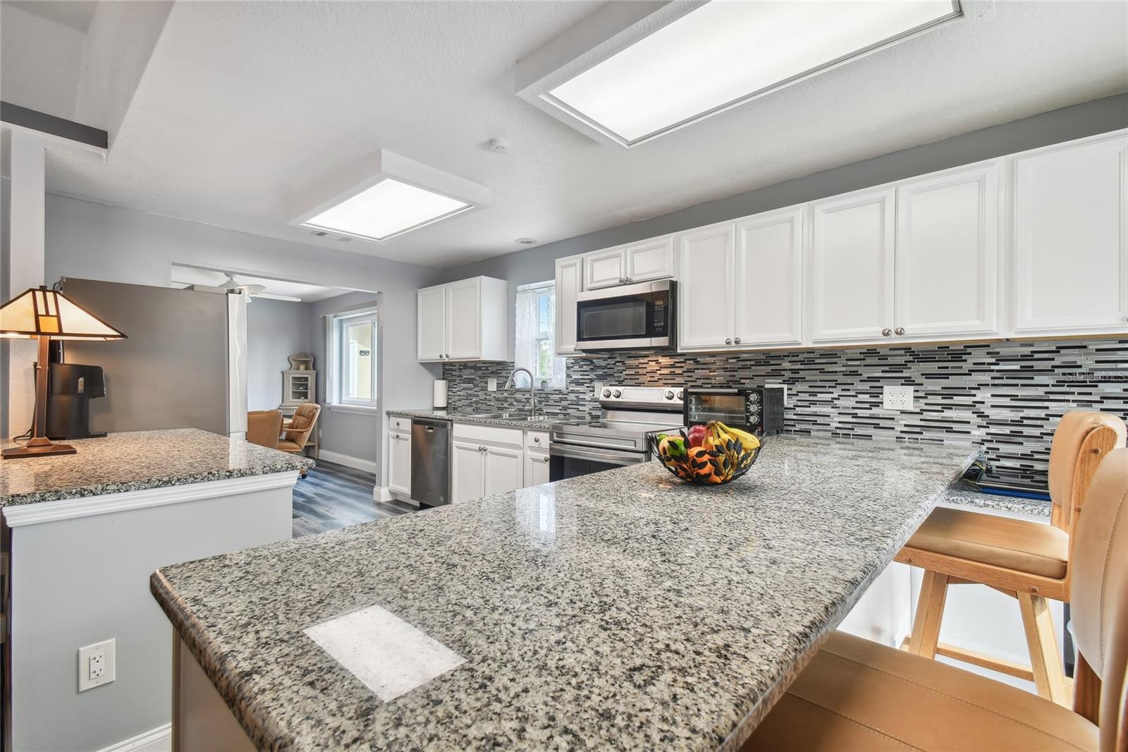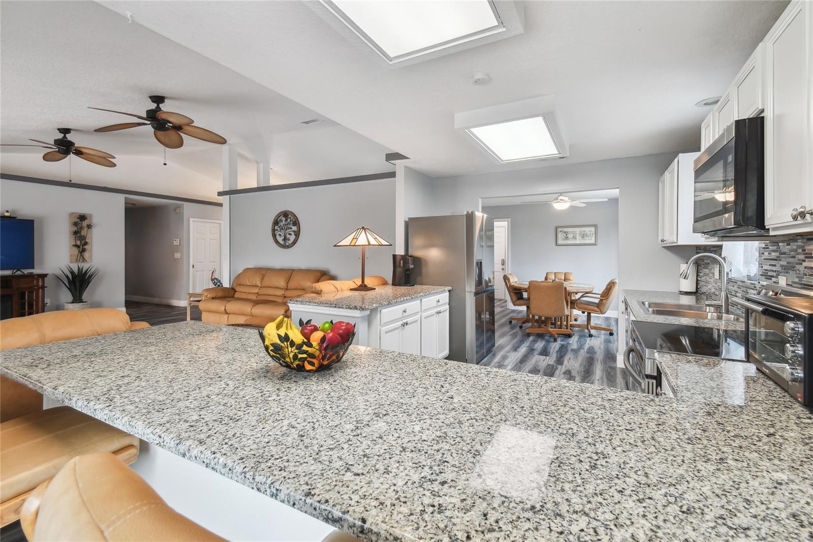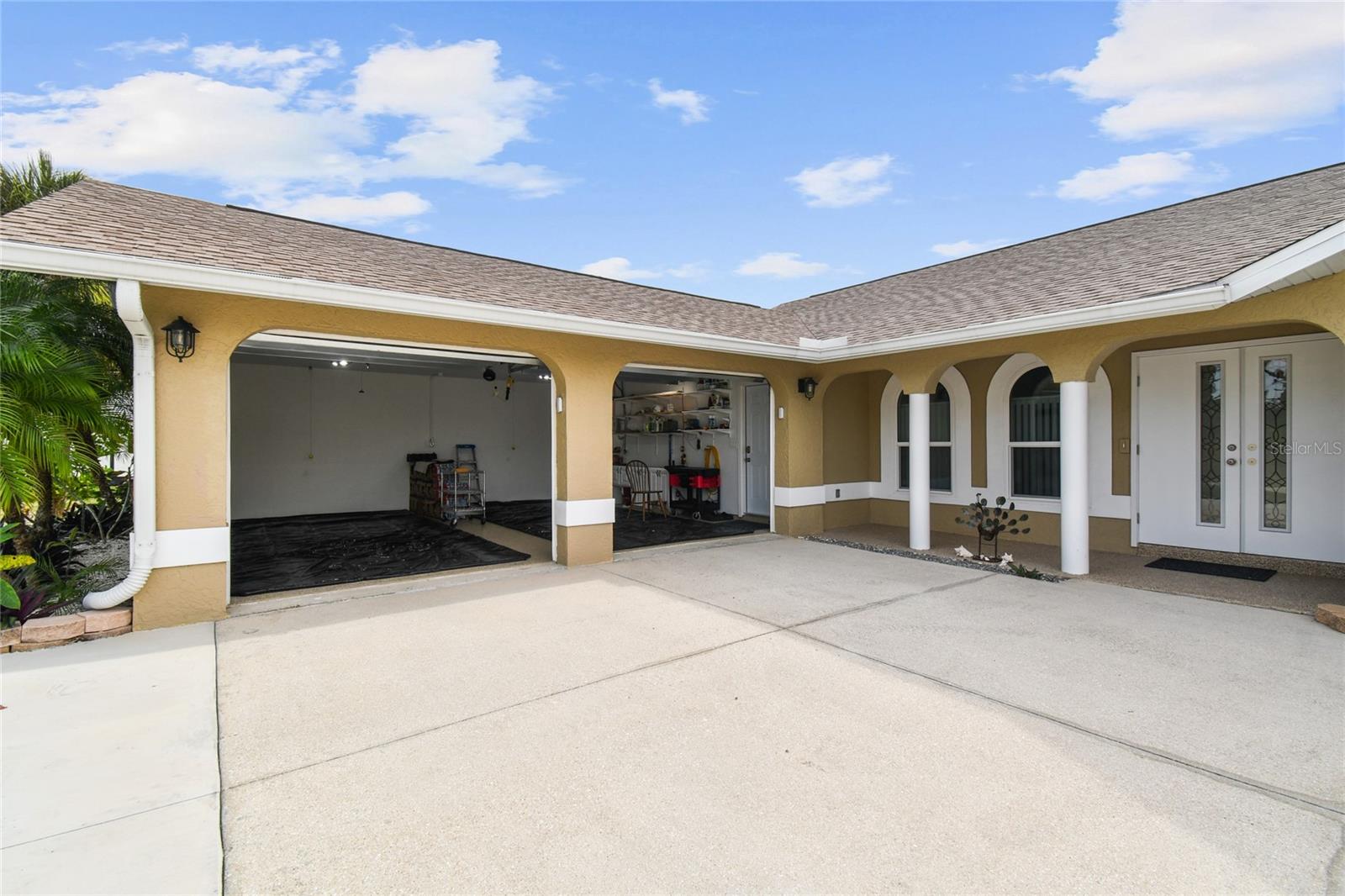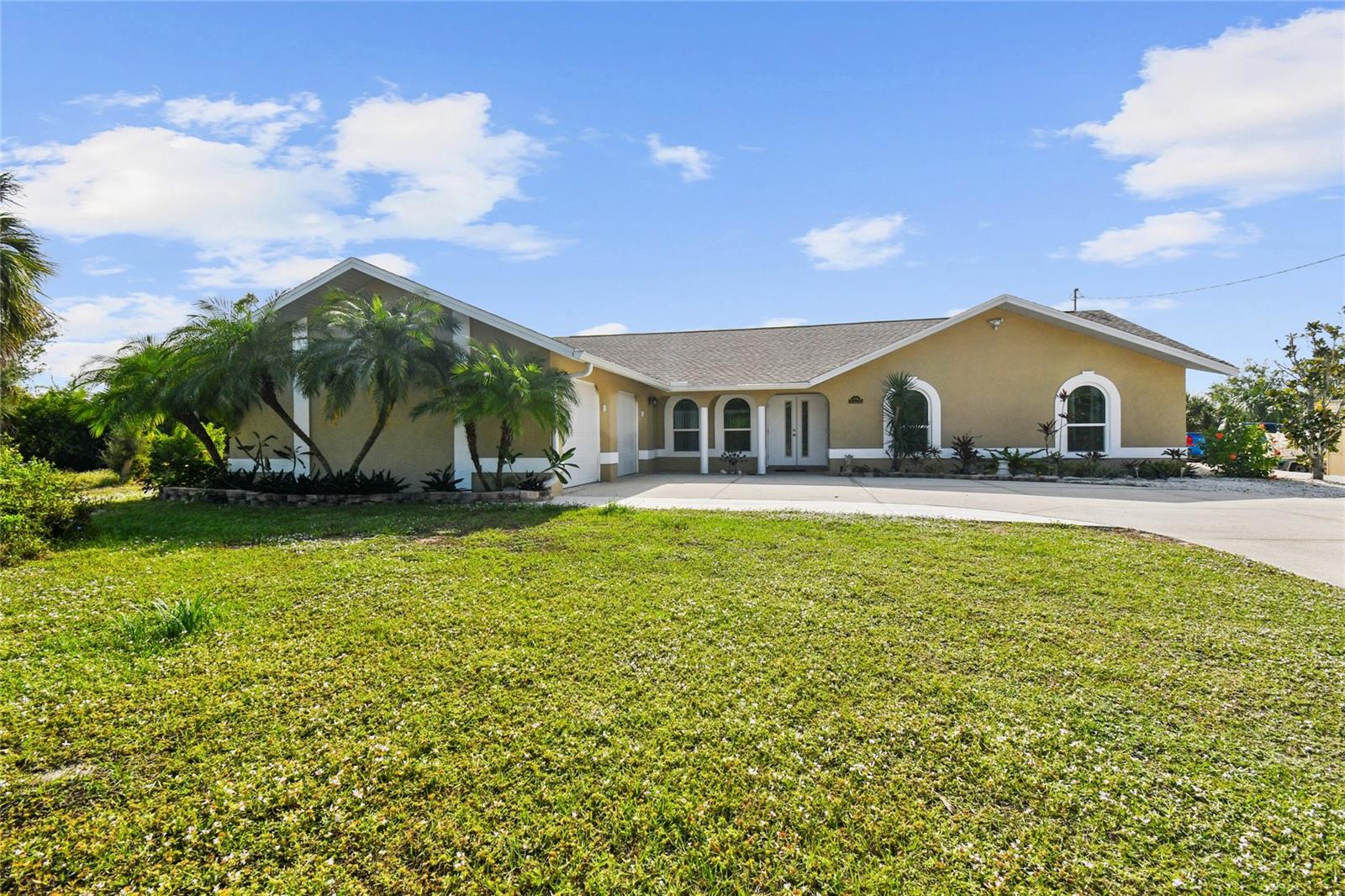Situated on a waterfront 30,000sf triple lot, this captivating 3 bedroom, 2 bathroom home is a rare find. At the water's edge, a long private dock invites you to partake in the stillness of the waterway adorned by lush, tropical foliage. Savor the morning sunrises from the east and evening sunsets to the west, both over the calm waters. The interior spans a comfortable 2,219 square feet of air-conditioned space, with an impressive total area of 4,499 square feet. A recent top-to-bottom renovation has infused the home with a contemporary flair and functionality. The new roof and AC system complete with new duct work were both installed in 2022, ensuring a move-in-ready and maintenance free experience. For peace of mind, all windows and doors have been upgraded to impact-rated materials, offering both security and energy efficiency. The revamped kitchen and bathrooms feature new granite-topped cabinetry and are complemented by modern plumbing fixtures. The interior and exterior walls are freshly painted, and all the flooring and baseboards are new, leaving no stone left unturned. The addition of an impressive 30x40ft steel garage, constructed last year with spray foam insulation and electrical wiring, presents an ideal space for a workshop and a storage haven. Avoid expensive storage and accommodate any size RV with ease, as the property also features a new secondary driveway, complete with 50 amp electric and sewage hookups. Don’t miss the opportunity to own this waterfront gem. Contact us today for private tour.