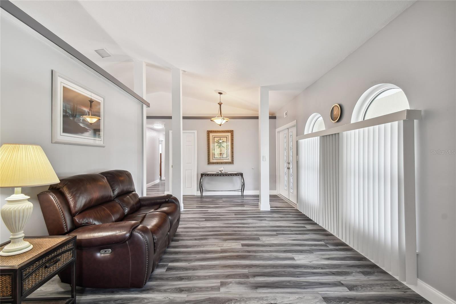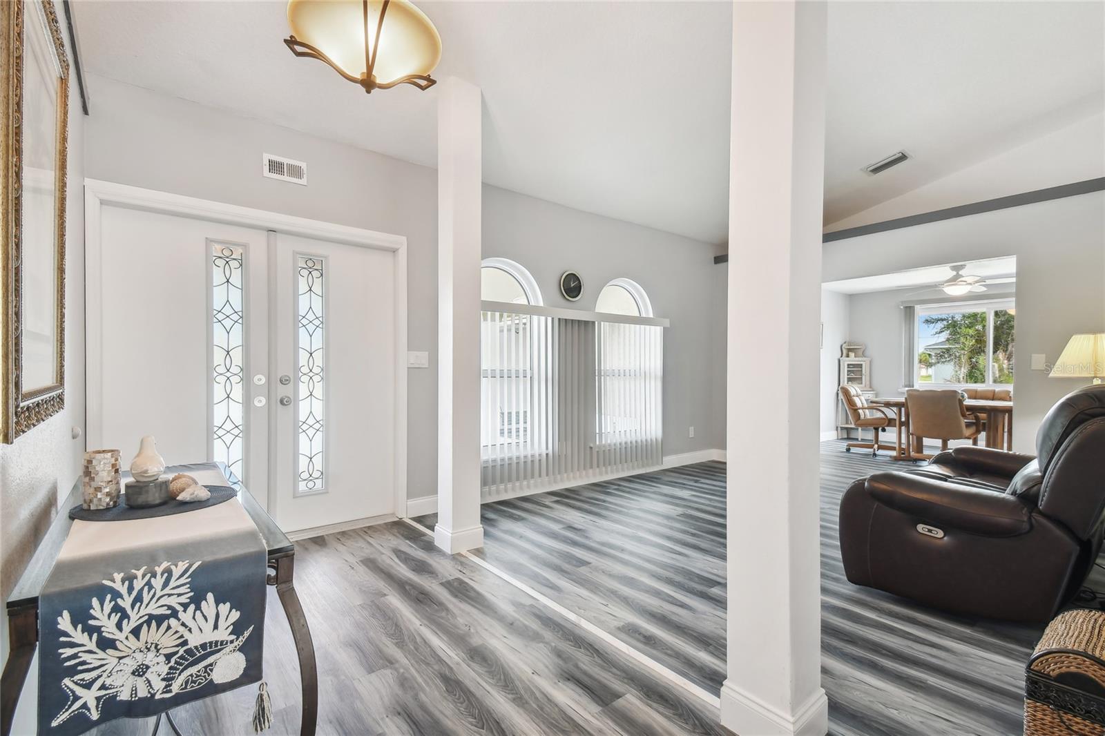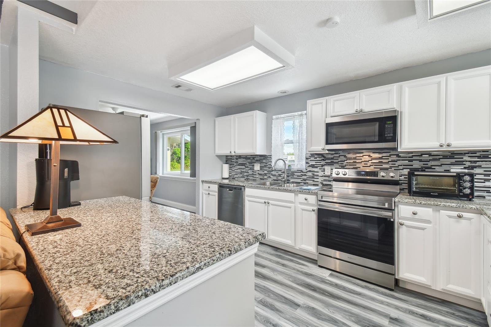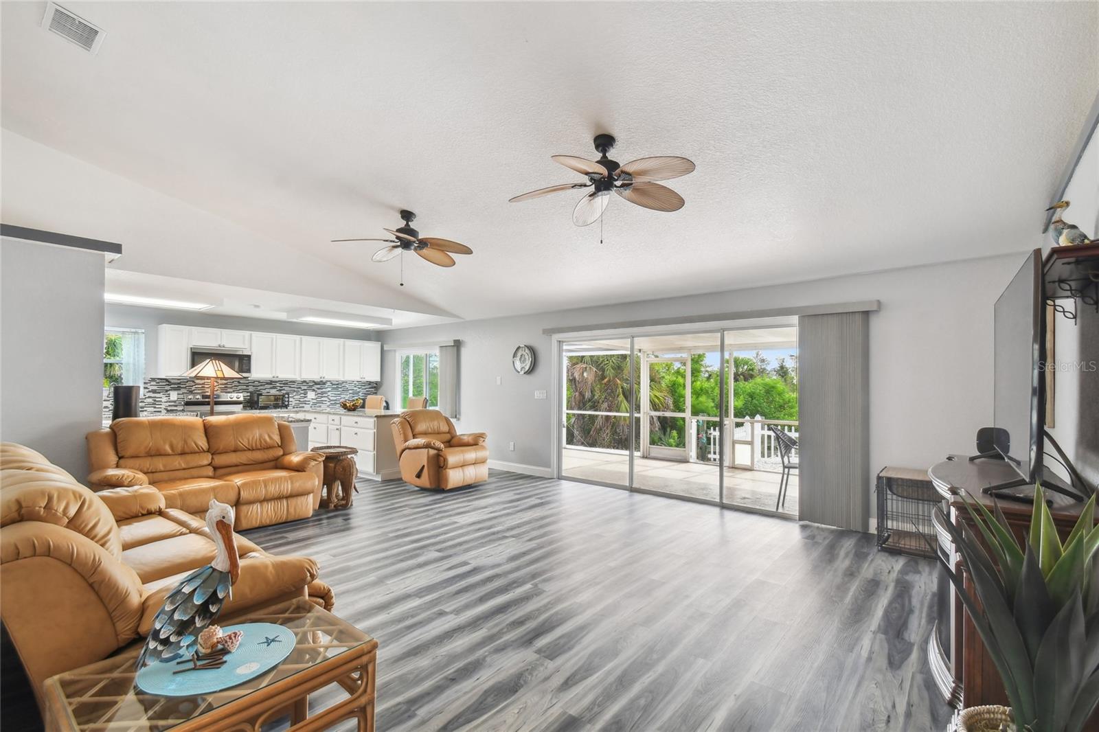 Situated on a waterfront 30,000sf triple lot, this captivating 3 bedroom, 2 bathroom home is a rare find. At the water's edge, a long private dock invites you to partake in the stillness of the waterway adorned by lush, tropical foliage. Savor the morning sunrises from the east and evening sunsets to the west, both over the calm waters. The interior spans a comfortable 2,219 square feet of air-conditioned space, with an impressive total area of 4,499 square feet. A recent top-to-bottom renovation has infused the home with a contemporary flair and functionality. The new roof and AC system complete with new duct work were both installed in 2022, ensuring a move-in-ready and maintenance free experience. For peace of mind, all windows and doors have been upgraded to impact-rated materials, offering both security and energy efficiency. The revamped kitchen and bathrooms feature new granite-topped cabinetry and are complemented by modern plumbing fixtures. The interior and exterior walls are freshly painted, and all the flooring and baseboards are new, leaving no stone left unturned. The addition of an impressive 30x40ft steel garage, constructed last year with spray foam insulation and electrical wiring, presents an ideal space for a workshop and a storage haven. Avoid expensive storage and accommodate any size RV with ease, as the property also features a new secondary driveway, complete with 50 amp electric and sewage hookups. Don’t miss the opportunity to own this waterfront gem. Contact us today for private tour.