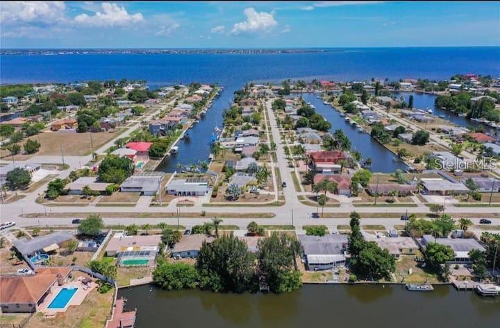 PRICE IMPROVEMENT!!! Discover waterfront living at its finest with this charming 3-bedroom, 2-bathroom home located in Port Charlotte, Florida. Nestled on a wide saltwater canal, this property offers direct access to Charlotte Harbor and the Gulf of Mexico, making it a boater's paradise.? As you step inside, you'll be greeted by an open-concept living space designed for both comfort and entertaining. The updated kitchen features granite countertops, a spacious center island with a breakfast bar, and modern appliances. The split-bedroom floor plan ensures privacy, with a generously sized master suite boasting an updated bathroom. Enjoy serene water views from multiple rooms throughout the home.? Recent improvements include a newer roof, air conditioning system, and electrical panel. The fully fenced backyard offers a private oasis, complete with a dock for your boating needs. Located minutes away from shopping, dining, medical facilities, and beautiful beaches, this home combines convenience with the allure of waterfront living.? Don't miss this opportunity to own a slice of Florida paradise. Schedule your private showing today!