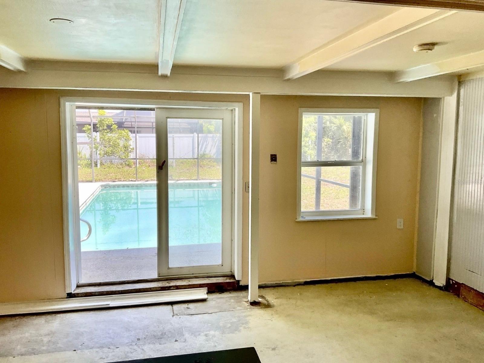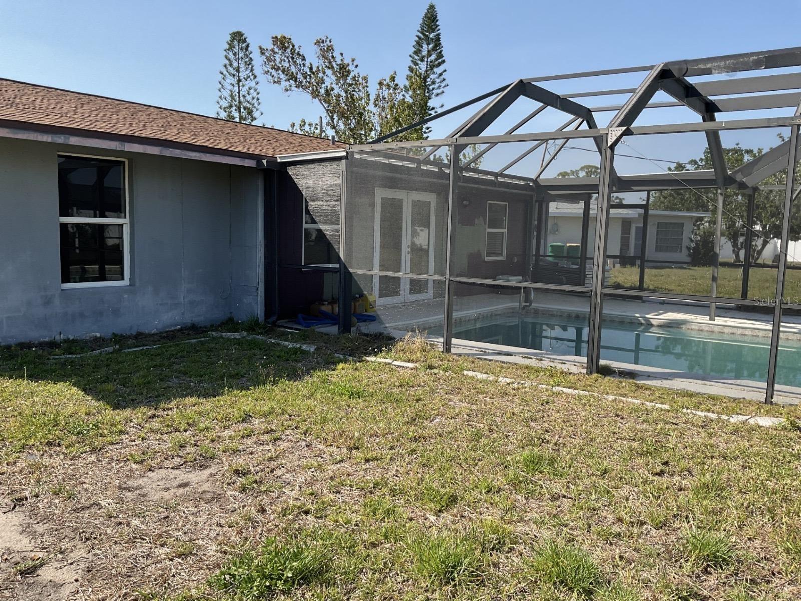 This 2-bedroom, 2-bathroom home features a spacious living area and a generously sized kitchen, ideal for everyday living or entertaining. Both bedrooms and bathrooms provide comfort and functionality, and the roof is brand new—only 2–3 years old. While the property does need some work, it offers great potential. Additional highlights include a front porch, 1-car carport, and a large backyard with a screen-enclosed in-ground pool, perfect for relaxing or hosting guests. Conveniently located near shopping, dining, medical facilities, and just a short drive to beaches and parks.