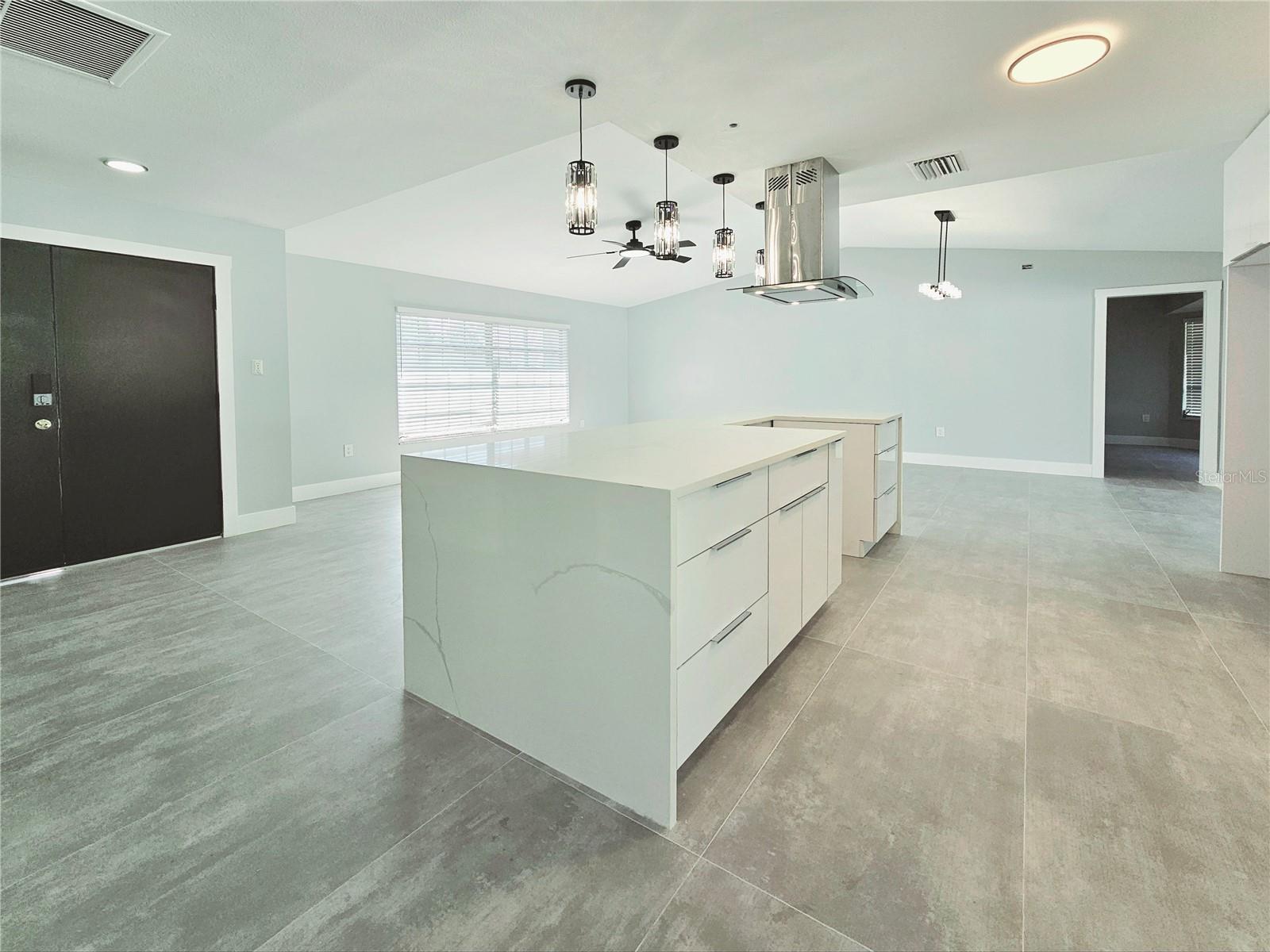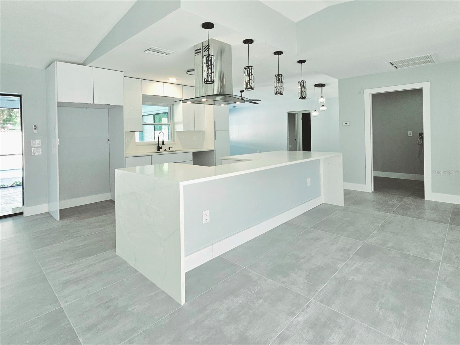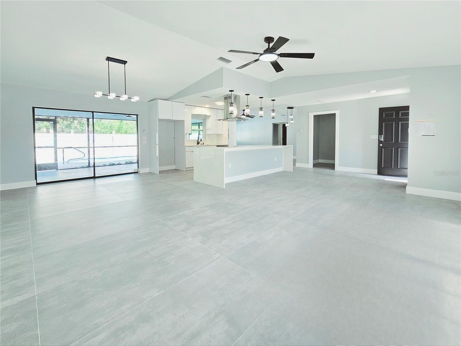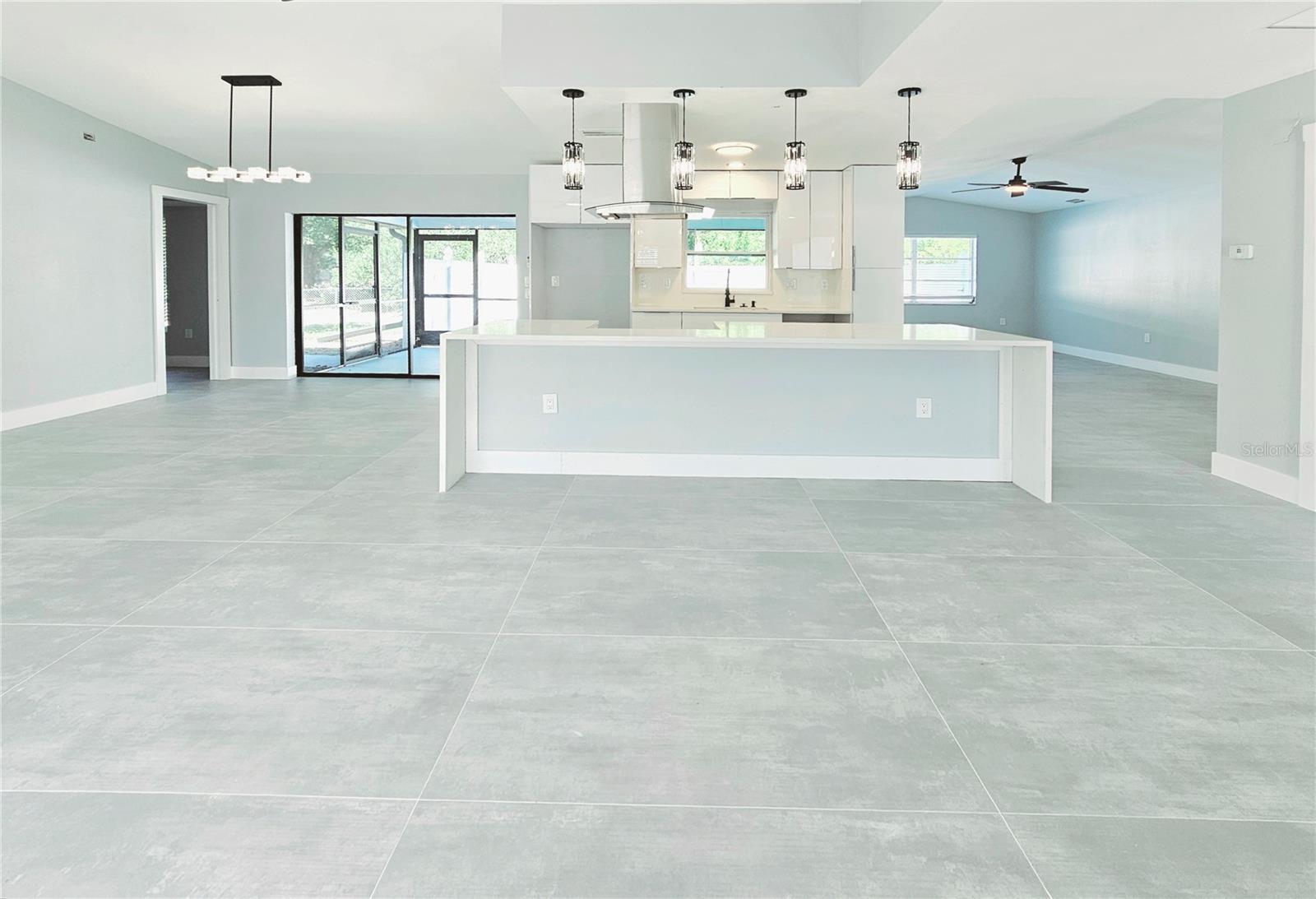 Stunning Fully Renovated Pool Home in Prime Location – No Flood Zone! Welcome to luxury living in this beautifully renovated home featuring top-of-the-line finishes and modern upgrades throughout. Situated in a NO FLOOD ZONE just off desirable Peachland Blvd, this home offers quick access to major roads and highways for ultimate convenience. Step inside to discover a bright and open floor plan with two dining areas, a formal living room, and a spacious family room—perfect for entertaining. The chef’s kitchen is a showstopper with quartz countertops, a center island, stainless steel appliances, and high-gloss European-style cabinets with soft-close doors and drawers. Enjoy peace of mind with a NEW ROOF, updated bathrooms and kitchen, new luxury large format porcelain flooring, new plumbing and light fixtures, and a new pool pump. Retreat to the master suite, where you'll find a spa-inspired bathroom with dual sinks floating vanities, overhead heater, a skylight, and his-and-hers rainfall showers complete with multiple showerheads and wall-mounted faucets. Outdoor living is just as impressive with a screen-enclosed lanai, fenced inground pool, and epoxy-finished garage floor. Other highlights include fresh interior and exterior paint, faux wood blinds, new baseboards and door casings, and designer plumbing and electrical fixtures throughout. This home combines elegance, comfort, and location—truly move-in ready!