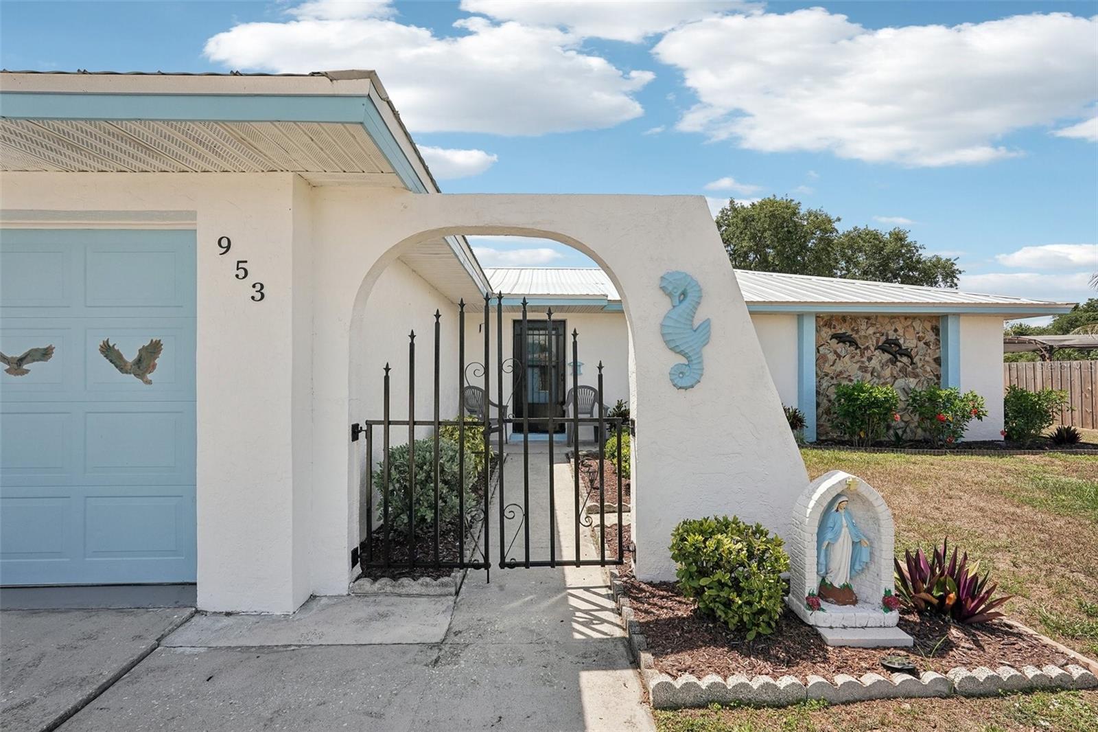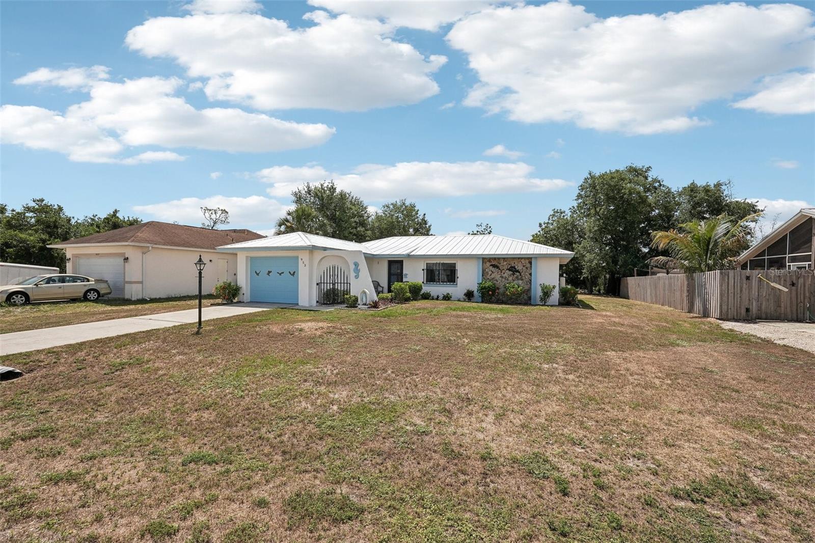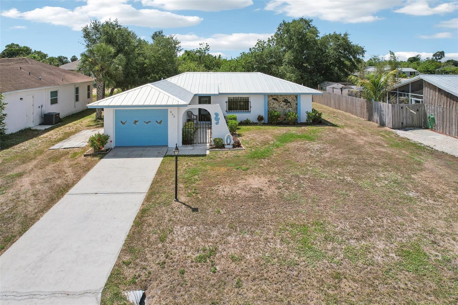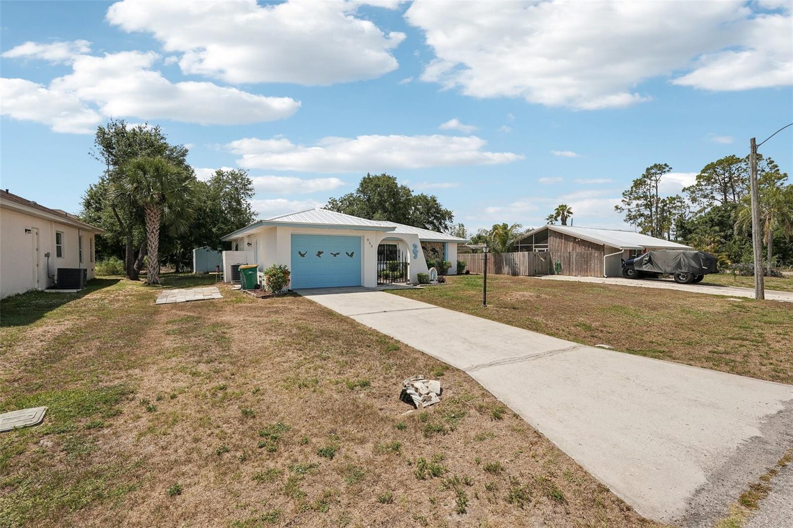 Adorable, move-in ready gem in the heart of Port Charlotte! This charming 3BR/2BA home offers 1,076 sq. ft. of comfortable living with a smart split-bedroom layout and thoughtful updates throughout. From the moment you arrive, you'll love the beautifully manicured garden walkway that welcomes you home. Recent upgrades include a new metal roof, new hot water heater, and hurricane-impact windows throughout for peace of mind. The bright and spacious living room flows into a dedicated dining area, making it perfect for everyday living and entertaining. All appliances are included! The garage is secure enough to handle hurricane impact winds. The roof warranty is transferrable. Also included is a water softener. Step out to the enclosed patio and enjoy the Florida lifestyle year-round. The backyard also features two large workshop-style sheds, both with electricity—ideal for hobbyists, storage, or extra workspace. Located just minutes from shopping, hospitals, restaurants, and all that Port Charlotte has to offer. Don’t miss this opportunity—schedule your showing today!