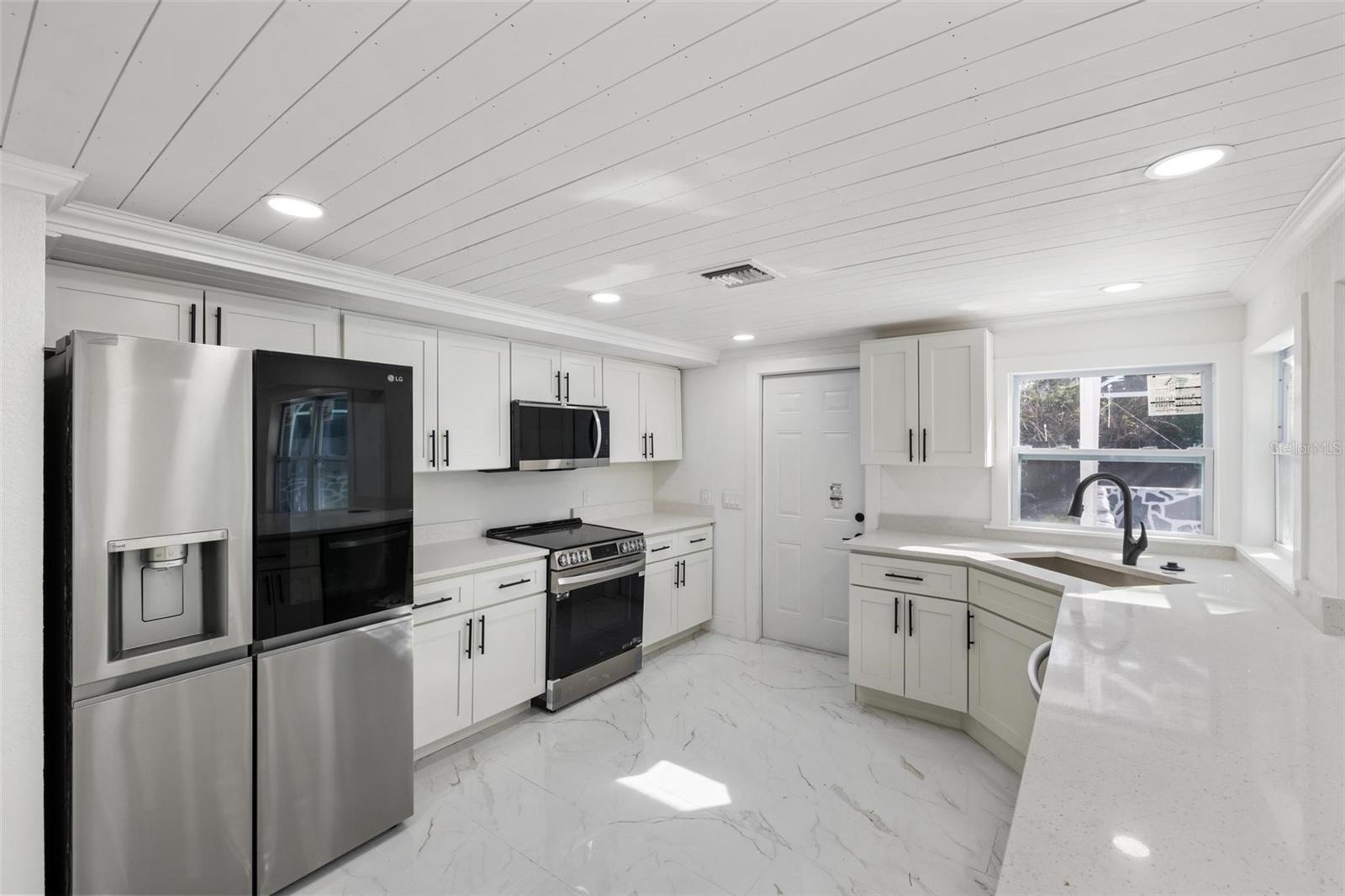 Experience this stunning, fully renovated, turn-key dream home that checks every box! Specifically designed for luxurious and effortless living. Situated in a desirable neighborhood, this stunning 5-bedroom, 3-bathroom pool home spans 2,300 sq. ft. and boasts luxurious upgrades throughout. Every detail of this remodel is brand new, from the Roof and AC to the hurricane-impact windows, tankless water heater, and top-of-the-line appliances. Step into the modern kitchen, outfitted with quartz countertops with pop-up wireless USB charging, adding both style and convenience. The kitchen also features premium cabinetry and Italian white tile floors throughout, making it a chef's paradise. Relax and entertain in the spacious living areas or by the swimming pool. The primary ensuite offers a generous walk-in closet and a spa-like ensuite bathroom with a walk-in shower enveloped in floor-to-ceiling tile. With proximity to some of Florida's finest beaches, you're never far from a day spent with your toes in the sand or exploring the charming local community. Don't miss the opportunity to own this beautifully renovated home in a prime location.