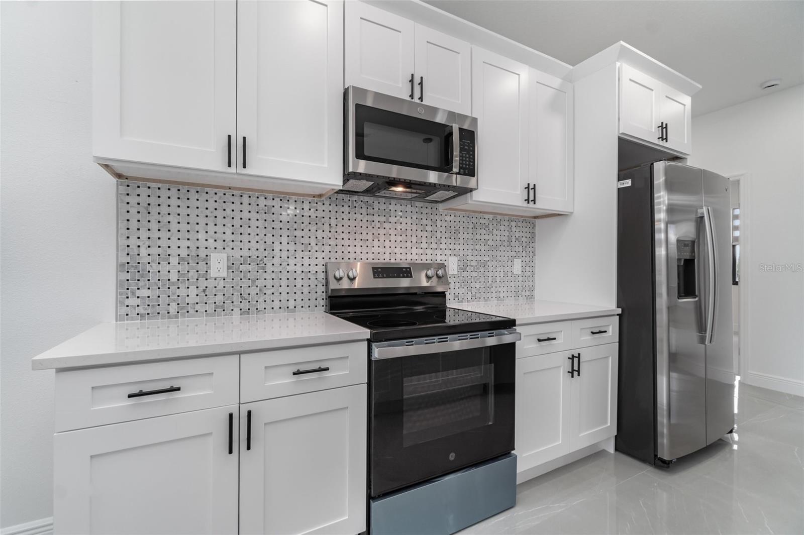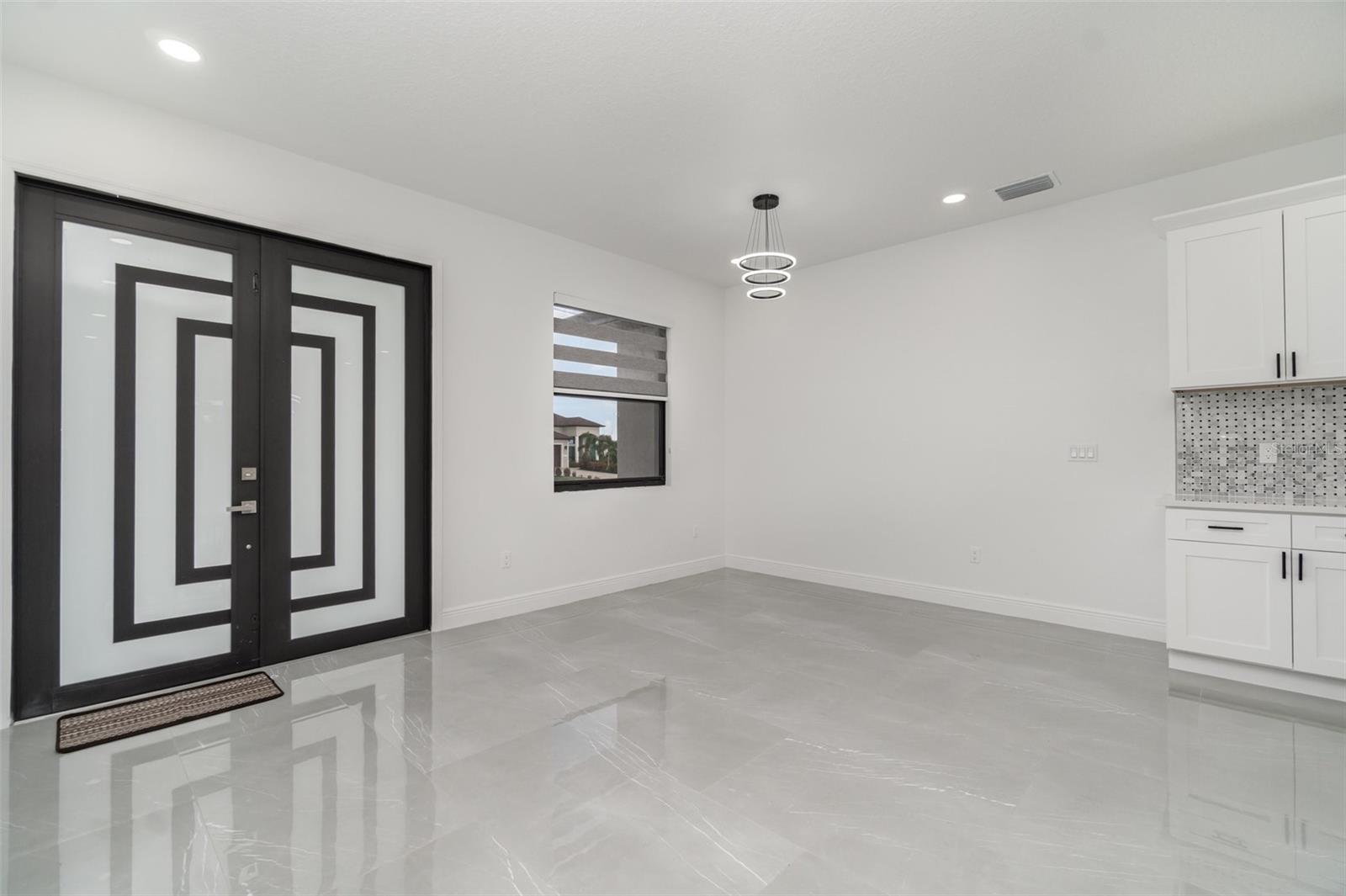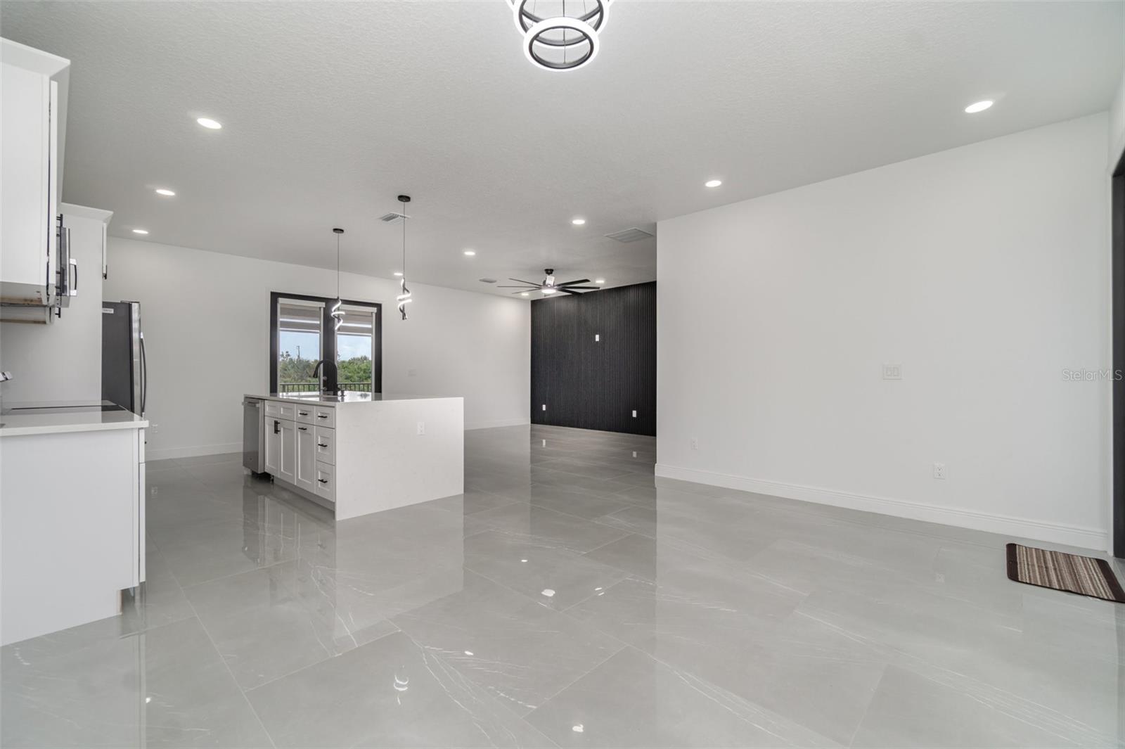 PRICE REDUCED! Owner Will Assist with Buyer's Closing Costs. New construction in South Gulf Cove with clean, modern lines and seamless indoor-outdoor living. Single-story 3BR + office / 2BA / 2-car garage. Open concept with large-format porcelain tile throughout, striking frosted-glass double entry, slat accent wall and designer lighting. Show-stopping kitchen features an XL waterfall quartz island, shaker cabinetry, mosaic backsplash, stainless appliances and fixtures. Owner’s suite has dual vanities, frameless glass shower and a freestanding soaking tub. Bright secondary bedrooms with modern fans and zebra shades. Generous laundry room with sink and cabinets. Relax on the covered lanai with wet bar overlooking the backyard—perfect for grilling and entertaining. Minutes to Gasparilla Rd/FL-776, marinas, beaches and golf. Move-in ready and easy to show.