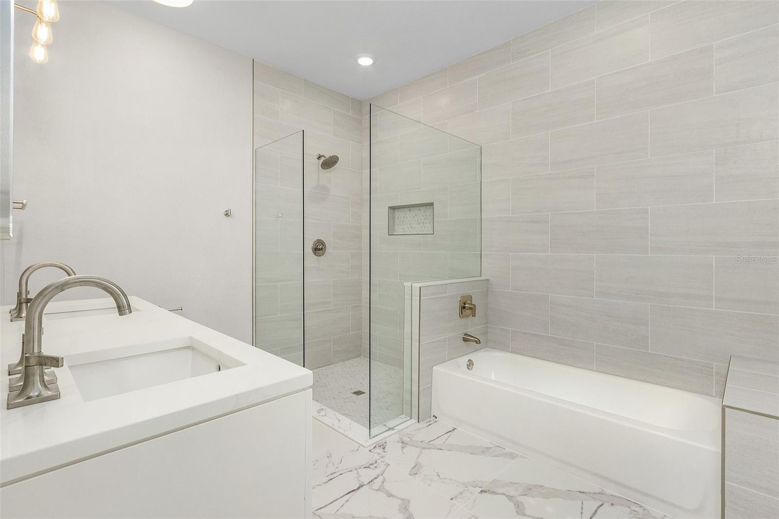 MOVE IN READY, no need to wait! 3 bedroom, 2 bathroom home with a 2 car garage. Brand new construction home with a contemporary design located near it all with all of the modern conveniences you desire. Open concept with vaulted ceilings in the main living area that leads to a covered lanai with high ceilings in the bedroom areas. Kitchen features shaker style cabinets, stainless steel appliances with a large island and marble countertops. Hurricane IMPACT windows. Tile throughout and a spa like master bathroom with a walk in shower and tub, dual vanities. Home warranty included. Your slice of Florida / paradise awaits!