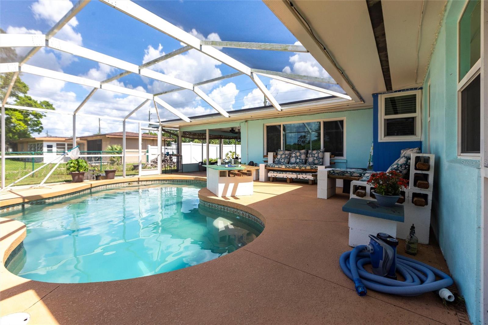 Beautifully Updated 4-Bedroom Home with Solar, Pool, and Backyard Oasis Near Local Attractions -- This spacious 4-bedroom, 2-bathroom home sits on a generous 0.29-acre lot in a well-kept neighborhood and is just a short drive from some of the area’s best attractions, including Port Charlotte Beach and Ponce De Leon Park. With numerous recent upgrades and inviting indoor-outdoor living spaces, this home is a rare find. The roof was re-shingled in 2023, hurricane impact windows were installed in 2020, and the 38 solar panels (installed in 2018) help keep energy costs low. Inside, the open floor plan offers abundant living space, featuring a large living room that flows into a bright family/game room—perfect for relaxing or entertaining. The modern kitchen opens to a spacious dining area, creating a seamless layout for everyday living. The ceilings and walls throughout the home have been recently replaced, giving the space a clean, updated look. The master bathroom boasts a beautifully upgraded shower with a tiled floor and ceiling, built-in bench, and recessed shelving. The laundry room is equipped with a utility sink and extra storage space. Step outside to your private, fenced-in backyard retreat—complete with a screened in-ground pool, an 800-gallon koi pond, and mature fruit trees including one mango and two papaya trees. For added convenience and storm preparedness, a 220-volt plug is available for a generator. Combining comfort, energy efficiency, and a backyard paradise—all just minutes from the beach and parks—this home truly has it all. PACE loan will be paid off at closing and taxes will go down.