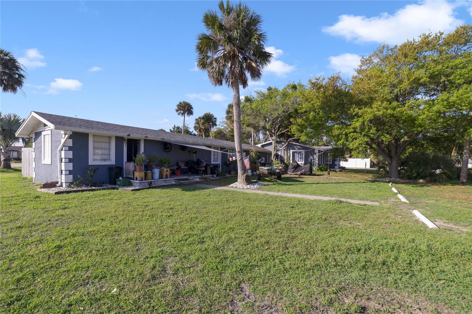 3 apartments plus a large storage yard that has an RV pad with full water, electric, and sewer hookups. Commercial Zoning, Approved for Mixed-Use Including Retail, Apartments, Storage, and Residential. Apt 1, featuring 1 bed/1 bath, is currently leased at $995. Apt 2, offering the same layout, commands $950/month. Apt 3, boasting 2 beds/2 baths is leased at $1,595 monthly. Landlord pays water and tenants pay electric. The storage lot/RV Pad was formerly leased at $700/month. This property's maintenance has been meticulously attended to, with the roof and central AC replaced in 2019 (1 bed units have window AC's). Additional updates such as upgraded electrical systems and water heaters replaced in 2015 and 2019 ensure modern functionality and efficiency. Plumbing infrastructure features CPVA/PVC. This property offers a hassle-free management experience. Whether you're seeking an excellent income investment or considering owner occupancy, this property provides a versatile and lucrative opportunity. Don't miss out on this rare chance to acquire a meticulously maintained income property in a highly sought-after location. Commercial zoning within the Ridgewood development district. Permitted uses include Retail, Storage, Multifamily, Pawnshop, appliance/electronic repair shop, Boat sales, Fraternal Organizations, industrial equipment supplies, Convenience stores with or without fuel, equipment rental, funeral home, Greenhouse/Nursery, Health/exercise club, Hotel, manufacturing, medical office, Mobile home sales, Offices, Restaurant, Tattoo establishment, and much more. Prime location near beaches, the Intercoastal, shopping centers, restaurants, and much more. Current owner pays $2,771 annual insurance premium and Real Estate taxes for 2023 were $5,689