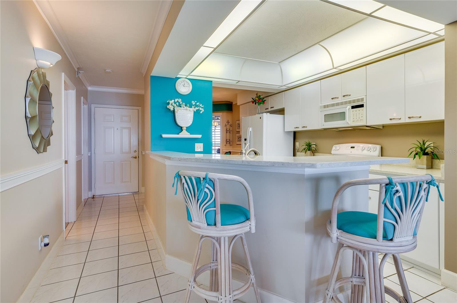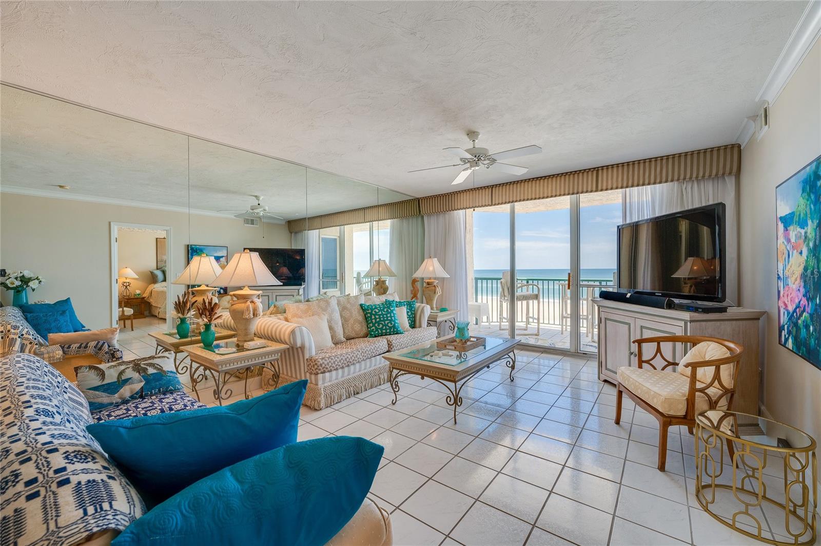 Immaculate 2-bedroom, 2-bathroom direct oceanfront condo on the third floor of The Towers at Ponce Inlet. The sleek tile floors throughout not only add a touch of elegance but also make cleaning a breeze. Meticulously cared for by its original owners, this beachfront gem showcases their unwavering commitment to maintaining its pristine condition. Both the master bathroom and guest bathroom have been tastefully updated, and the pull-out drawers in every cupboard ensure easy access and organization. Adding to the allure, the glass-enclosed lanai provides an additional living space where you can enjoy the company of loved ones while taking in the breathtaking views. This unit is being sold fully furnished, making it a turnkey opportunity for your dream coastal retreat. New AC Package Oct-2024, New Microwave, dishwasher 2023. The Towers boasts an impressive array of amenities, including a recently remodeled clubroom, a state-of-the-art fitness center, three heated pools with hot tubs, and tennis/pickleball courts. Situated on a no-drive beach, you'll have convenient access to a variety of nearby restaurants, the Marine Science Center, excellent fishing spots, and the iconic Ponce Inlet Lighthouse.