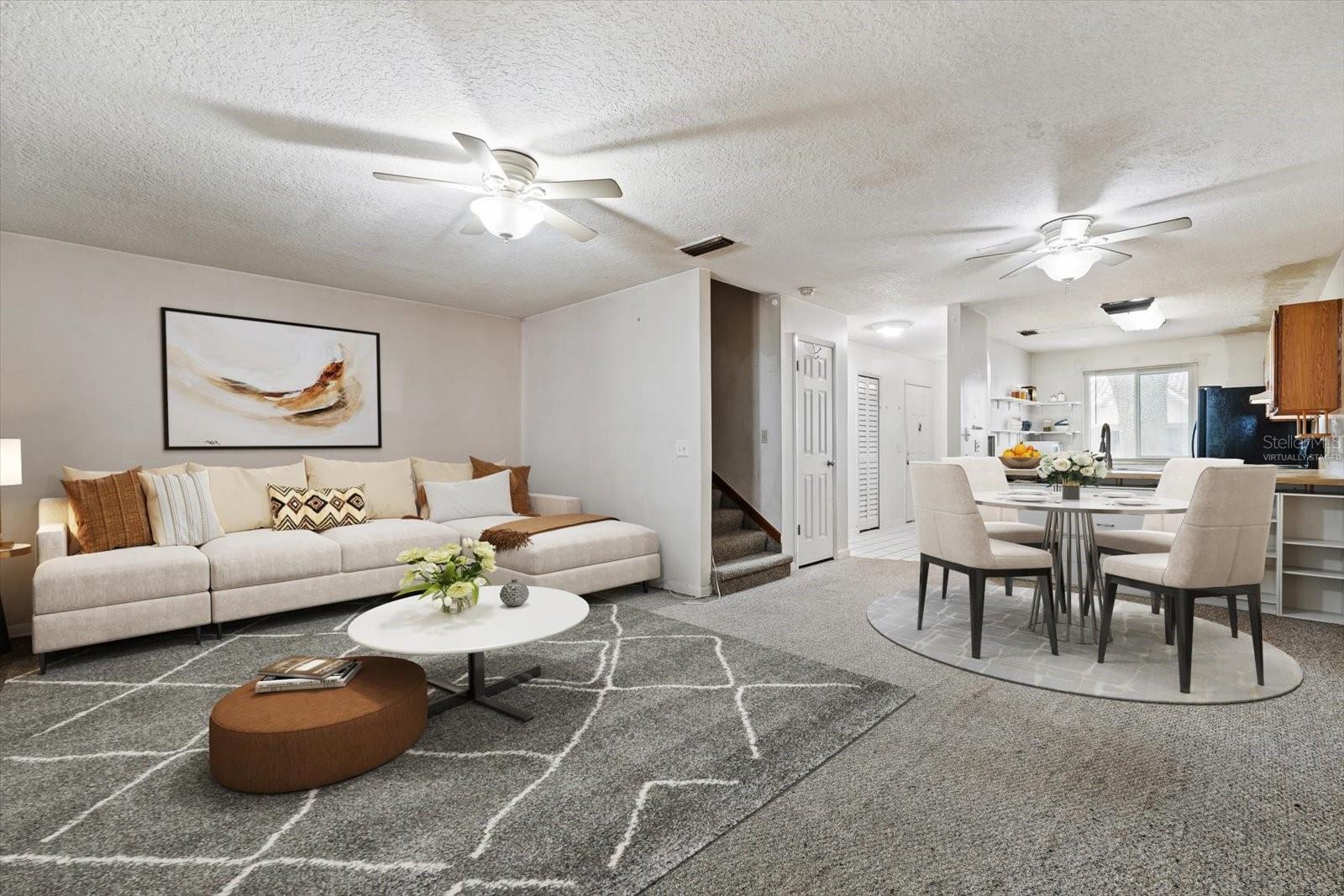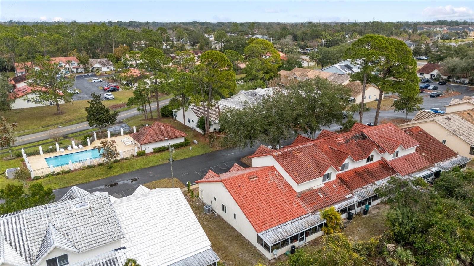 Welcome to this inviting 2-bedroom, 2 1/2-bathroom townhouse located in the peaceful community of Townhomes West. The first floor features a spacious living and dining area that seamlessly opens to a cozy Florida room, perfect for relaxation or entertaining. A convenient half bathroom completes the main level. Upstairs, you'll find two generously sized bedrooms, each with its own private en-suite bathroom, ensuring plenty of privacy and comfort. The enclosed Florida room offers additional versatile space, and the property also includes a laundry area with ample storage. Take a stroll through the serene community or enjoy a dip in the sparkling community pool. Nestled in the quiet, wooded area of Port Orange, this home is still just moments away from shopping, dining, and other conveniences. With a low monthly HOA fee of just $105, this townhouse presents an incredible opportunity for first-time buyers or investors. With some TLC and your personal touch, this home could easily be transformed into your dream space. Don't miss out on this perfect starter home or investment property!