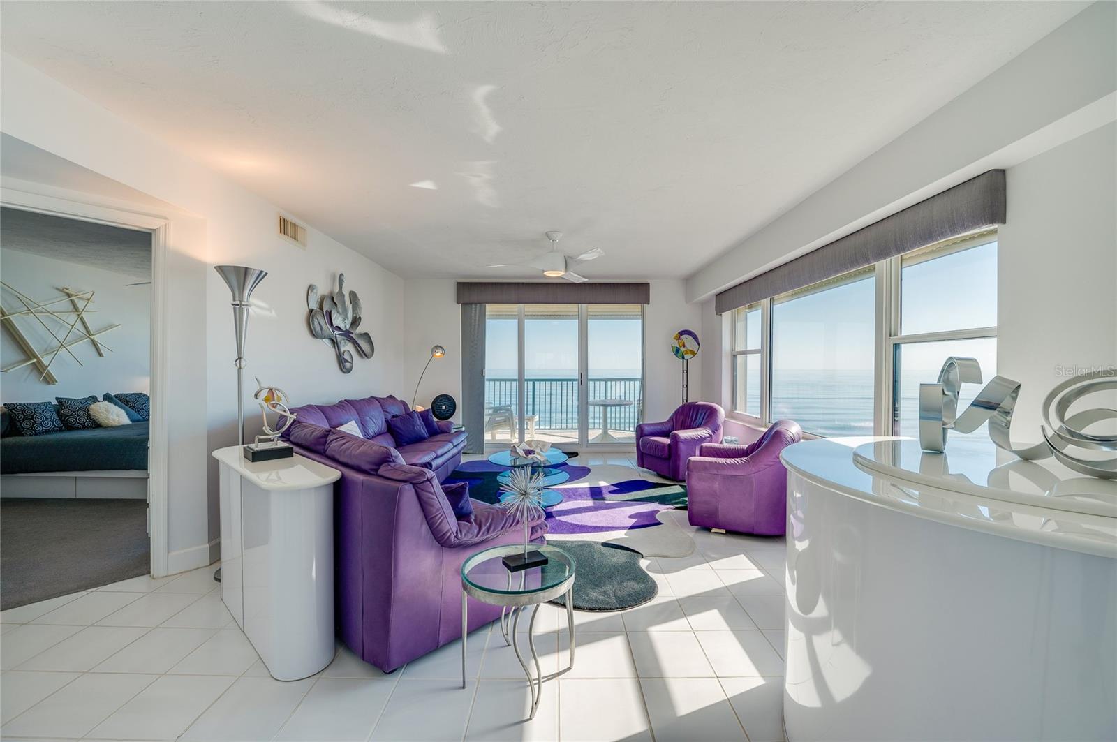 Discover the perfect blend of luxury and coastal charm in this stunning 3-bedroom, 3-bathroom oceanfront condo, available at an incredible price. This is the most competitively priced 3-bedroom, 3-bathroom direct oceanfront unit in the Towers of Ponce Inlet and comes fully furnished as shown. Every detail of this beautiful unit is designed to enhance your living experience. Enjoy breathtaking ocean views from every bedroom, filling the space with natural light. Situated on the southeast corner of Towers 4, this condo boasts tile flooring from the entryway through the kitchen, living room, and dining room, complemented by carpet in all three bedrooms. Step onto the screened and enclosed front lanai to savor stunning riverside sunsets with your favorite beverage in hand. The Towers of Ponce Inlet offer an array of amenities, including tennis and pickleball courts, three oceanfront heated pools, three hot tubs, secured underground parking, an underground car wash, an updated club room, and a spacious fitness center. Located in the charming seaside town of Ponce Inlet, just south of Daytona Beach, you'll find yourself surrounded by natural beauty and recreational opportunities. Explore landmarks like the historic Lighthouse, a fishing jetty, and parks perfect for walking, as well as basketball and pickleball courts. Plus, indulge in local dining options and live music, creating a vibrant coastal lifestyle.