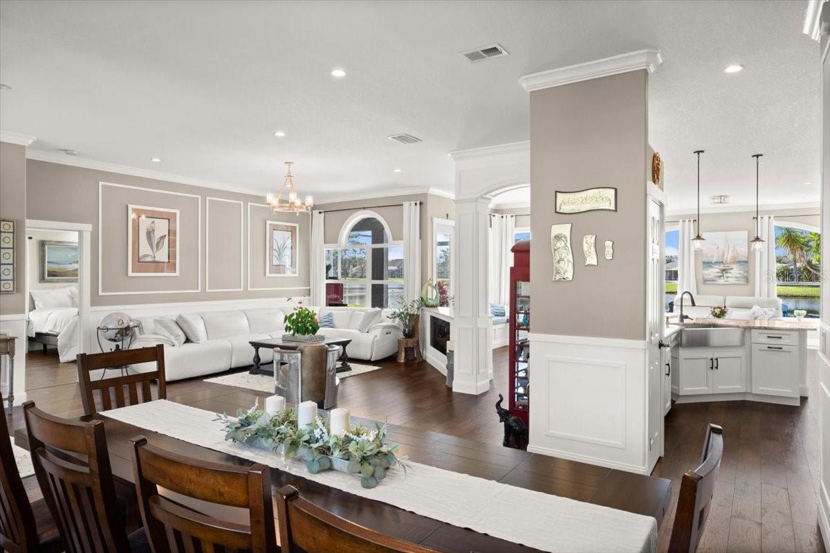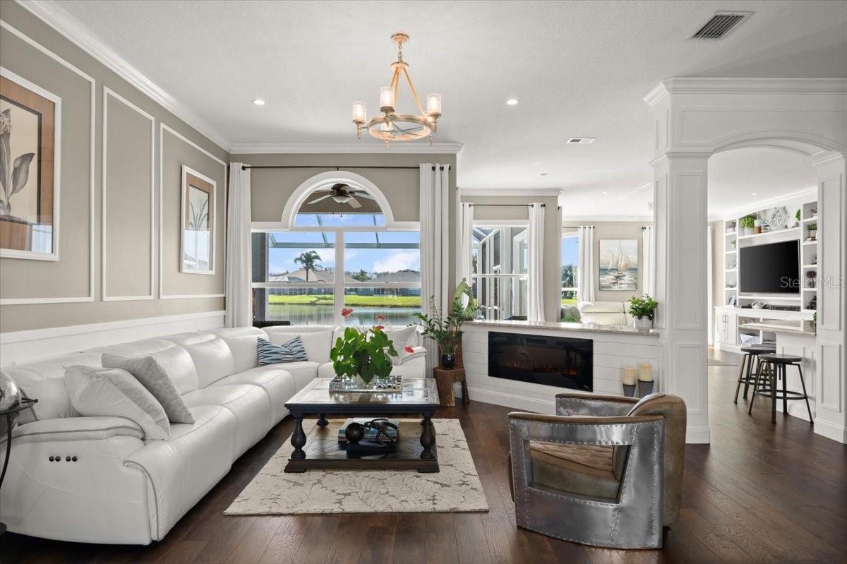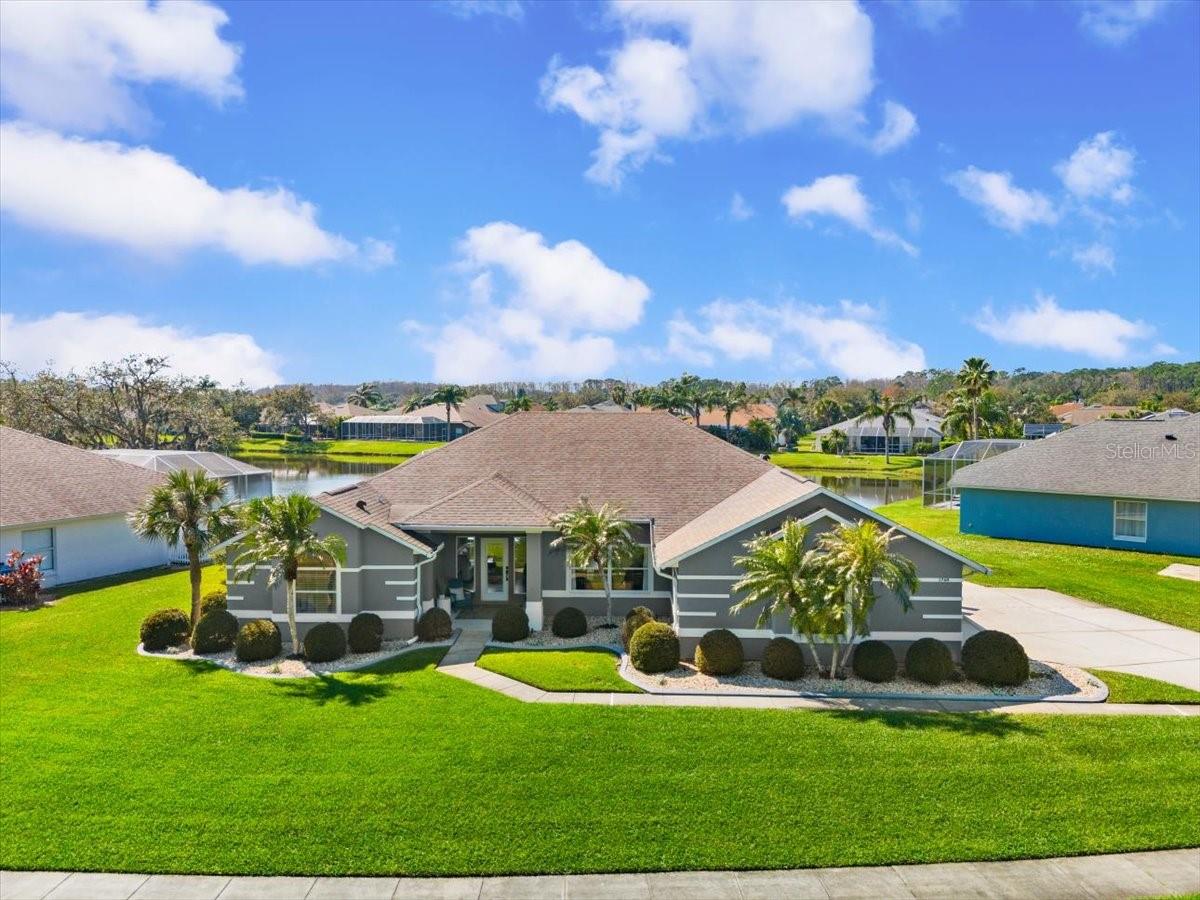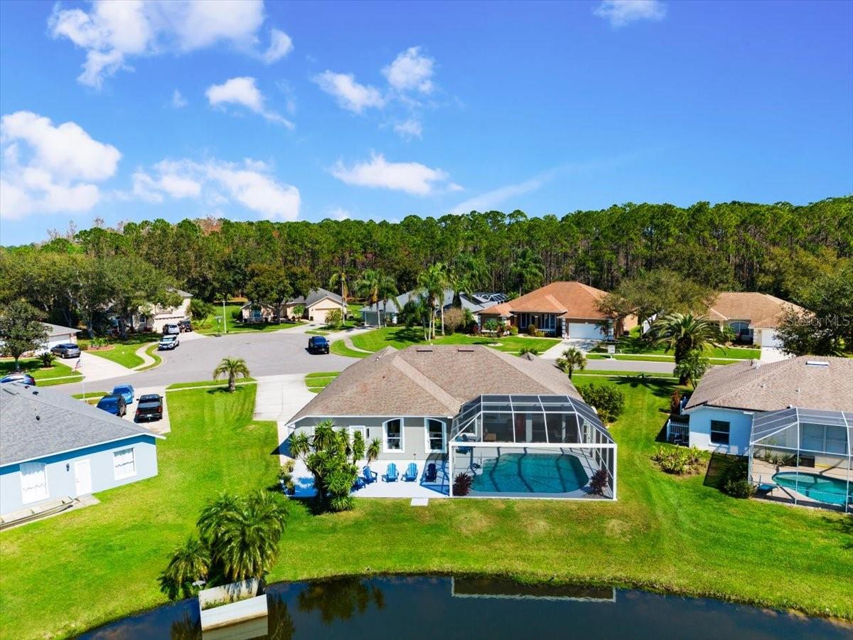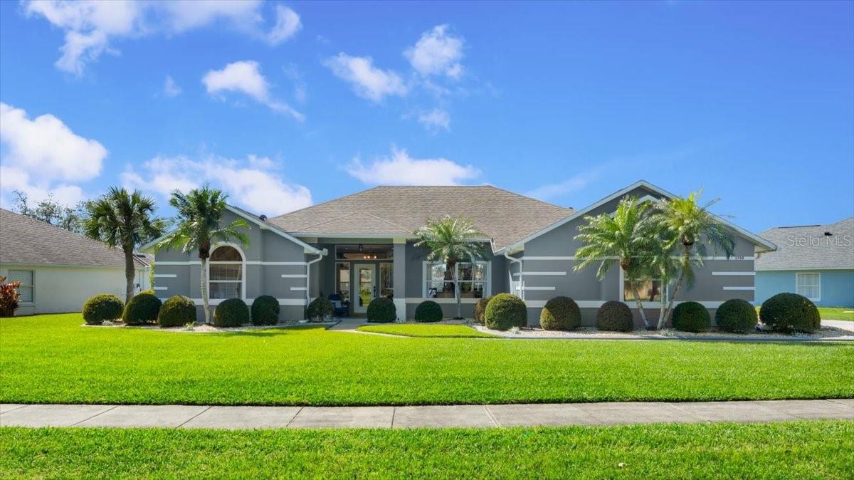 THIS IS AN INCREDIBLE OPPORTUNITY TO OWN A STUNNING ONE-OF-A-KIND 4-BEDROOM 2-BATH LAKEFRONT POOL HOME FEATURING CUSTOM UPGRADES, EXQUISITE DETAIL & BREATHTAKING WATER & SUNSET VIEWS. LIVE THE LUXURY LIFESTYLE IN THIS GORGEOUS ICI WESTMINSTER SPLIT-BEDROOM MODEL. IMPRESSIVE DOUBLE DOOR ENTRY INTO FORMAL LIVING & DINING ROOMS FEATURING GORGEOUS CUSTOM WOOD PANELING, TRIM & MOULDING, LUXURY VINYL PLANK FLOORING & SHIPLAP FRAMED ELECTRIC FIREPLACE W/CUSTOM WINE BAR ON OPPOSITE SIDE... REMODELED GOURMET COASTAL KITCHEN OFFERS OVERSIZED WOOD CROWN TOPPED CABINETRY, NEWER STAINLESS APPLIANCES, INCLUDING FLAT RANGE W/ VENTED HOOD...STACKED STONE BACKSPLASH, GRANTE COUNTERS, CUSTOM PANTRY W/PULL-OUT DRAWERS, EXTENDED BREAKFAST BAR & EAT-IN BREAKFAST NOOK W/BUILT-IN BENCH SEATING OVERLOOKING POOL DECK...SPACIOUS FAMILY ROOM CREATES THE PERFECT RELAXATION SPACE W/LOTS OF NATURAL LIGHT, CUSTOM BUILT-IN FLOOR TO CEILING WOOD WALL UNIT. PRIVATE PRIMARY SUITE W/DOUBLE TRAY CEILING CROWN MOLDING & SLIDER ACCESS TO COVERED LANAI & POOL DECK... SPA-LIKE BATH FEATURES TILE FLOORING, DOUBLE SINK VANITY, FLOOR TO CEILING TILED WALK-IN SHOWER W/GLASS SUBWAY TILE ACCENT, GARDEN TUB & TWO SPACIOUS WALK-IN CLOSETS... SEPARATE WING W/THREE BEDROOMS & UPDATED FULL BATH W/NEW DOOR TO OUTSIDE PADIO & POOL DECK. ENJOY ENDLESS DAYS AND NIGHTS RELAXING ON NEW SCREENED-IN POOL DECK & COVERED LANAI OR KICK BACK AND TAKE IN THE BREATHTAKING SUNSETS OVER THE LAKE FROM OPEN PAVER PATIO... HOME ALSO INCLUDES SIDE ENTRY OVERSZED TWO CAR GARAGE REMODELED W/APOXY FLOORING... NEWER AC & HOT WATER HEATER... NEW GUTTERS, NEW EXTERIOR WINDOW TRIM & NEW POOL PUMP. THE WATERS EDGE COMMUNITY OFFERS BEAUTIFUL LAKES, NATURAL SCENERY AND YEAR ROUND OUTDOOR ACITIVITIES... NEARBY CITY PARK W/PLAYGROUND, TENNIS/PICKLEBALL COURTS AND BASKETBALL... ZONED FOR CYPRESS CREEK ELEMENTARY, CREEKSIDE MIDDLE AND SPRUCE CREEK HIGH SCHOOL... JUST A FEW MILES TO THE PAVILION SHOPPING CENTER, RESTAURANTS AND ABOUT TEN MILE DRIVE TO THE BEACH...