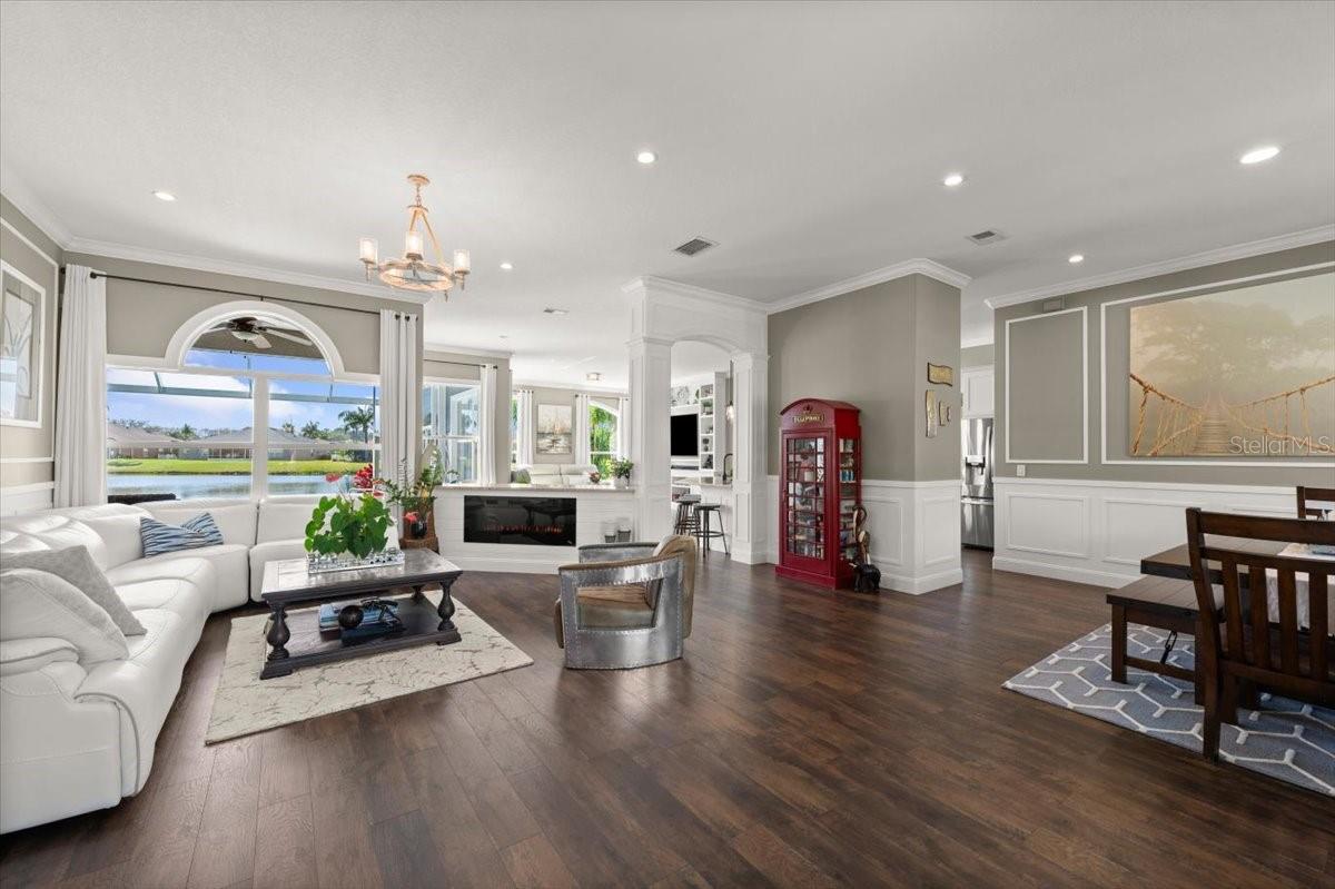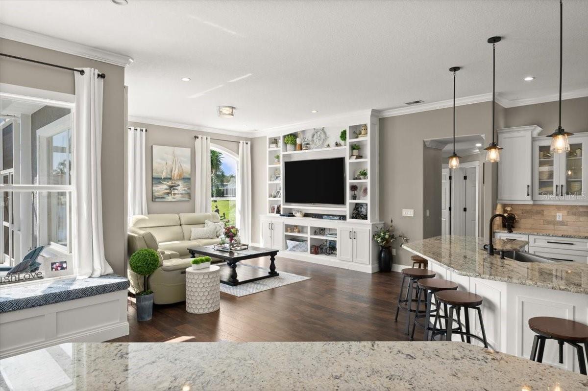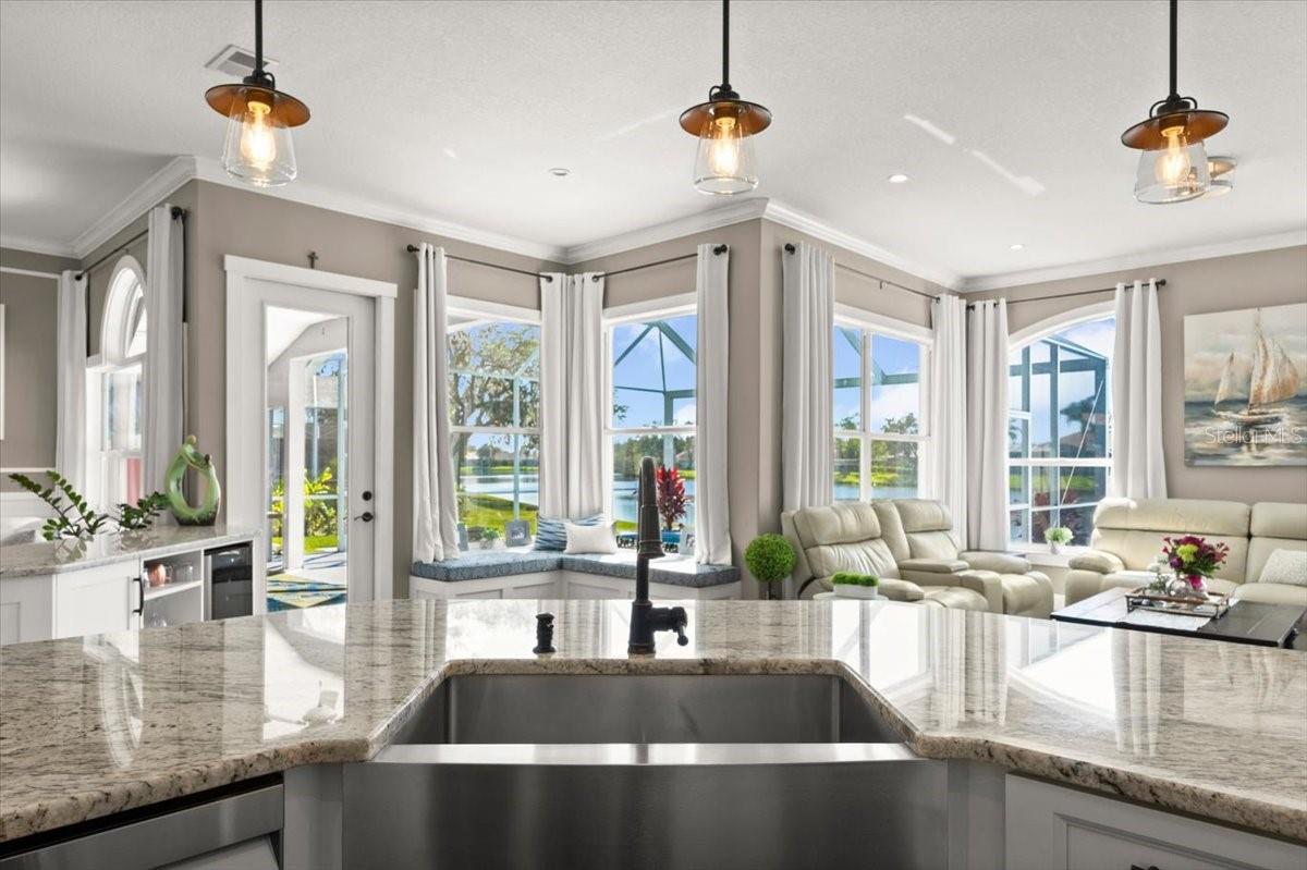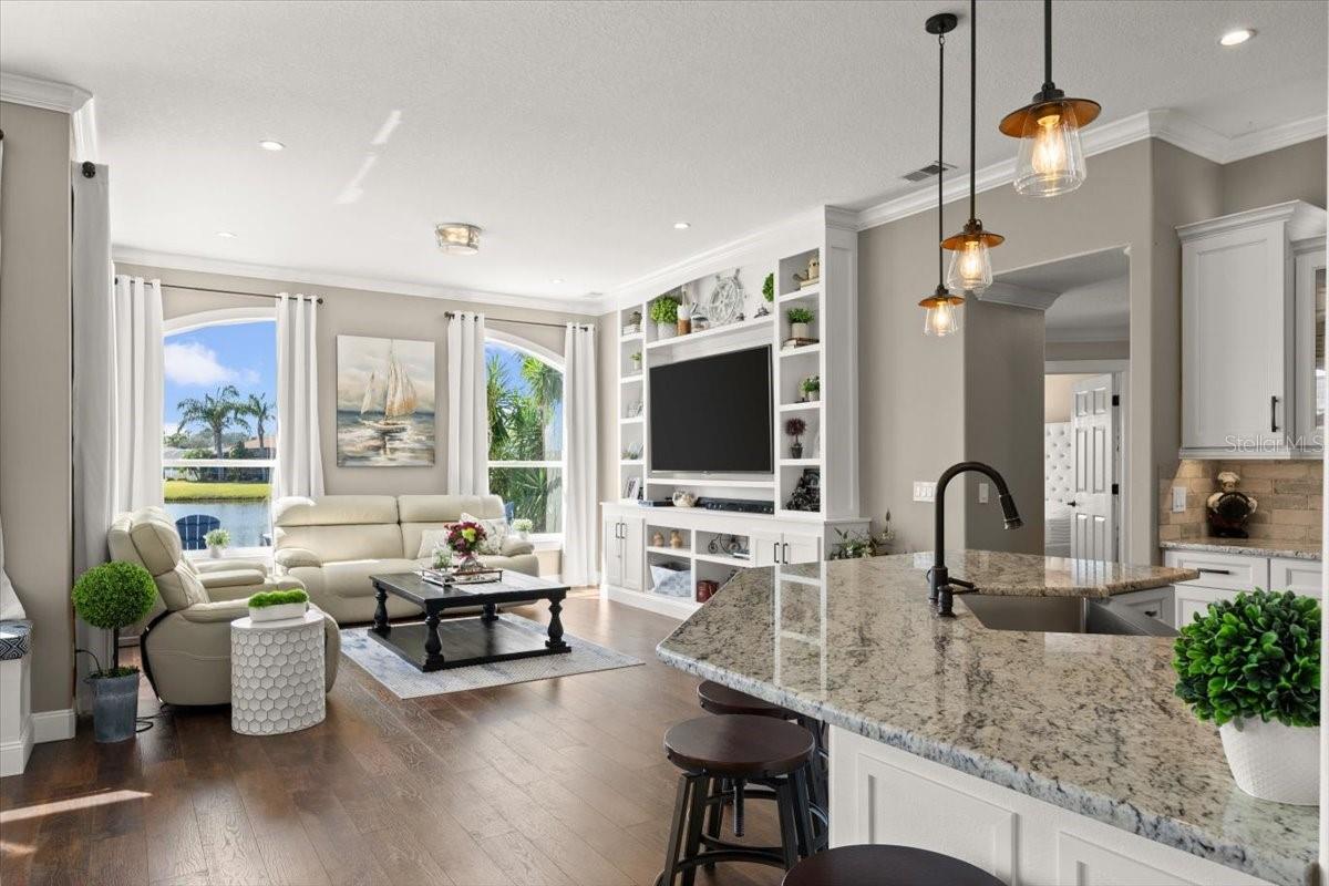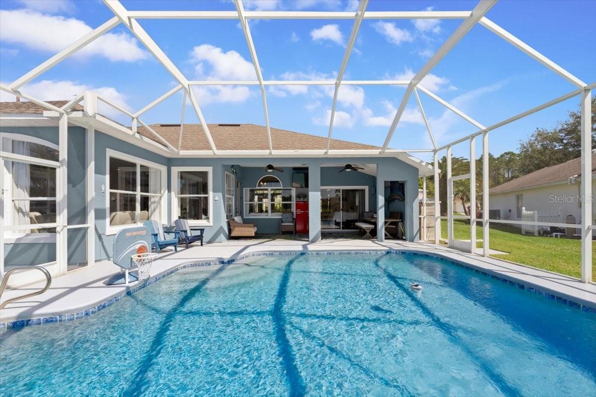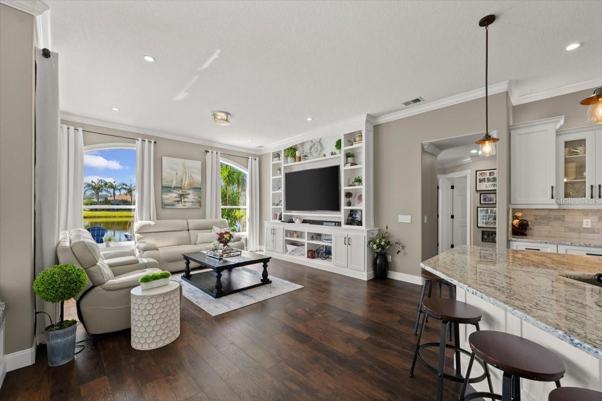 THIS IS AN INCREDIBLE OPPORTUNITY TO OWN A STUNNING ONE-OF-A-KIND 4-BEDROOM 2-BATH LAKEFRONT POOL HOME FEATURING CUSTOM UPGRADES, EXQUISITE DETAIL & BREATHTAKING WATER & SUNSET VIEWS. LIVE THE LUXURY LIFESTYLE IN THIS GORGEOUS ICI WESTMINSTER SPLIT-BEDROOM MODEL. IMPRESSIVE DOUBLE DOOR ENTRY INTO FORMAL LIVING & DINING ROOMS FEATURING GORGEOUS CUSTOM WOOD PANELING, TRIM & MOULDING, LUXURY VINYL PLANK FLOORING & SHIPLAP FRAMED ELECTRIC FIREPLACE W/CUSTOM WINE BAR ON OPPOSITE SIDE... REMODELED GOURMET COASTAL KITCHEN OFFERS OVERSIZED WOOD CROWN TOPPED CABINETRY, NEWER STAINLESS APPLIANCES, INCLUDING FLAT RANGE W/ VENTED HOOD...STACKED STONE BACKSPLASH, GRANTE COUNTERS, CUSTOM PANTRY W/PULL-OUT DRAWERS, EXTENDED BREAKFAST BAR & EAT-IN BREAKFAST NOOK W/BUILT-IN BENCH SEATING OVERLOOKING POOL DECK...SPACIOUS FAMILY ROOM CREATES THE PERFECT RELAXATION SPACE W/LOTS OF NATURAL LIGHT, CUSTOM BUILT-IN FLOOR TO CEILING WOOD WALL UNIT. PRIVATE PRIMARY SUITE W/DOUBLE TRAY CEILING CROWN MOLDING & SLIDER ACCESS TO COVERED LANAI & POOL DECK... SPA-LIKE BATH FEATURES TILE FLOORING, DOUBLE SINK VANITY, FLOOR TO CEILING TILED WALK-IN SHOWER W/GLASS SUBWAY TILE ACCENT, GARDEN TUB & TWO SPACIOUS WALK-IN CLOSETS... SEPARATE WING W/THREE BEDROOMS & UPDATED FULL BATH W/NEW DOOR TO OUTSIDE PADIO & POOL DECK. ENJOY ENDLESS DAYS AND NIGHTS RELAXING ON NEW SCREENED-IN POOL DECK & COVERED LANAI OR KICK BACK AND TAKE IN THE BREATHTAKING SUNSETS OVER THE LAKE FROM OPEN PAVER PATIO... HOME ALSO INCLUDES SIDE ENTRY OVERSZED TWO CAR GARAGE REMODELED W/APOXY FLOORING... NEWER AC & HOT WATER HEATER... NEW GUTTERS, NEW EXTERIOR WINDOW TRIM & NEW POOL PUMP. THE WATERS EDGE COMMUNITY OFFERS BEAUTIFUL LAKES, NATURAL SCENERY AND YEAR ROUND OUTDOOR ACITIVITIES... NEARBY CITY PARK W/PLAYGROUND, TENNIS/PICKLEBALL COURTS AND BASKETBALL... ZONED FOR CYPRESS CREEK ELEMENTARY, CREEKSIDE MIDDLE AND SPRUCE CREEK HIGH SCHOOL... JUST A FEW MILES TO THE PAVILION SHOPPING CENTER, RESTAURANTS AND ABOUT TEN MILE DRIVE TO THE BEACH...