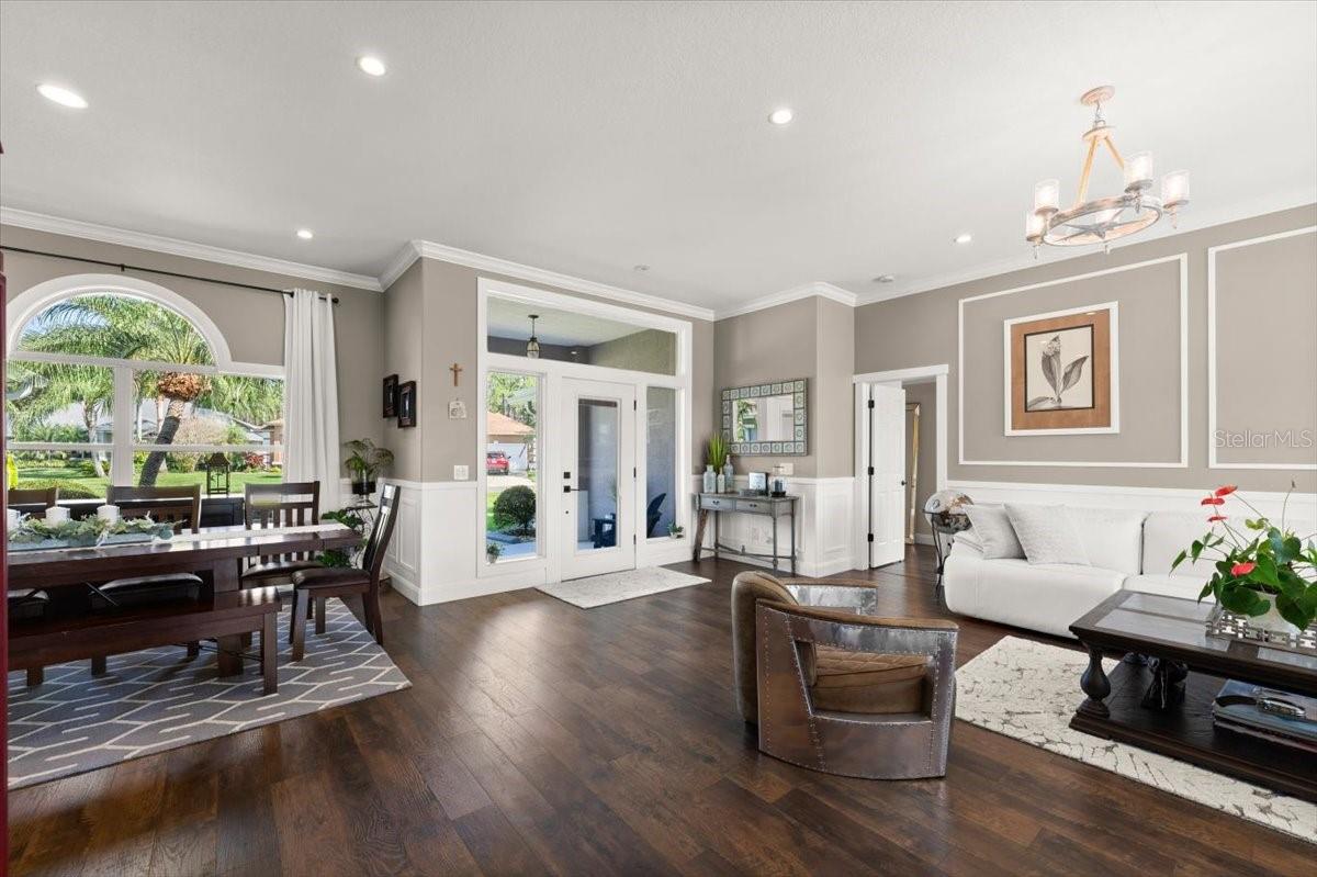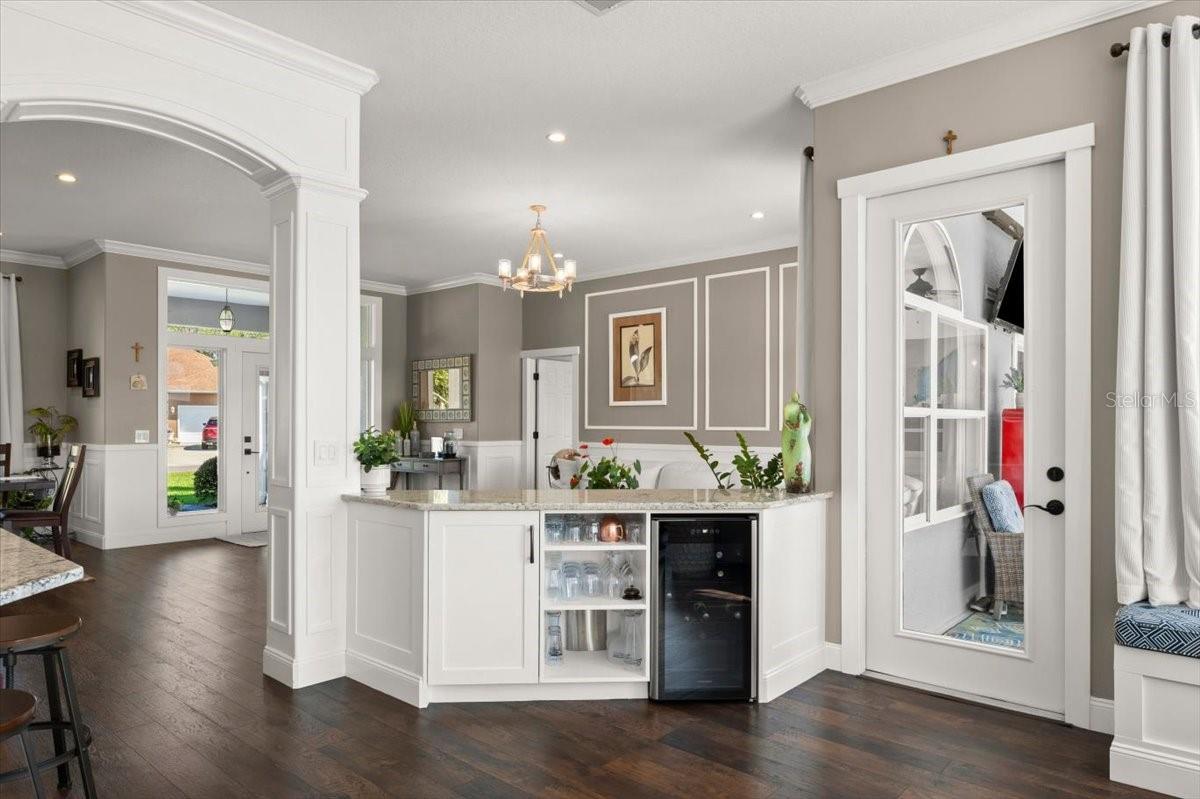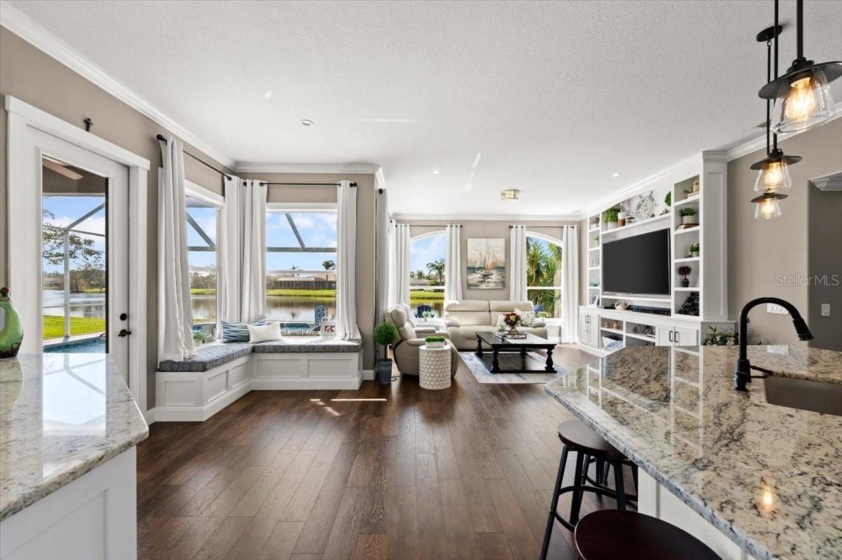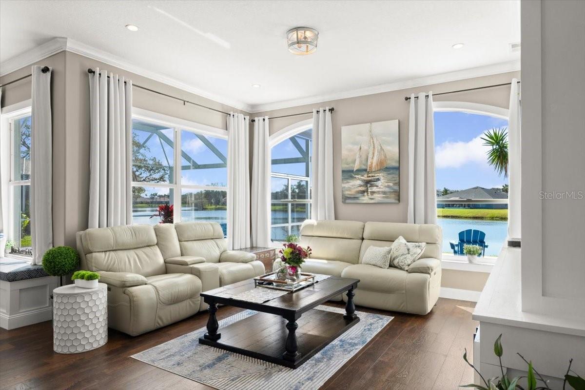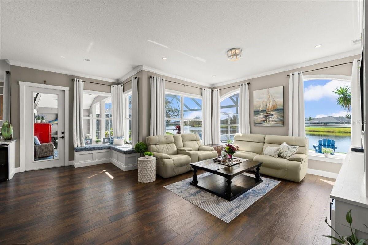 THIS IS AN INCREDIBLE OPPORTUNITY TO OWN A STUNNING ONE-OF-A-KIND 4-BEDROOM 2-BATH LAKEFRONT POOL HOME FEATURING CUSTOM UPGRADES, EXQUISITE DETAIL & BREATHTAKING WATER & SUNSET VIEWS. LIVE THE LUXURY LIFESTYLE IN THIS GORGEOUS ICI WESTMINSTER SPLIT-BEDROOM MODEL. IMPRESSIVE DOUBLE DOOR ENTRY INTO FORMAL LIVING & DINING ROOMS FEATURING GORGEOUS CUSTOM WOOD PANELING, TRIM & MOULDING, LUXURY VINYL PLANK FLOORING & SHIPLAP FRAMED ELECTRIC FIREPLACE W/CUSTOM WINE BAR ON OPPOSITE SIDE... REMODELED GOURMET COASTAL KITCHEN OFFERS OVERSIZED WOOD CROWN TOPPED CABINETRY, NEWER STAINLESS APPLIANCES, INCLUDING FLAT RANGE W/ VENTED HOOD...STACKED STONE BACKSPLASH, GRANTE COUNTERS, CUSTOM PANTRY W/PULL-OUT DRAWERS, EXTENDED BREAKFAST BAR & EAT-IN BREAKFAST NOOK W/BUILT-IN BENCH SEATING OVERLOOKING POOL DECK...SPACIOUS FAMILY ROOM CREATES THE PERFECT RELAXATION SPACE W/LOTS OF NATURAL LIGHT, CUSTOM BUILT-IN FLOOR TO CEILING WOOD WALL UNIT. PRIVATE PRIMARY SUITE W/DOUBLE TRAY CEILING CROWN MOLDING & SLIDER ACCESS TO COVERED LANAI & POOL DECK... SPA-LIKE BATH FEATURES TILE FLOORING, DOUBLE SINK VANITY, FLOOR TO CEILING TILED WALK-IN SHOWER W/GLASS SUBWAY TILE ACCENT, GARDEN TUB & TWO SPACIOUS WALK-IN CLOSETS... SEPARATE WING W/THREE BEDROOMS & UPDATED FULL BATH W/NEW DOOR TO OUTSIDE PADIO & POOL DECK. ENJOY ENDLESS DAYS AND NIGHTS RELAXING ON NEW SCREENED-IN POOL DECK & COVERED LANAI OR KICK BACK AND TAKE IN THE BREATHTAKING SUNSETS OVER THE LAKE FROM OPEN PAVER PATIO... HOME ALSO INCLUDES SIDE ENTRY OVERSZED TWO CAR GARAGE REMODELED W/APOXY FLOORING... NEWER AC & HOT WATER HEATER... NEW GUTTERS, NEW EXTERIOR WINDOW TRIM & NEW POOL PUMP. THE WATERS EDGE COMMUNITY OFFERS BEAUTIFUL LAKES, NATURAL SCENERY AND YEAR ROUND OUTDOOR ACITIVITIES... NEARBY CITY PARK W/PLAYGROUND, TENNIS/PICKLEBALL COURTS AND BASKETBALL... ZONED FOR CYPRESS CREEK ELEMENTARY, CREEKSIDE MIDDLE AND SPRUCE CREEK HIGH SCHOOL... JUST A FEW MILES TO THE PAVILION SHOPPING CENTER, RESTAURANTS AND ABOUT TEN MILE DRIVE TO THE BEACH...