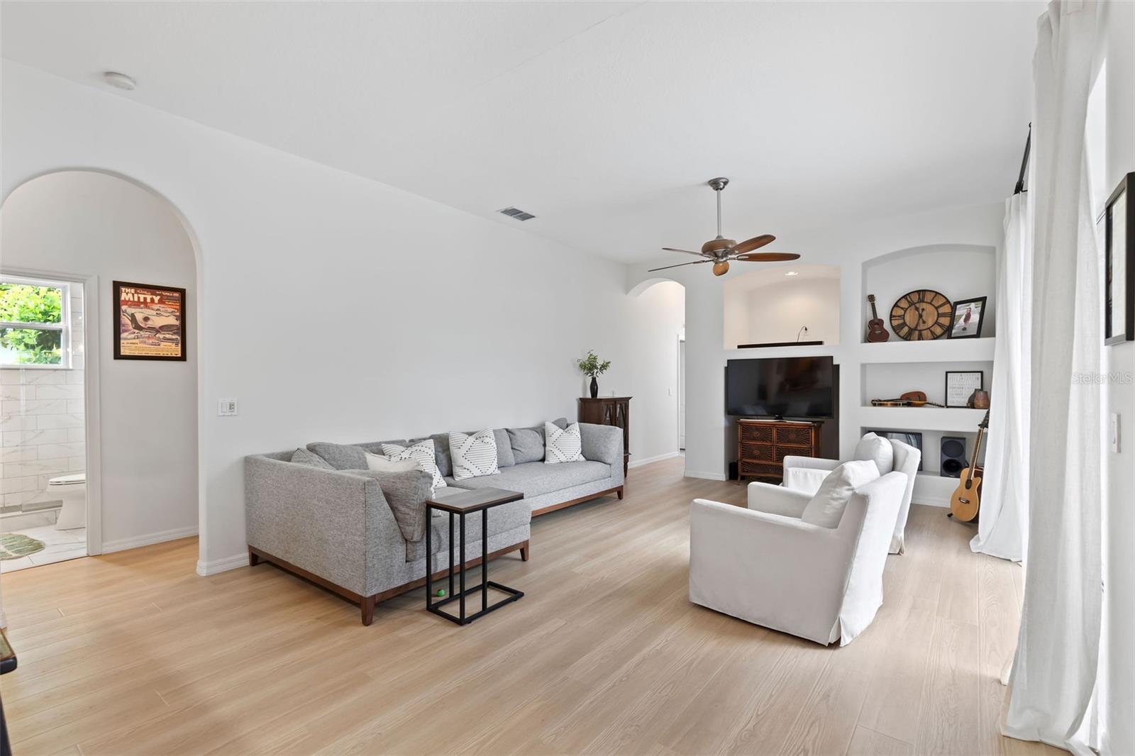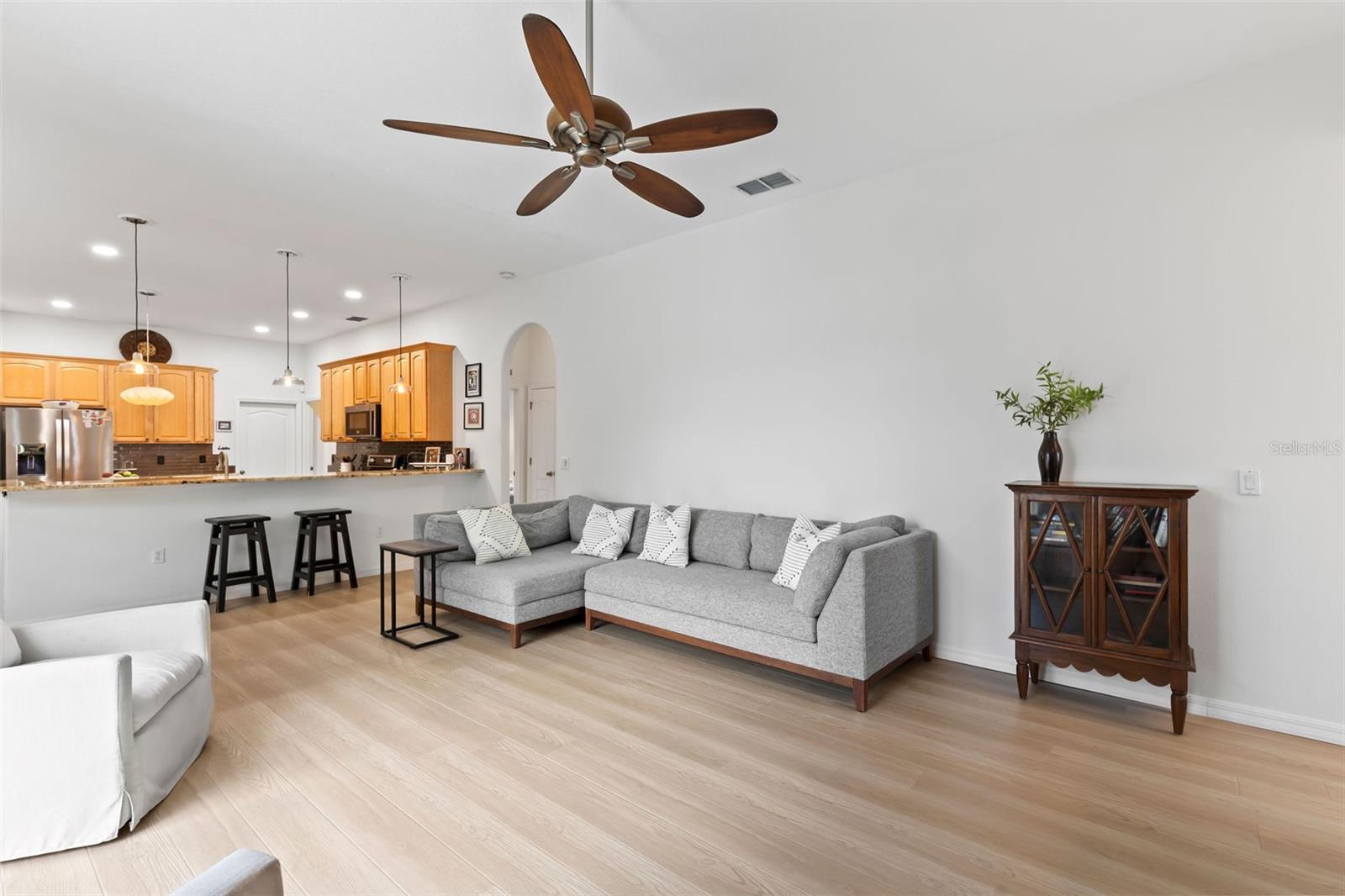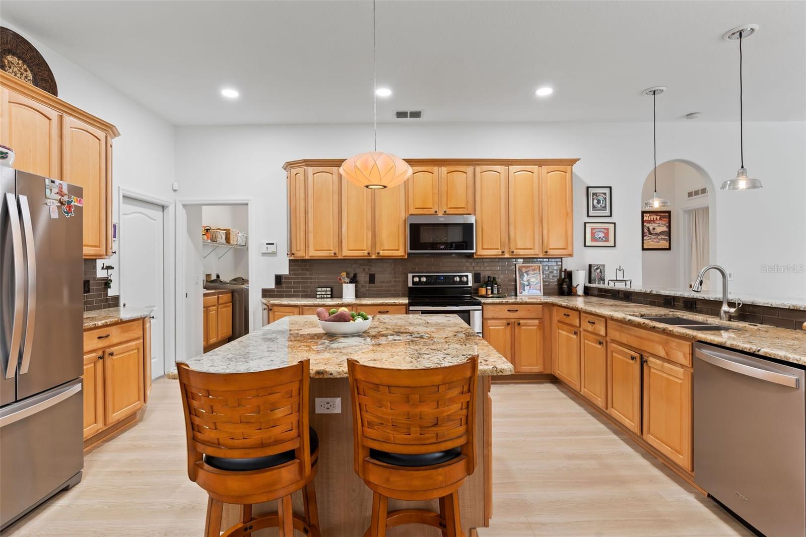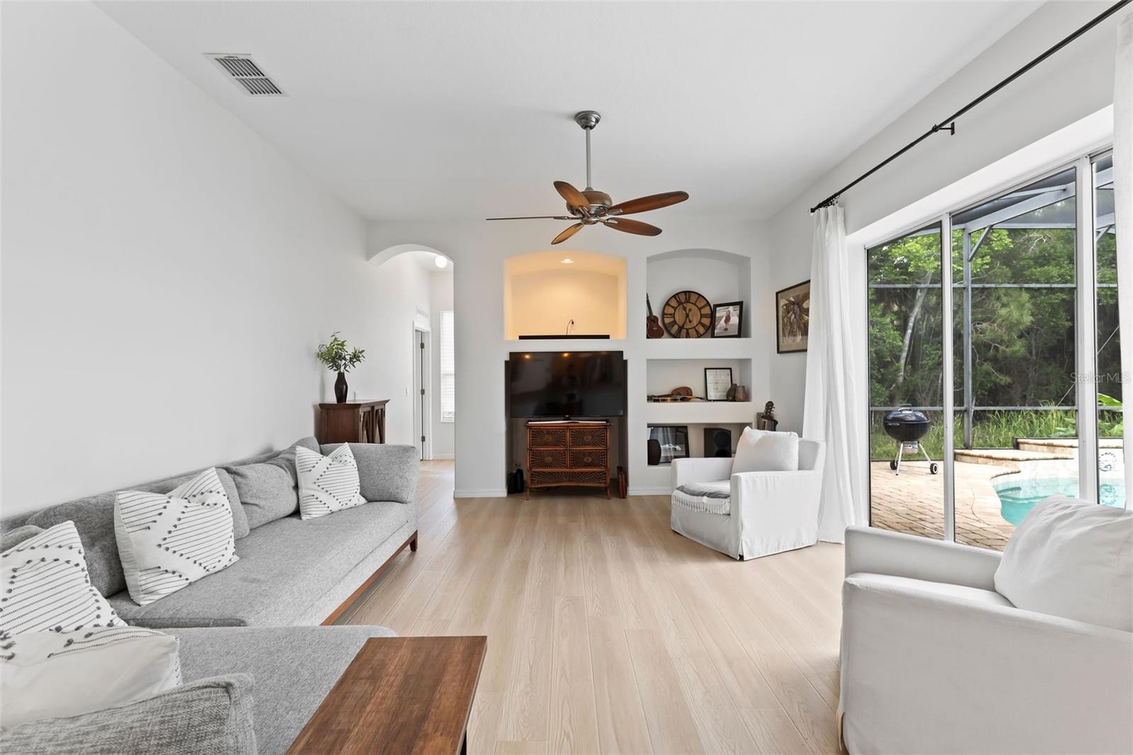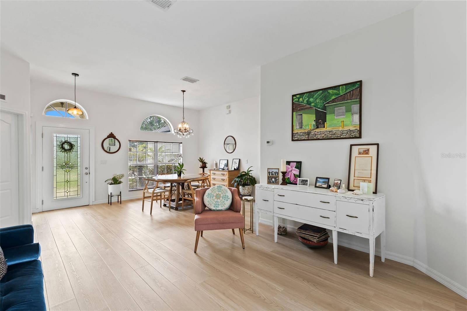Live the Florida lifestyle in this stylish 4-bedroom, 3-bath saltwater pool home in the desirable Sunrise Oaks community. Designed with function and flow in mind, this home offers a split bedroom layout, high ceilings, and an open concept living space ideal for modern living. The large kitchen boasts granite countertops, stainless steel appliances, a center island, and a breakfast bar—seamlessly connecting to the spacious family room and eat-in dining area. There’s also a separate living room, perfect for additional entertainment space, a quiet reading nook, or a more formal setting as well as formal dining room. With luxury vinyl plank flooring throughout and one recently renovated bathroom, the home is updated and move-in ready. The private master suite features an ensuite with soaking tub, separate shower, and water closet. Two additional bedroom wings provide ideal privacy for guests or multi-generational living, and one bathroom offers direct access to the pool. A separate office and laundry room with sink add convenience, while the 3-car garage ensures space for everything. This home has never flooded, offering both comfort and peace of mind. Updates include a brand-new roof (2024), HVAC (2016), and water heater (2020). All information taken from the tax record, and while deemed reliable, cannot be guaranteed.