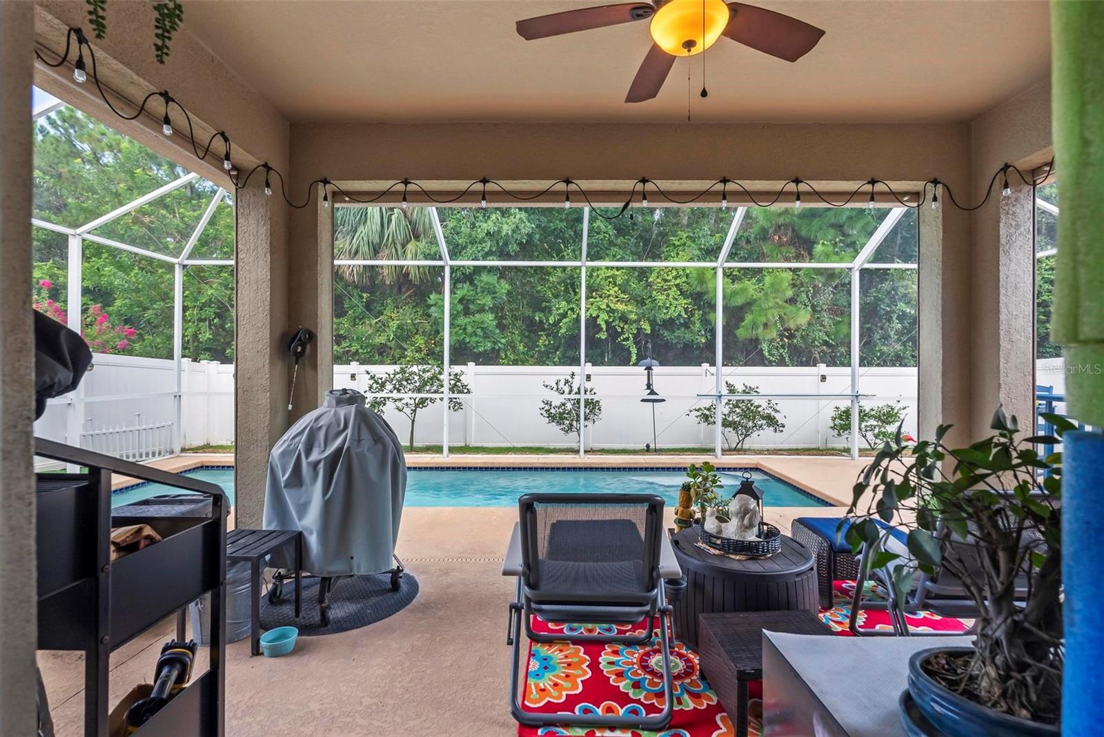 Welcome to this beautifully maintained home in the highly sought-after Oakbrook Community of Port Orange! Located just minutes from the beach, shopping, dining, and I-95, this home is tucked into a quiet, friendly neighborhood featuring sidewalks, streetlights, and a playground. This spacious home offers a split floor plan and numerous upgrades. Major systems include a 2020 HVAC. Enjoy peace of mind with a whole-house generator, motorized hurricane shutters, and a transferable termite and pest control bond. Step outside to your own backyard oasis—complete with a screen-enclosed saltwater pool, new filter system, chlorinator, and timer. The home backs up to a preserve, ensuring no rear neighbors. The yard features lemon, tangerine, and key lime trees, a vinyl privacy fence, irrigation system, and concrete curbing for easy landscaping maintenance. Inside, the kitchen shines with new stainless appliances, a double oven with convection, and abundant storage cabinets. The whole-house water softener and kitchen purification system add even more value. The guest bath features a new shower enclosure and sink/faucet, while the primary bath includes new sinks/faucets, reglazed tub, bidet, built-in vanity, and a custom walk-in closet. New light fixtures throughout give the home a fresh, modern feel. This move-in ready home has everything you need—schedule your private tour today!