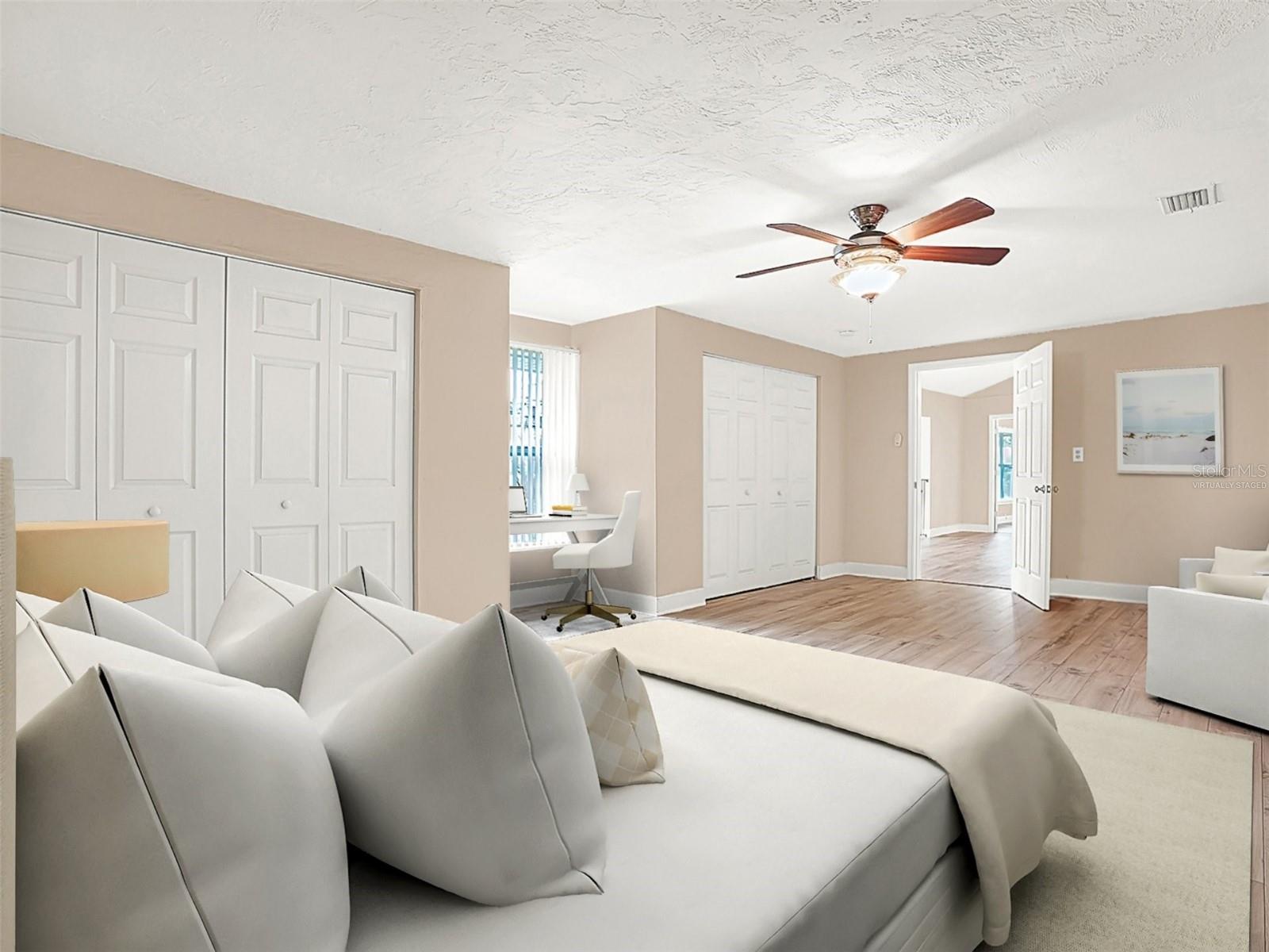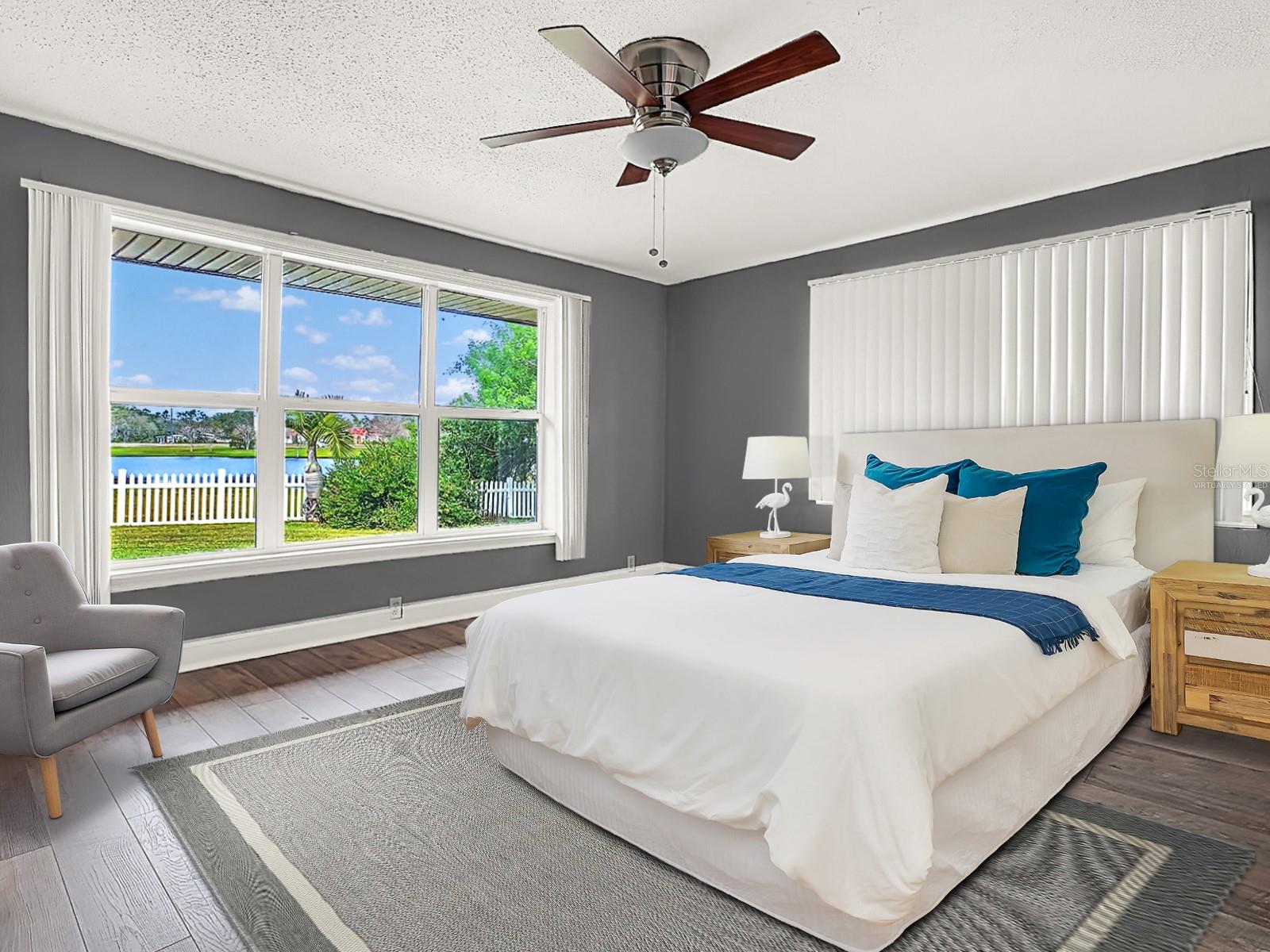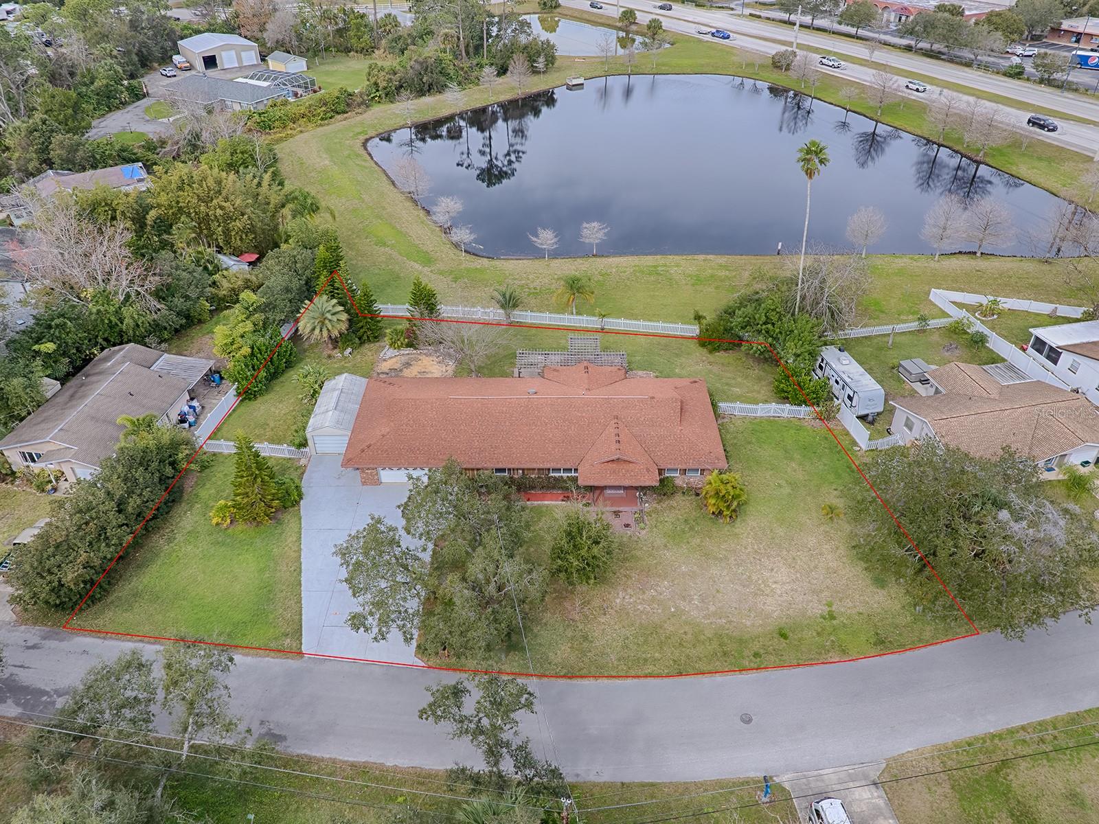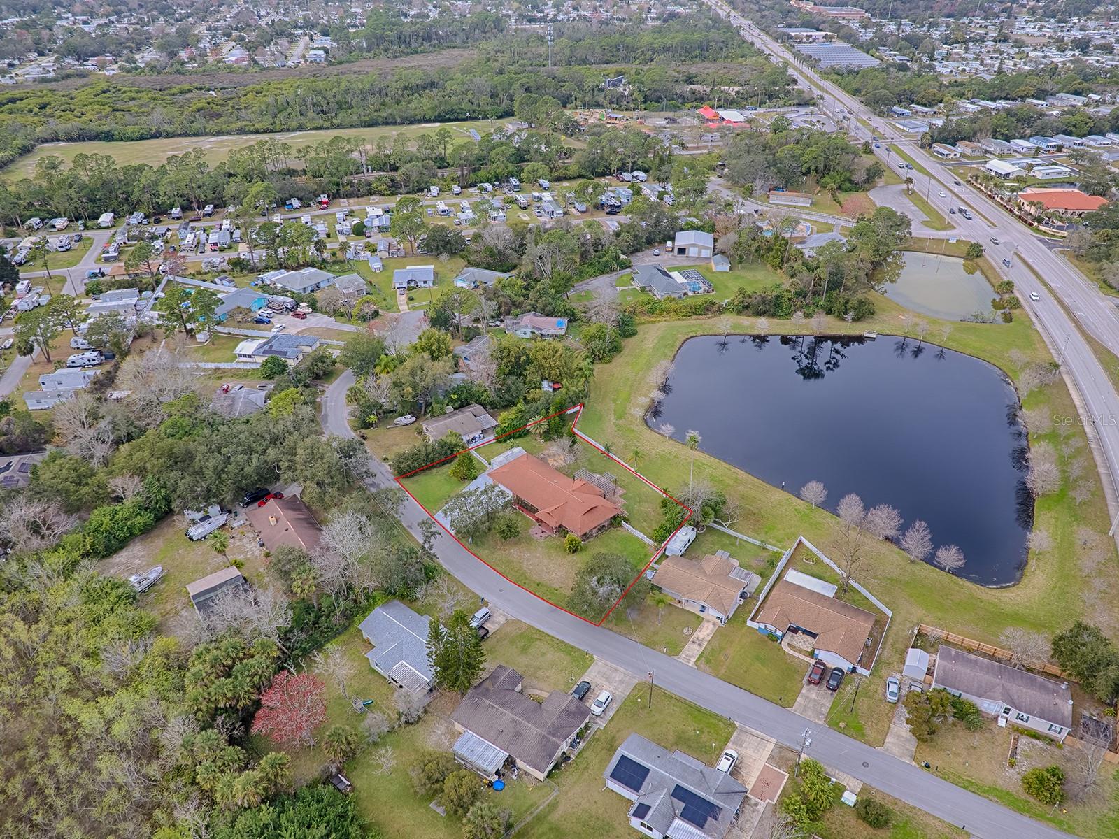 One or more photo(s) has been virtually staged. ** NEW ROOF to be installed before closing ** Welcome to your coastal retreat! This bright, contemporary home is ideally located just 1 mile from the Intracoastal Waterway and 3 miles from the stunning Atlantic Ocean. Perfect for outdoor enthusiasts, you're only minutes from the serene beauty of Spruce Creek Park, where kayaking and nature walks await. Plus, you'll enjoy the convenience of nearby shopping and quick access to major highways. Step inside and be welcomed by scenic views of lush landscaping and a tranquil neighborhood pond. The expansive kitchen, just off the entrance, features ample seating at the breakfast bar, perfect for entertaining or casual dining. The home’s smart split floor plan offers a private primary suite with double closets and an en-suite bathroom, all overlooking the peaceful pond. Two additional bedrooms share a Jack and Jill bathroom with a large walk-in closet, providing space and comfort for family or guests. Modern finishes include brand-new laminate flooring and oversized tile throughout, ensuring a stylish and durable interior. Built with cypress siding and cypress board roofing, this is known to be bug, mold and rot-resistant AND comes with a transferable termite bond for added peace of mind. ALSO included is a brand-new 65 gallon Hybrid water heater creating efficiency with your utility costs. Situated on a quiet cul-de-sac, the property spans three lots and features an oversized two-car garage, a fenced yard, and a spacious shed ideal for storage or a workshop. The driveway is wide, approximately the width of three cars with plenty of parking allowing up to approximately eight cars. This home is ready to host all your gatherings and outdoor adventures. ** NEW ROOF to be installed before closing **