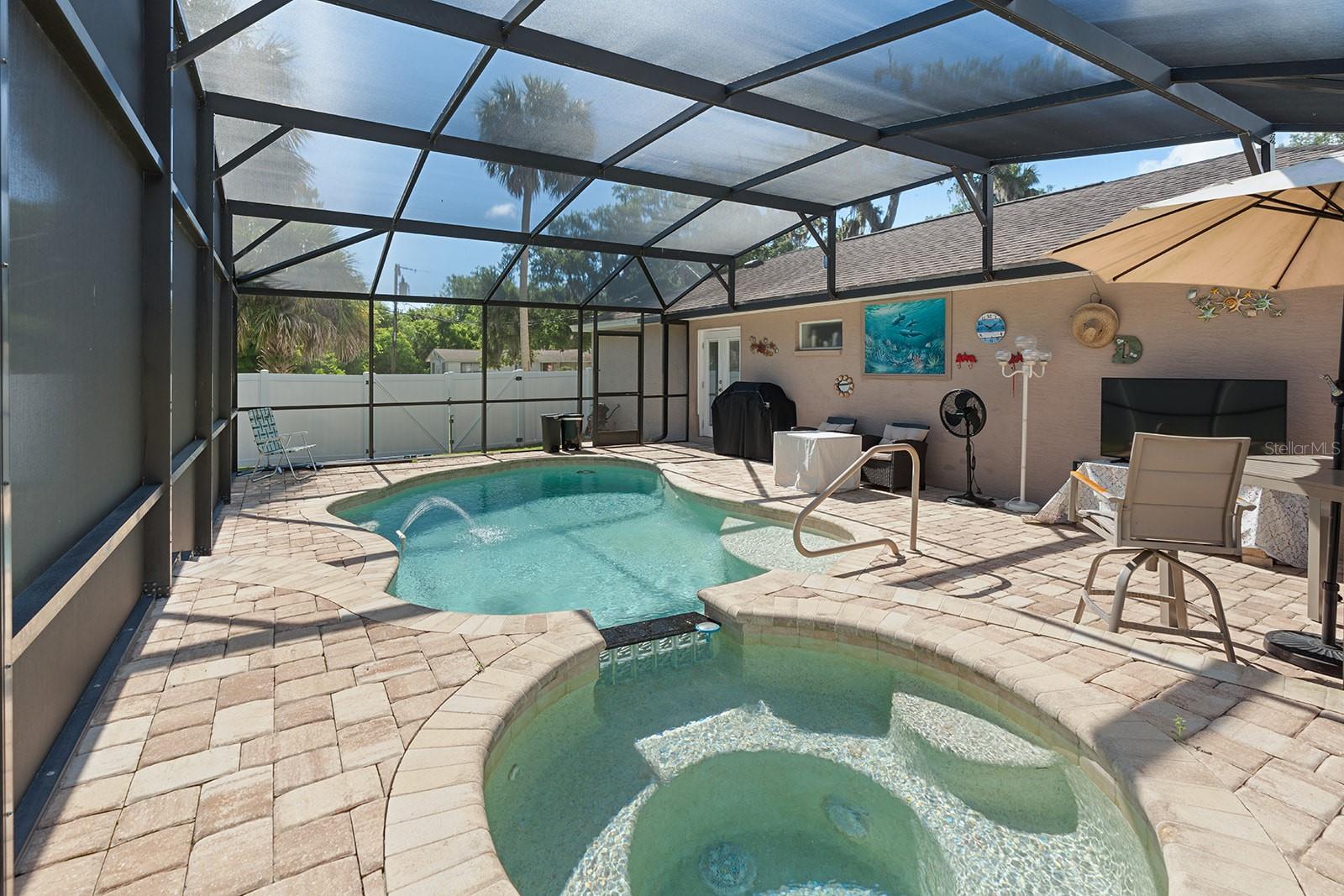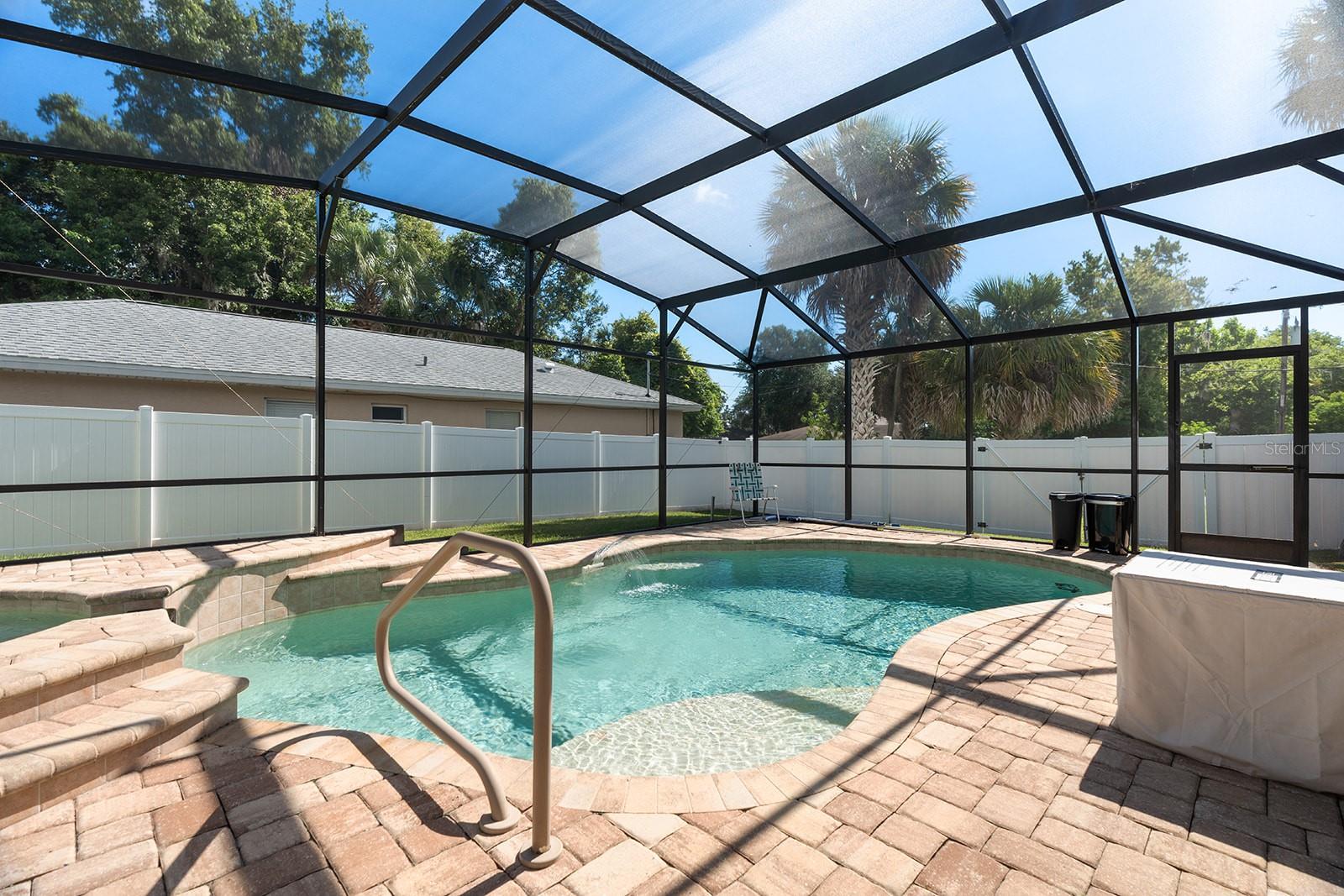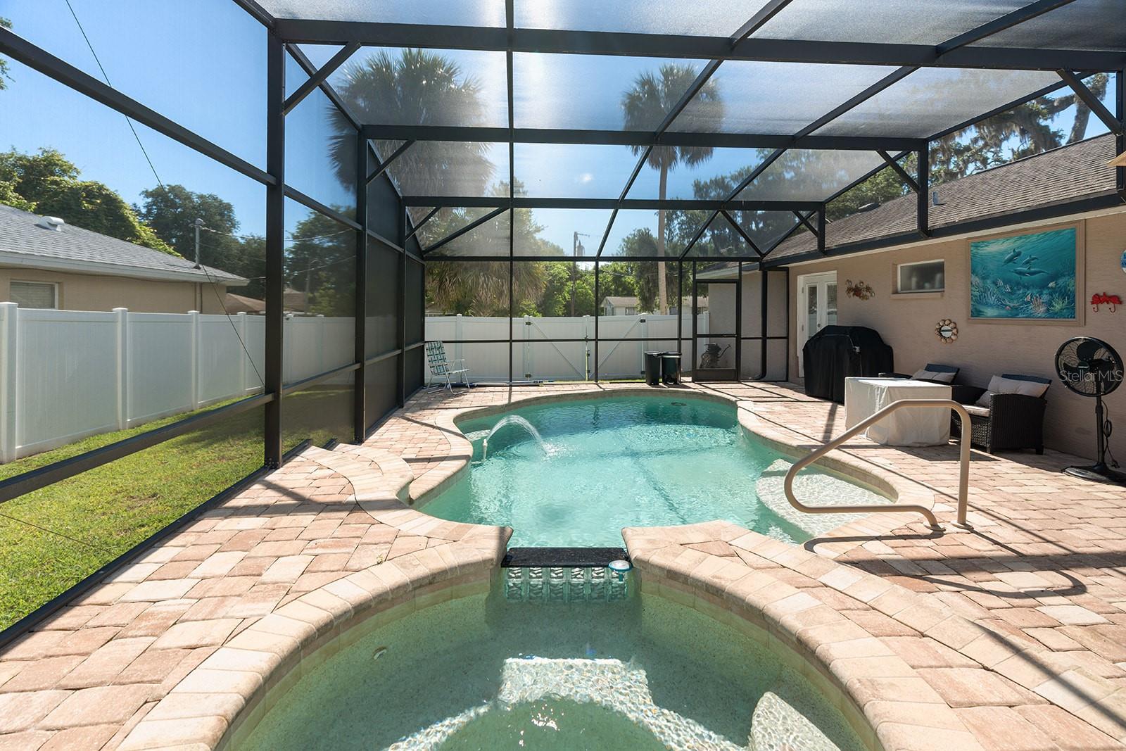 Three bedroom POOL home in central Port Orange! Just a short drive to New Smyrna & Daytona beaches, this three bedroom, two bath home is in close proximity to shopping, grocery, and entertainment while still providing the privacy of a small residential neighborhood. The pool pump system was replaced in May of 2024, along with the pool screen enclosure in 2023. Situated on a double lot with privacy fencing all the way around, brick paver pool deck, heated spa and ample space to entertain. Furnishings negotiable.