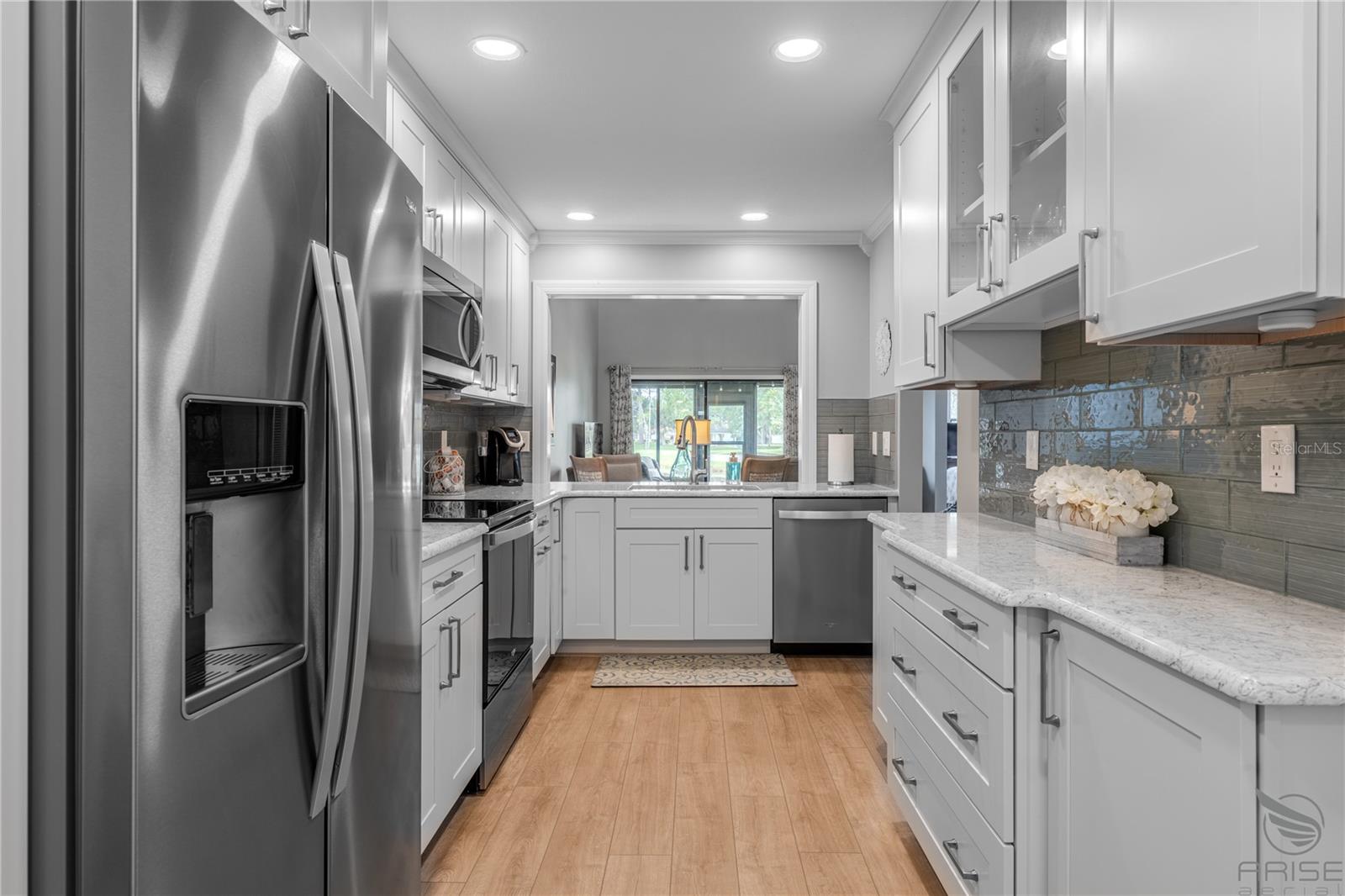 Welcome to the World class aviation community of Spruce Creek Fly In! NO FLOODING ISSUES to worry about for this condo as peace of mind is everything when purchasing real estate! This townhome style condo located on the Par 3, 13th golf hole sets an amazing backdrop of views from the first and second floor that just can not be appreciated from many other units! Remodeled with great attention to detail, consisting of 3 bedrooms and 2 bathrooms. This condo has recently gone under a full interior remodel, centered around a well appointed kitchen with a cozy breakfast nook that naturally transitions into the living area where you will find volume ceilings opening to the second story. Before heading upstairs there are two bedrooms and a full bathroom downstairs; one with a very serene view of the golf course. What was once a screened in patio has been transitioned into a Florida room by way of the double pane windows that capture the view! On the second story is a flex room/den that can be used for a variety of uses, currently an office/living room. The primary bedroom has another wonderful view of hole #13, a large walk-in closet, beautifully remodeled bathroom with a large walk-in shower. Most units lack garage space but this home boasts a spacious two car garage with high end epoxy coated flooring. All of this in Spruce Creek Fly In Country Club boasting an array of amazing amenities for your entertainment. A public restaurant is located at the airport where you can enjoy the planes taking flight along with a pool, tennis, pickleball courts , bocce ball, and as mentioned, golf that is as far as your personal golf cart. Fairway Chase If a golfer's paradise with a private airport appeals to you this is a must see at an affordable price.