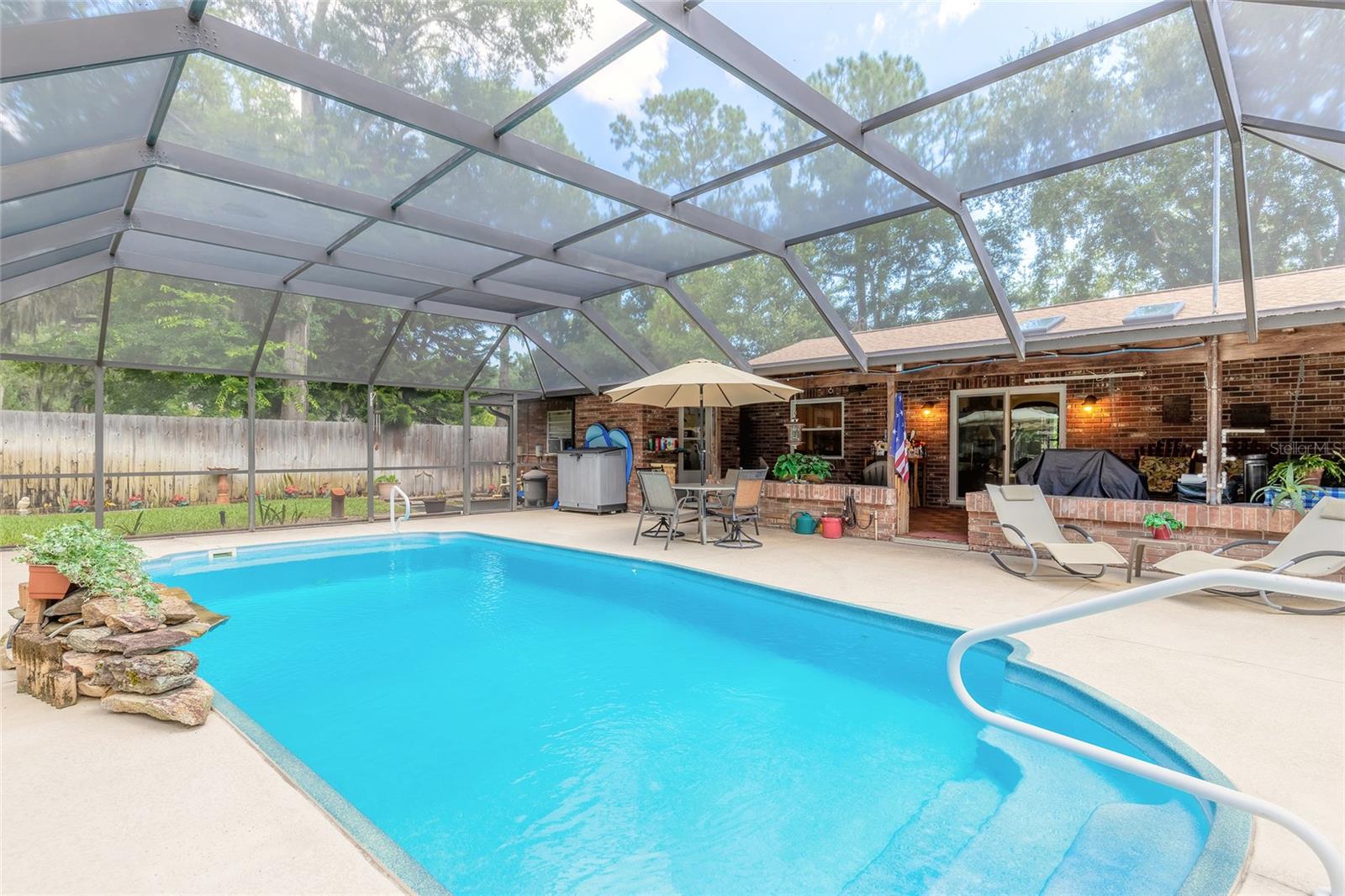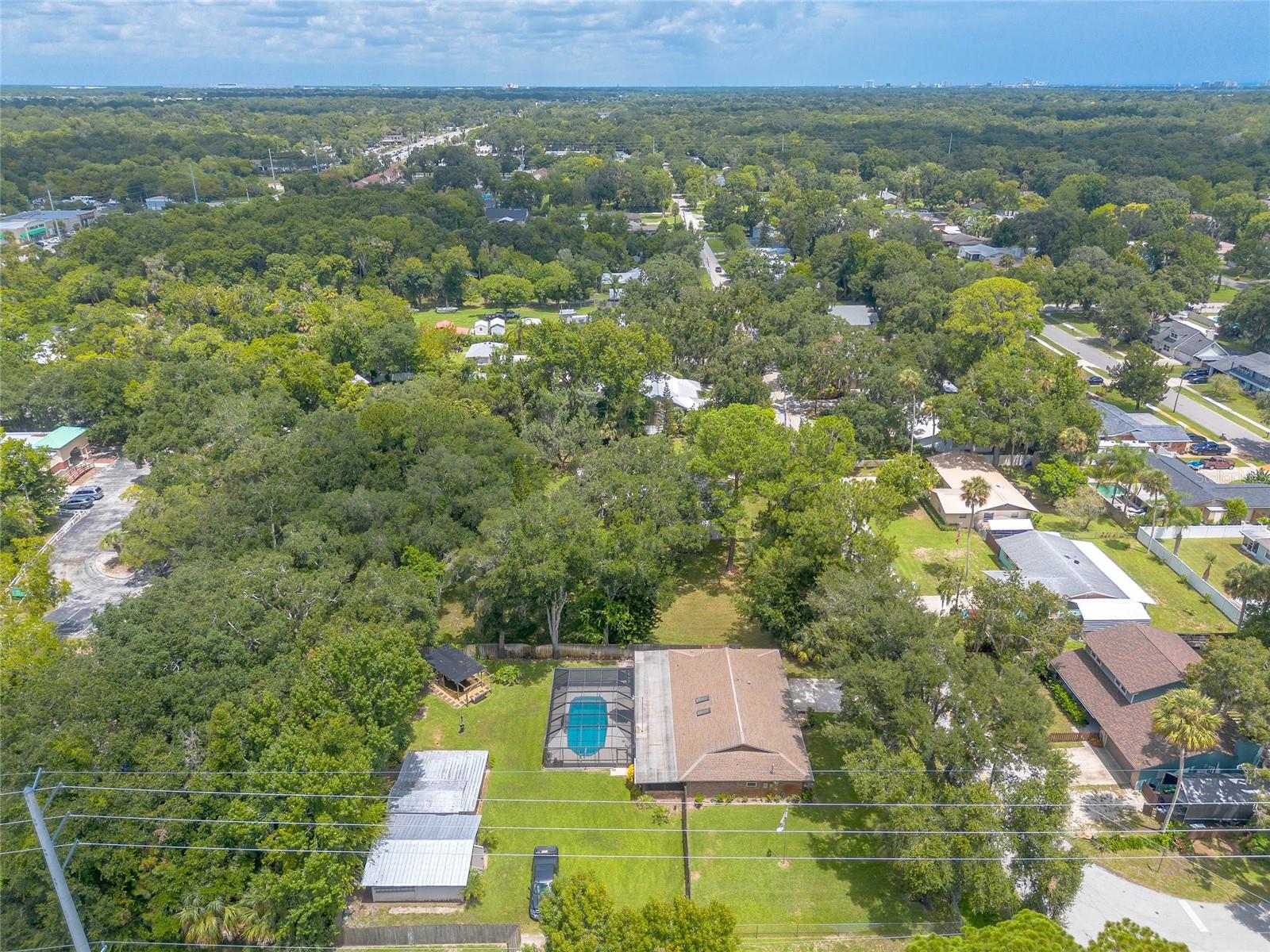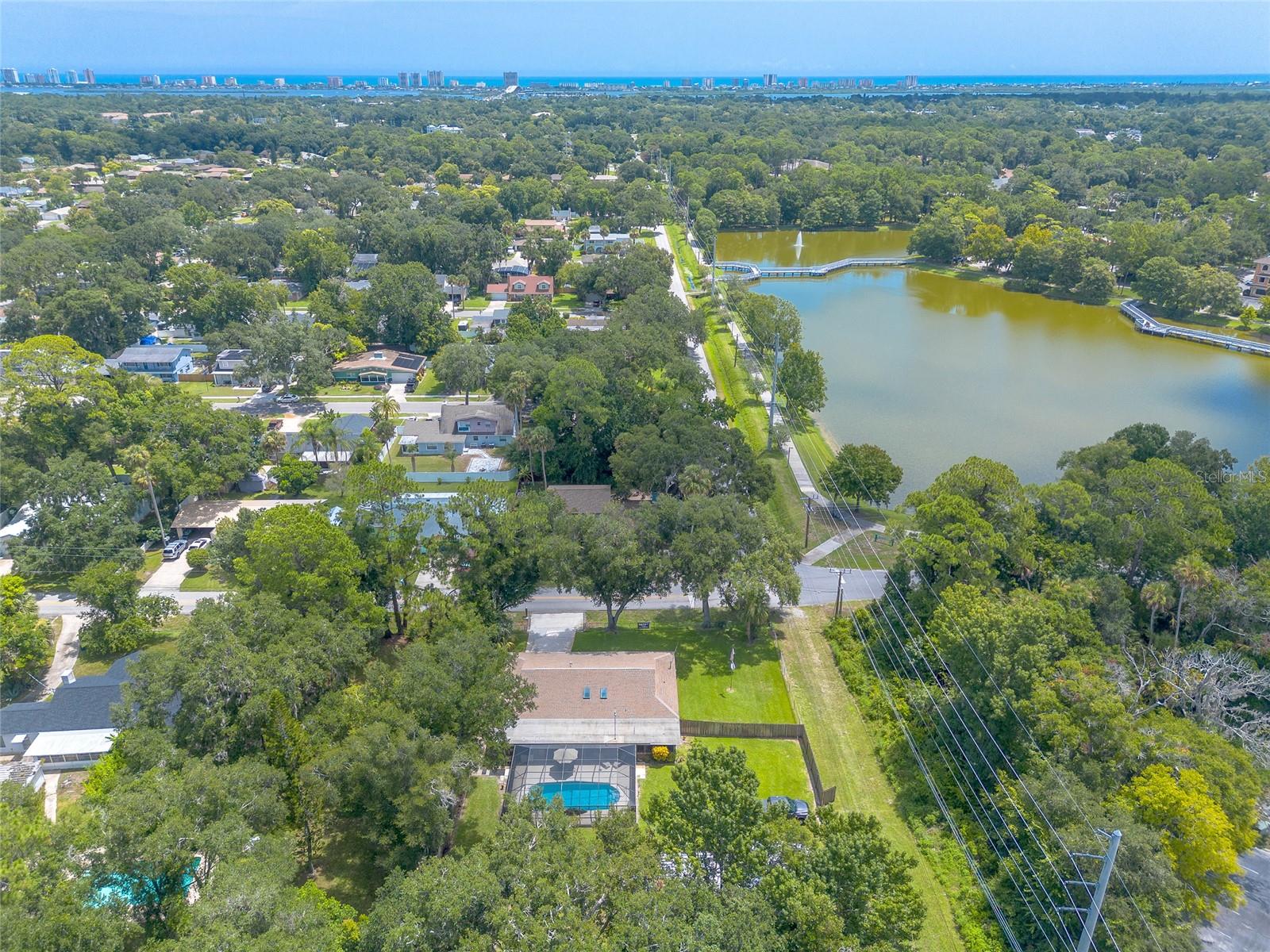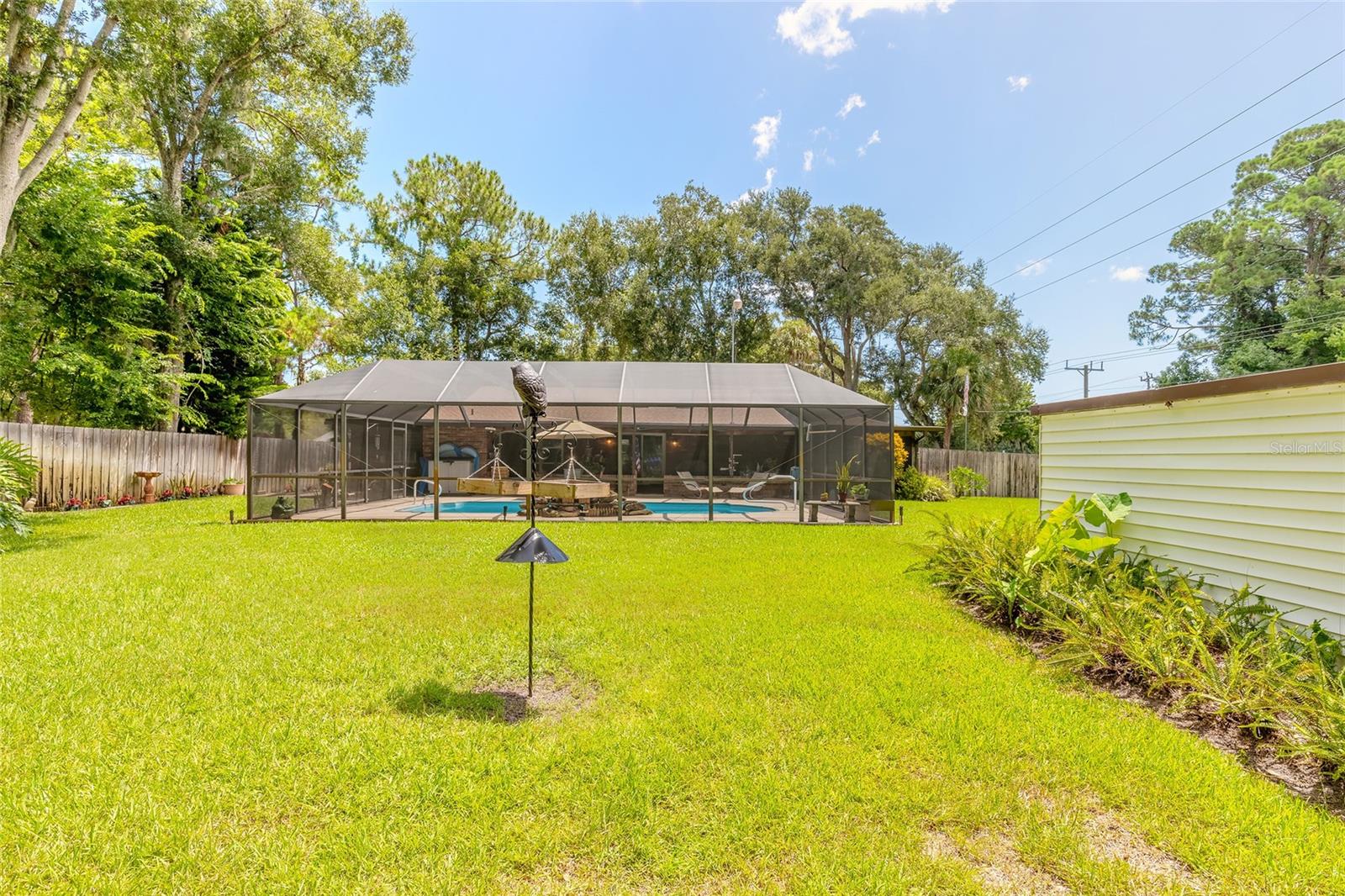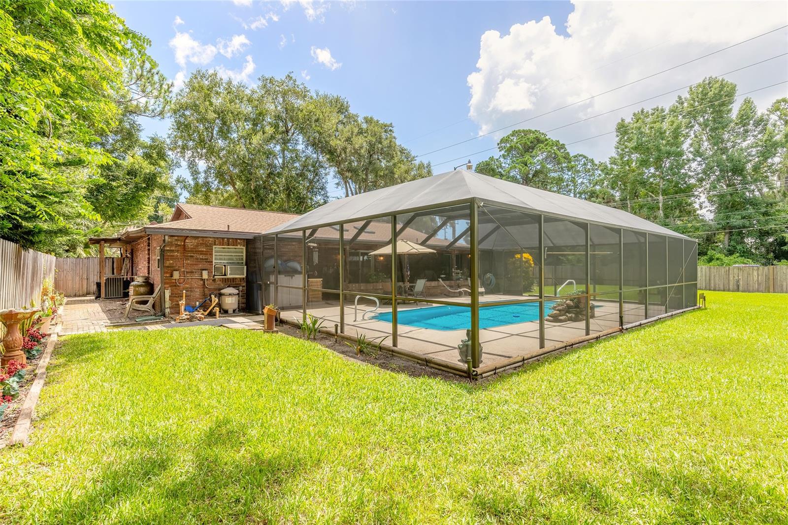 Located in the heart of Port Orange, this property is a hidden gem that offers an abundance of features and amenities. Situated on a spacious 0.4-acre lot, you'll enjoy the luxury of a totally privacy-fenced rear yard, providing you with a tranquil oasis to relax and unwind. This home boasts not one, but three outbuildings, including a workshop, shed, and carport, offering endless possibilities for storage and hobbies. As you explore the property, you'll discover a charming pond with fish and a soothing waterfall, perfect for enjoying the peaceful sound of nature while sitting on the swing. Enjoy the screened enclosed pool, allowing you to take a refreshing dip. Adjacent to the pool is a covered lanai area, complete with a hot tub. For those who work from home or desire a dedicated space for creativity, there is an air conditioned office conveniently located off the lanai. Step inside and you'll be greeted by the formal great room which features vaulted ceilings with skylights, providing an airy and bright atmosphere. The kitchen is thoughtfully designed, ensuring easy access to all your culinary essentials and the dining area is ideal for entertaining guests or enjoying family meals. The primary bedroom with en-suite bath and walk-in closet offers convenient access to the hot tub and pool through sliding glass doors, creating a private retreat for relaxation. Additionally, one of the bedrooms has been set up as an office/craft room, offering ample space to showcase your handiwork or pursue your creative endeavors. Conveniently located just across the street from Memorial Park, you'll have the opportunity to enjoy morning strolls and immerse yourself in the beauty of the surroundings.