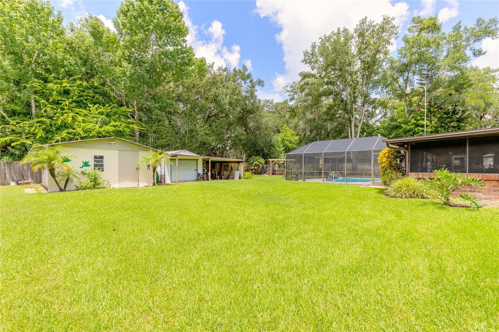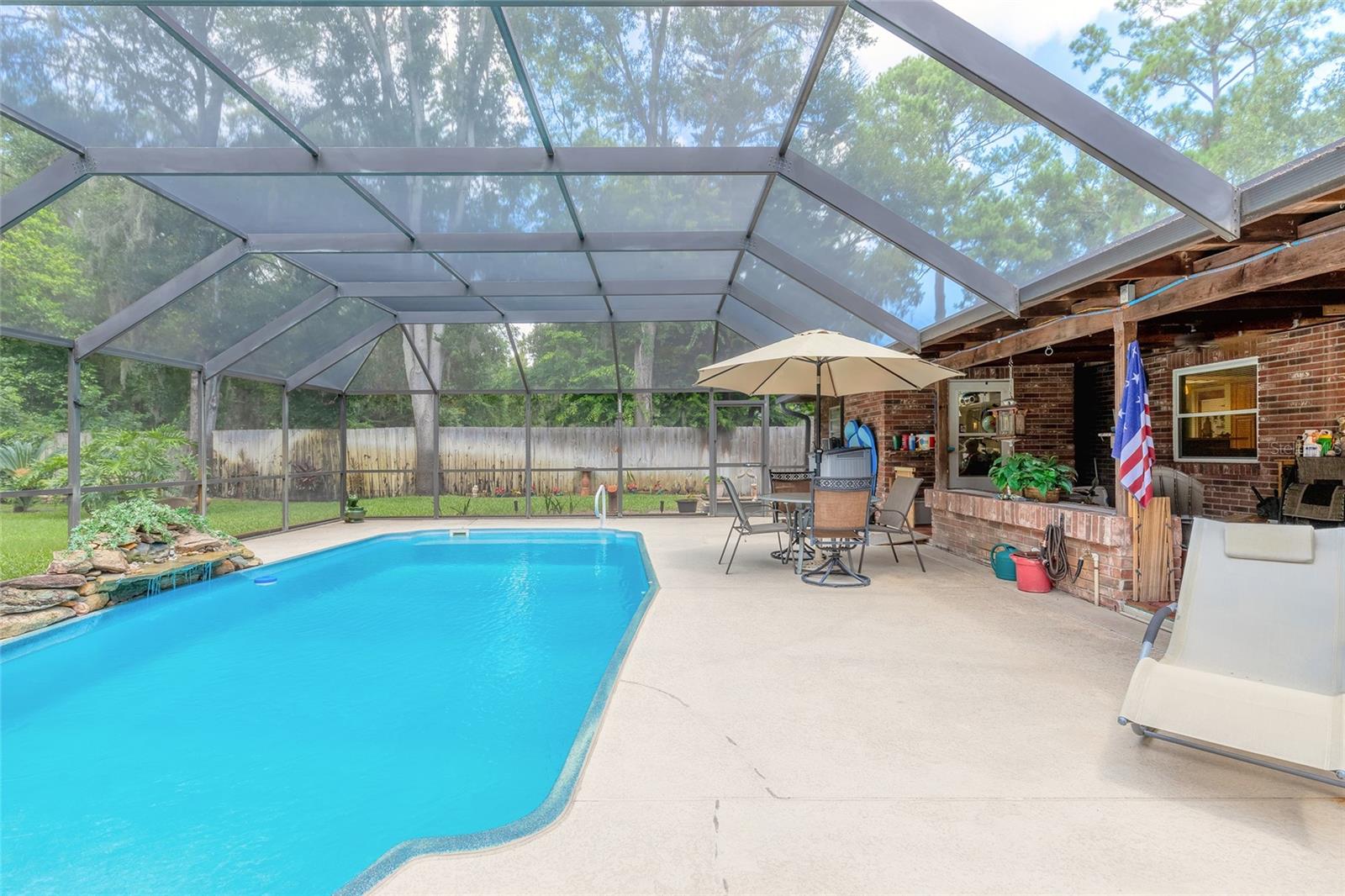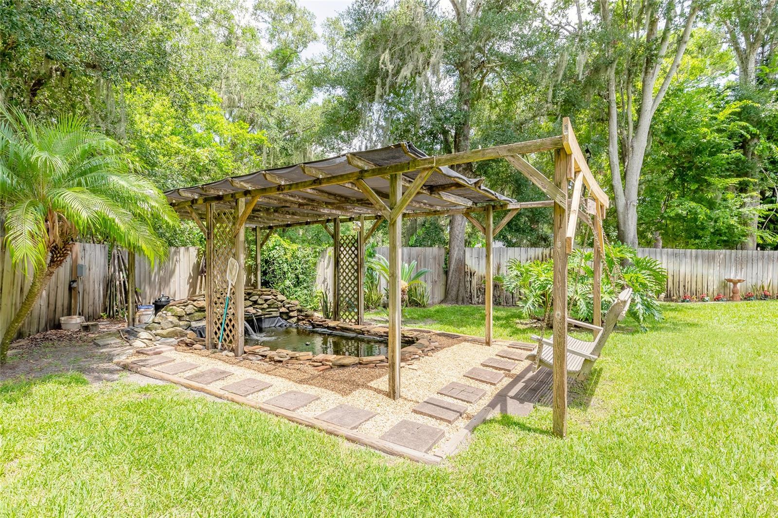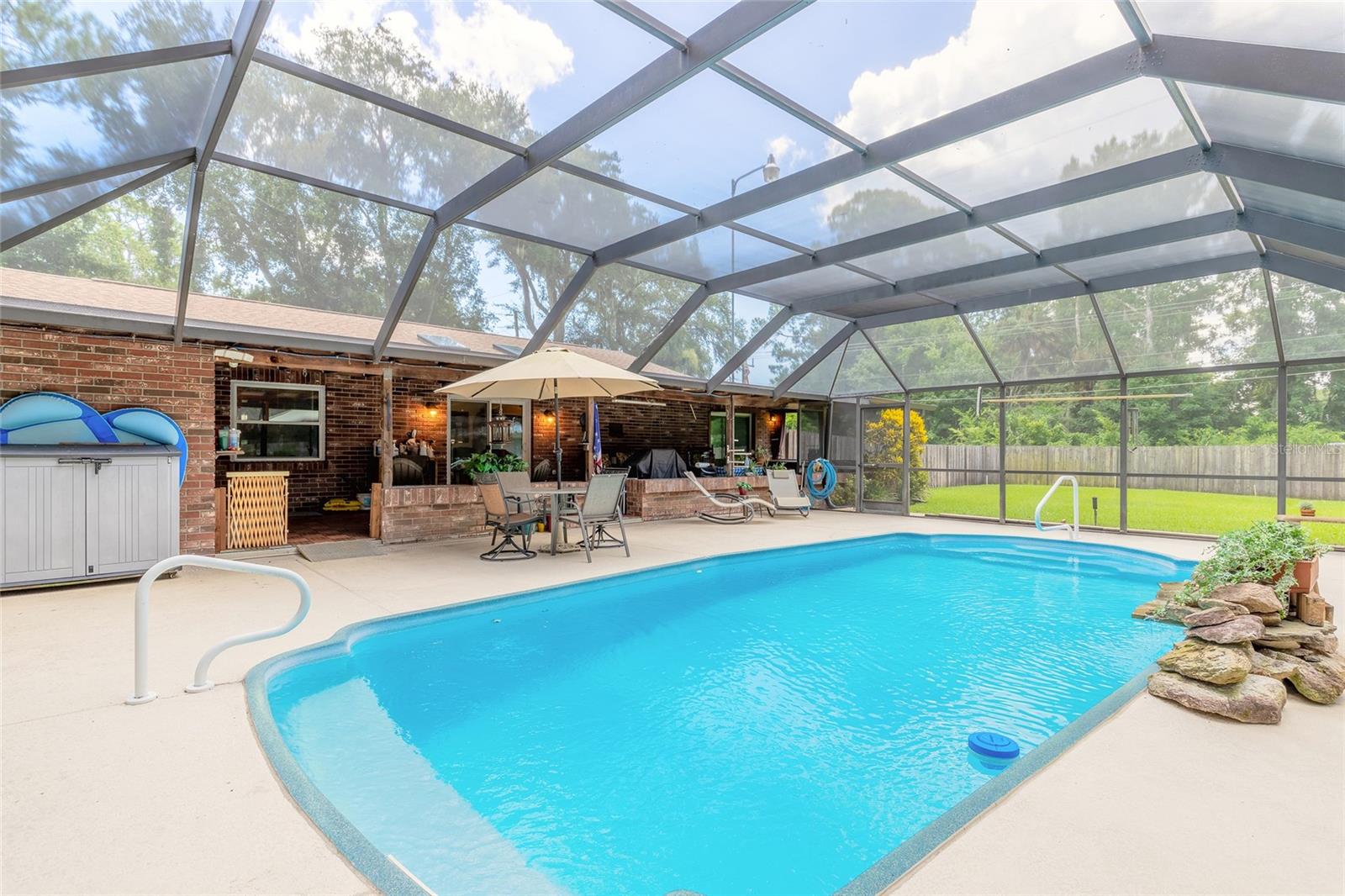 Located in the heart of Port Orange, this property is a hidden gem that offers an abundance of features and amenities. Situated on a spacious 0.4-acre lot, you'll enjoy the luxury of a totally privacy-fenced rear yard, providing you with a tranquil oasis to relax and unwind. This home boasts not one, but three outbuildings, including a workshop, shed, and carport, offering endless possibilities for storage and hobbies. As you explore the property, you'll discover a charming pond with fish and a soothing waterfall, perfect for enjoying the peaceful sound of nature while sitting on the swing. Enjoy the screened enclosed pool, allowing you to take a refreshing dip. Adjacent to the pool is a covered lanai area, complete with a hot tub. For those who work from home or desire a dedicated space for creativity, there is an air conditioned office conveniently located off the lanai. Step inside and you'll be greeted by the formal great room which features vaulted ceilings with skylights, providing an airy and bright atmosphere. The kitchen is thoughtfully designed, ensuring easy access to all your culinary essentials and the dining area is ideal for entertaining guests or enjoying family meals. The primary bedroom with en-suite bath and walk-in closet offers convenient access to the hot tub and pool through sliding glass doors, creating a private retreat for relaxation. Additionally, one of the bedrooms has been set up as an office/craft room, offering ample space to showcase your handiwork or pursue your creative endeavors. Conveniently located just across the street from Memorial Park, you'll have the opportunity to enjoy morning strolls and immerse yourself in the beauty of the surroundings.