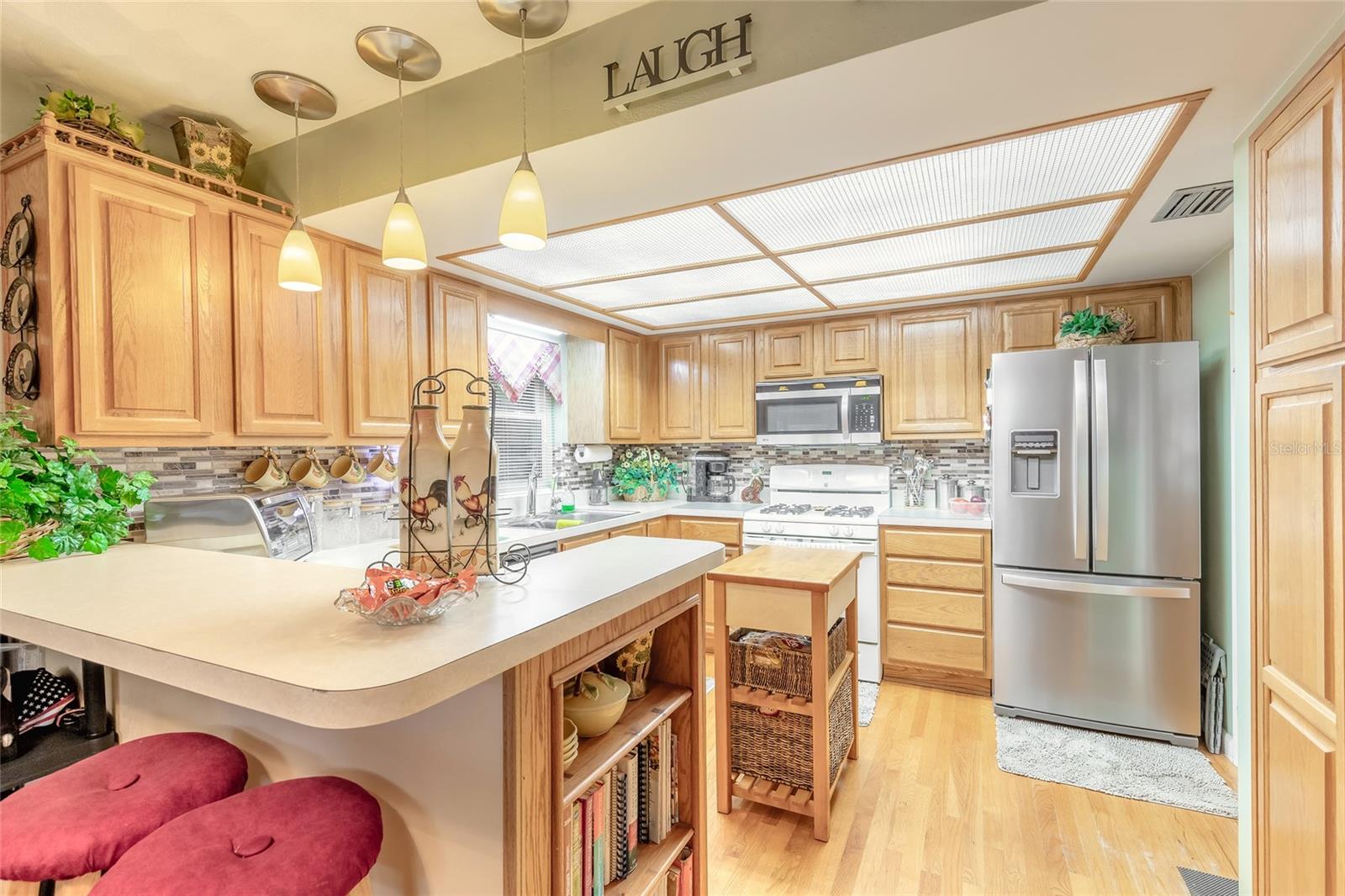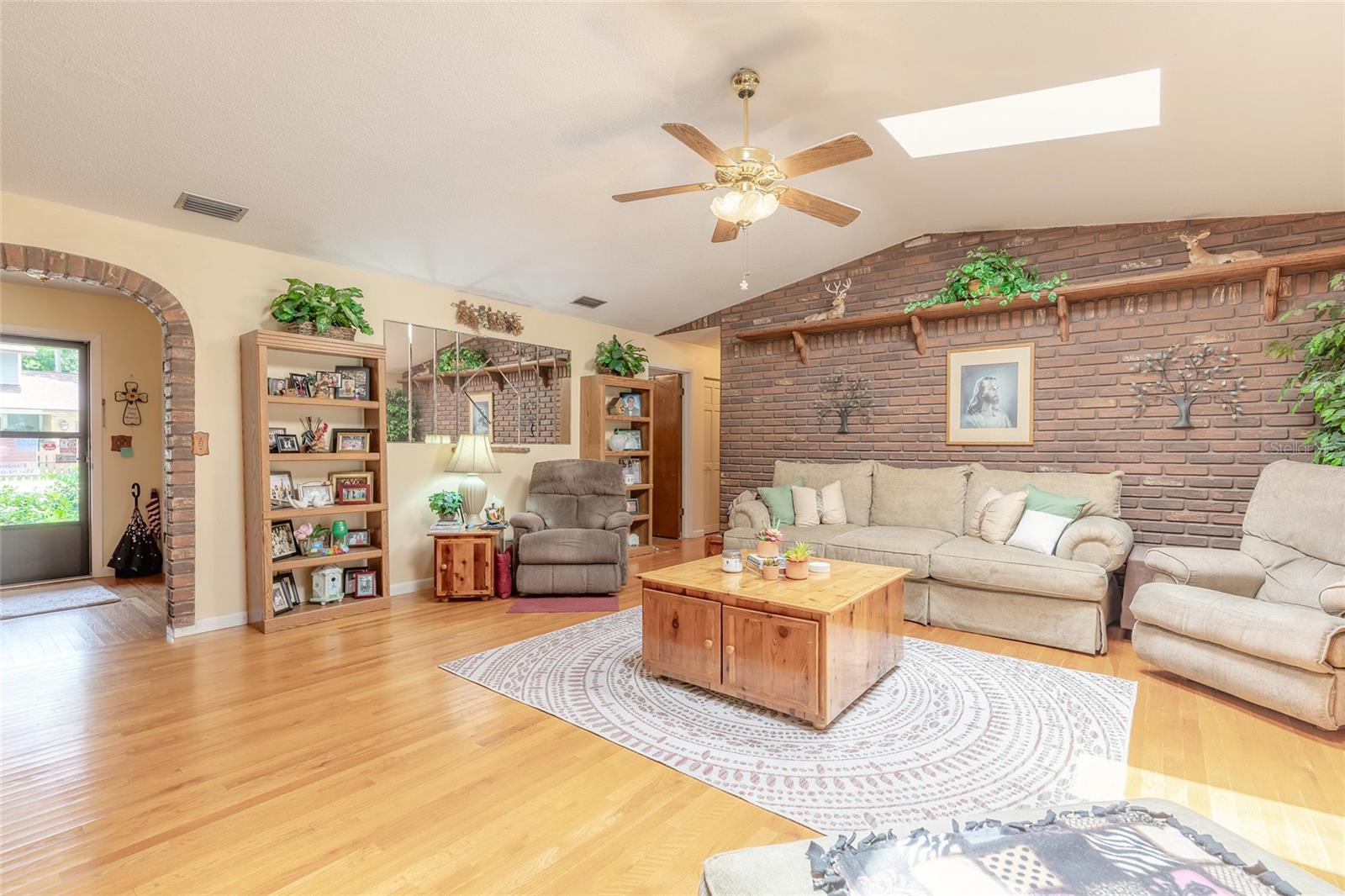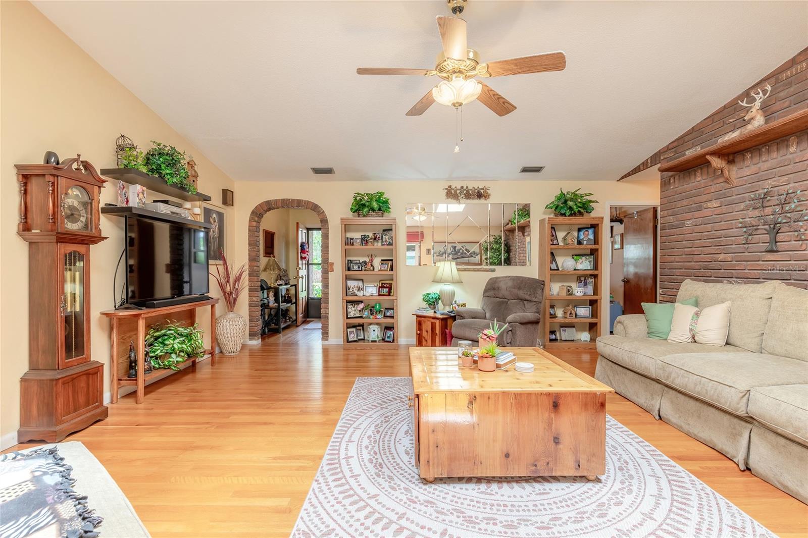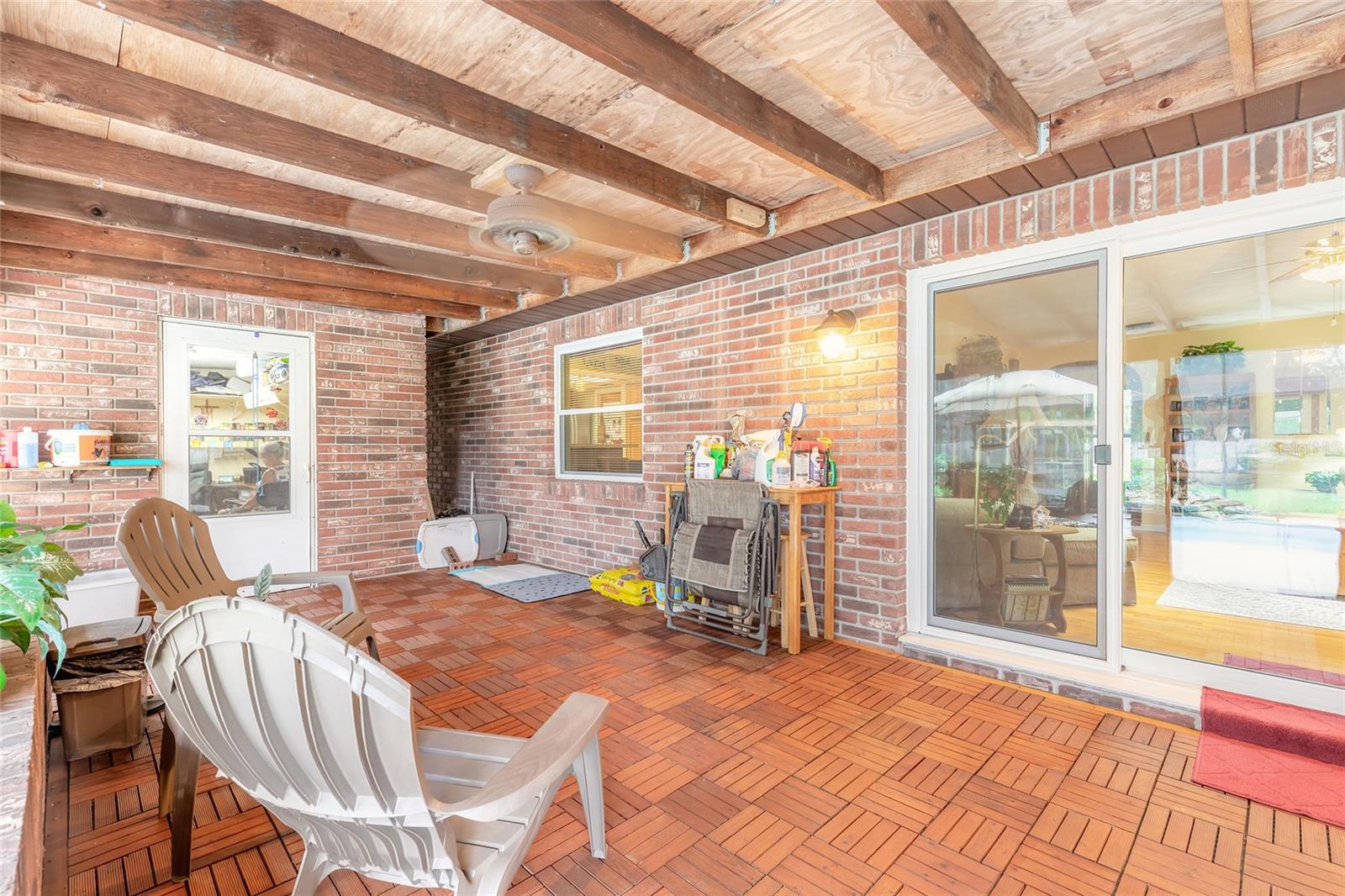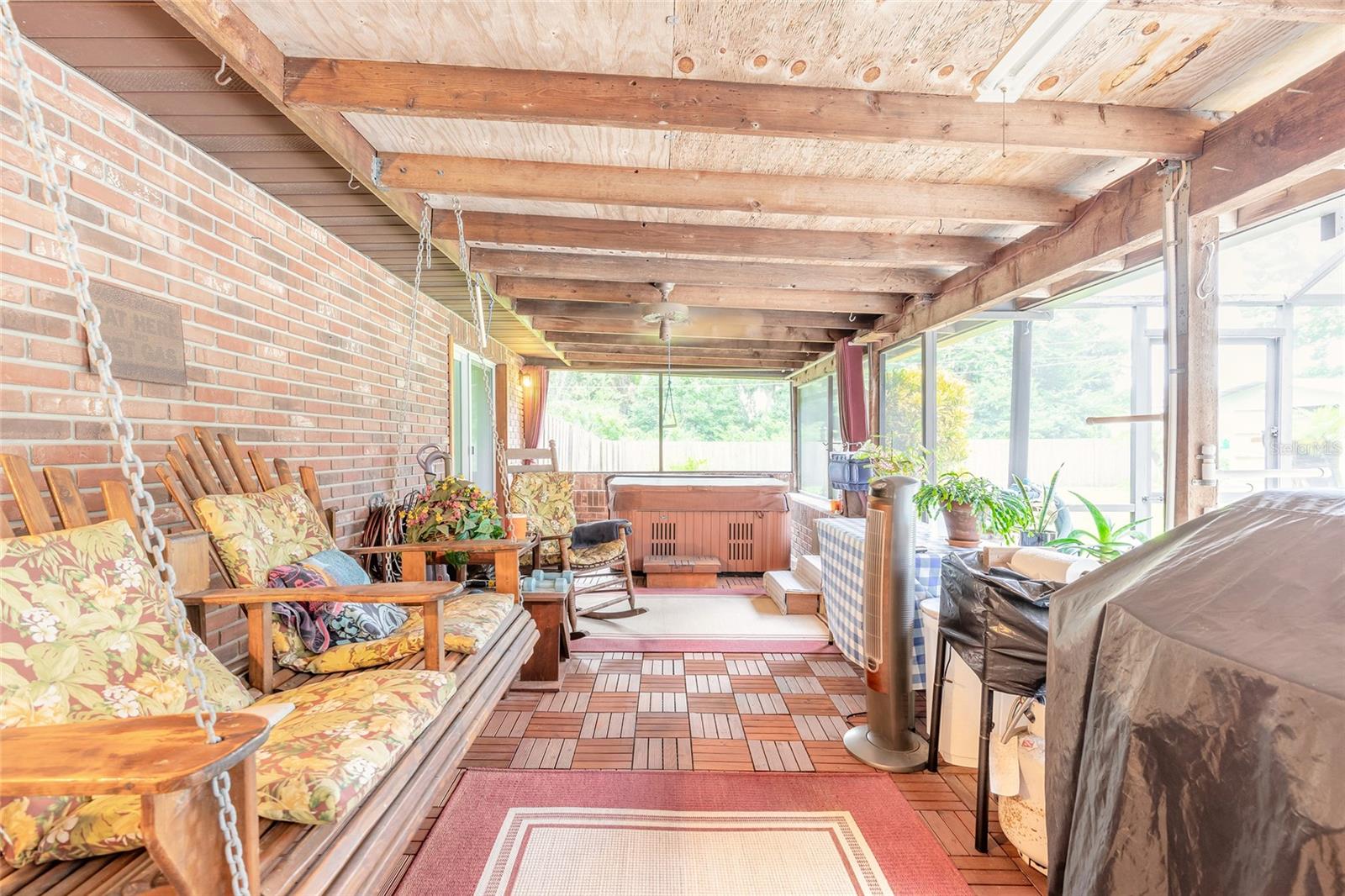 Located in the heart of Port Orange, this property is a hidden gem that offers an abundance of features and amenities. Situated on a spacious 0.4-acre lot, you'll enjoy the luxury of a totally privacy-fenced rear yard, providing you with a tranquil oasis to relax and unwind. This home boasts not one, but three outbuildings, including a workshop, shed, and carport, offering endless possibilities for storage and hobbies. As you explore the property, you'll discover a charming pond with fish and a soothing waterfall, perfect for enjoying the peaceful sound of nature while sitting on the swing. Enjoy the screened enclosed pool, allowing you to take a refreshing dip. Adjacent to the pool is a covered lanai area, complete with a hot tub. For those who work from home or desire a dedicated space for creativity, there is an air conditioned office conveniently located off the lanai. Step inside and you'll be greeted by the formal great room which features vaulted ceilings with skylights, providing an airy and bright atmosphere. The kitchen is thoughtfully designed, ensuring easy access to all your culinary essentials and the dining area is ideal for entertaining guests or enjoying family meals. The primary bedroom with en-suite bath and walk-in closet offers convenient access to the hot tub and pool through sliding glass doors, creating a private retreat for relaxation. Additionally, one of the bedrooms has been set up as an office/craft room, offering ample space to showcase your handiwork or pursue your creative endeavors. Conveniently located just across the street from Memorial Park, you'll have the opportunity to enjoy morning strolls and immerse yourself in the beauty of the surroundings.