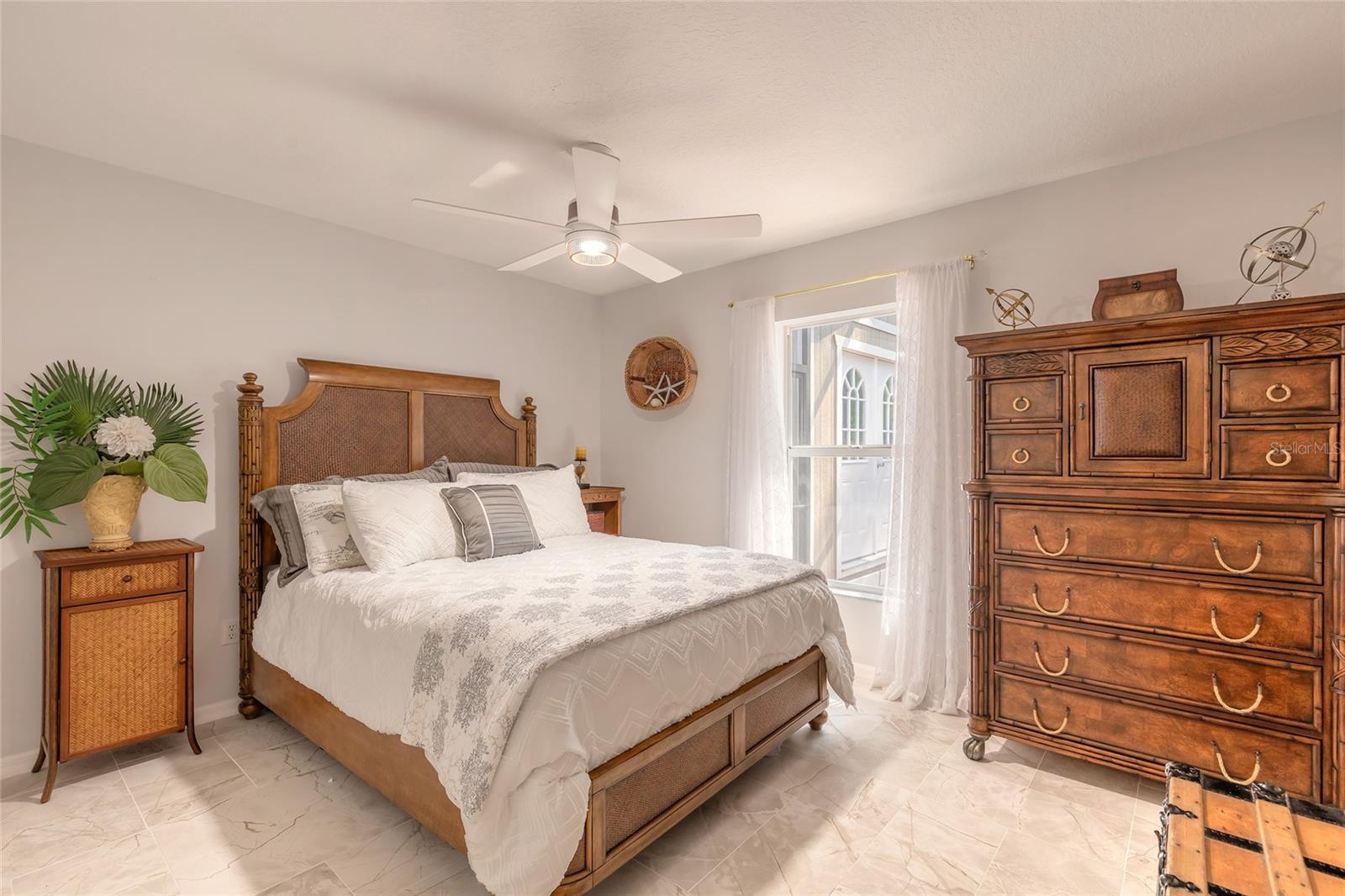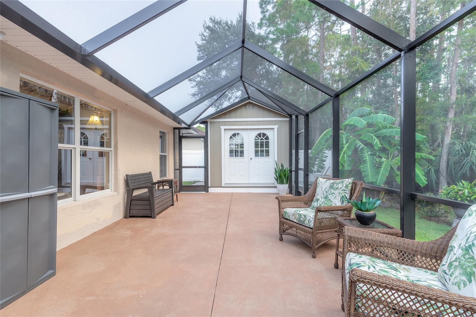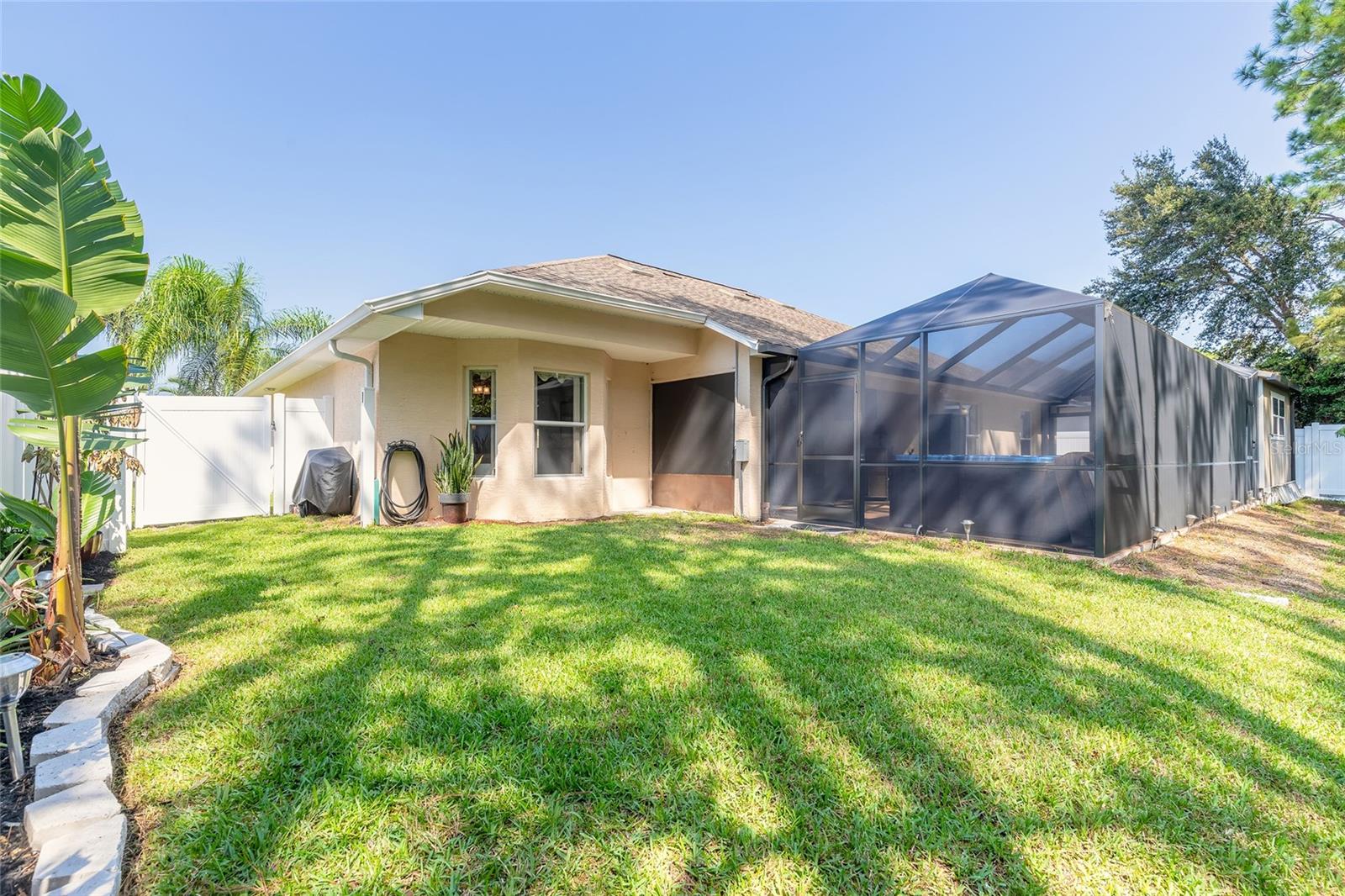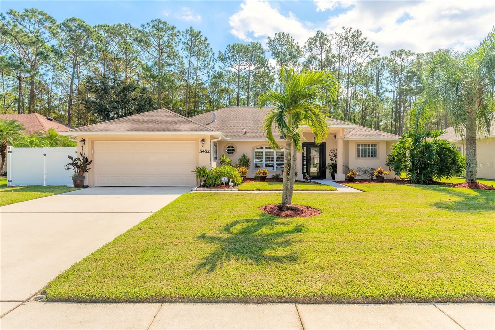 Charming, updated, and move-in ready—welcome to 5452 St Regis Way, nestled in the peaceful cul-de-sac of The Vineyards, one of Port Orange’s most cherished communities. This well-maintained 3-bedroom, 2-bathroom home offers timeless comfort with thoughtful upgrades, ideal for those who appreciate quality craftsmanship and a low-maintenance lifestyle. A brand-new, 30-year shingle roof, new natural gas water heater, and updated vinyl fencing provide peace of mind and long-term value. Inside, you’ll find granite kitchen counters, updated bathroom vanities and toilets, and stylish flooring throughout. Enjoy tranquil mornings or host afternoon gatherings from your extended screened lanai (14x26) featuring no-gnat screening—perfectly positioned with a private backyard that backs to a natural preserve. The home also includes a pull-down garage screen for airflow and comfort. A detached 10x14 backyard cottage offers exciting potential as a workshop, hobby space, office, or even a guest suite. It’s ready for finishing touches and ideal for someone who enjoys DIY projects or envisions a creative reprieve. The heart of the home is complemented by stainless steel kitchen and laundry appliances (washer/dryer convey), plantation shutters, quality ceiling fans throughout, and a spacious laundry room with utility sink. The primary suite boasts dual walk-in closets, separate vanities, a large walk-in shower, private water closet, and a jetted Jacuzzi tub—a spa-like space perfect for unwinding. Conveniently located just minutes from shopping, dining, grocery stores, and easy access to I-95 and major roadways. Whether you're looking to downsize smartly or simply want a home that doesn't have a huge to-do list—this property checks all the boxes. Easy to show—schedule your private tour today and see why this lovely home should be at the top of your list. All information is intended to be accurate, however not guaranteed.