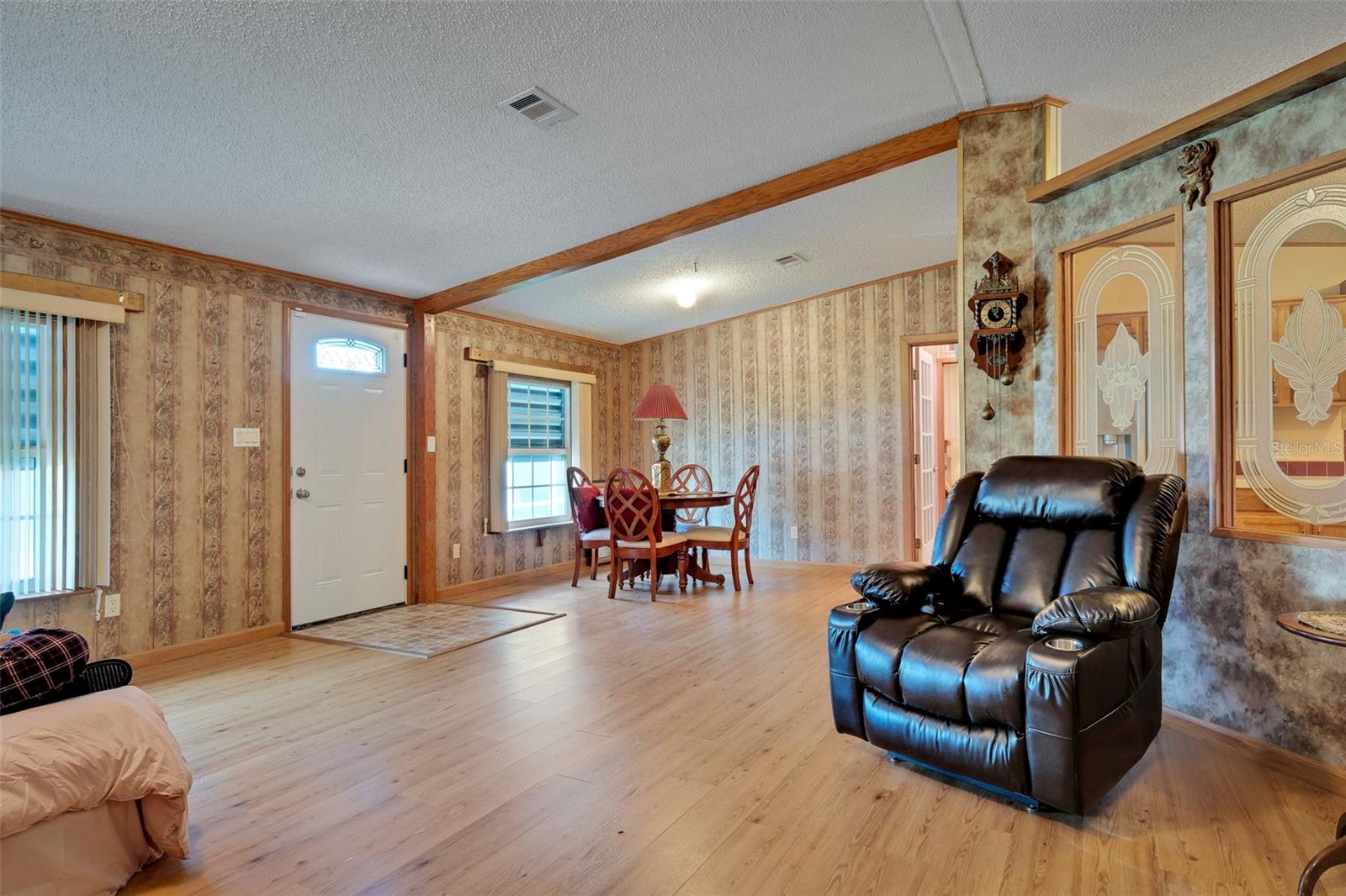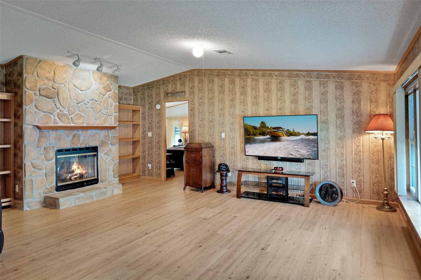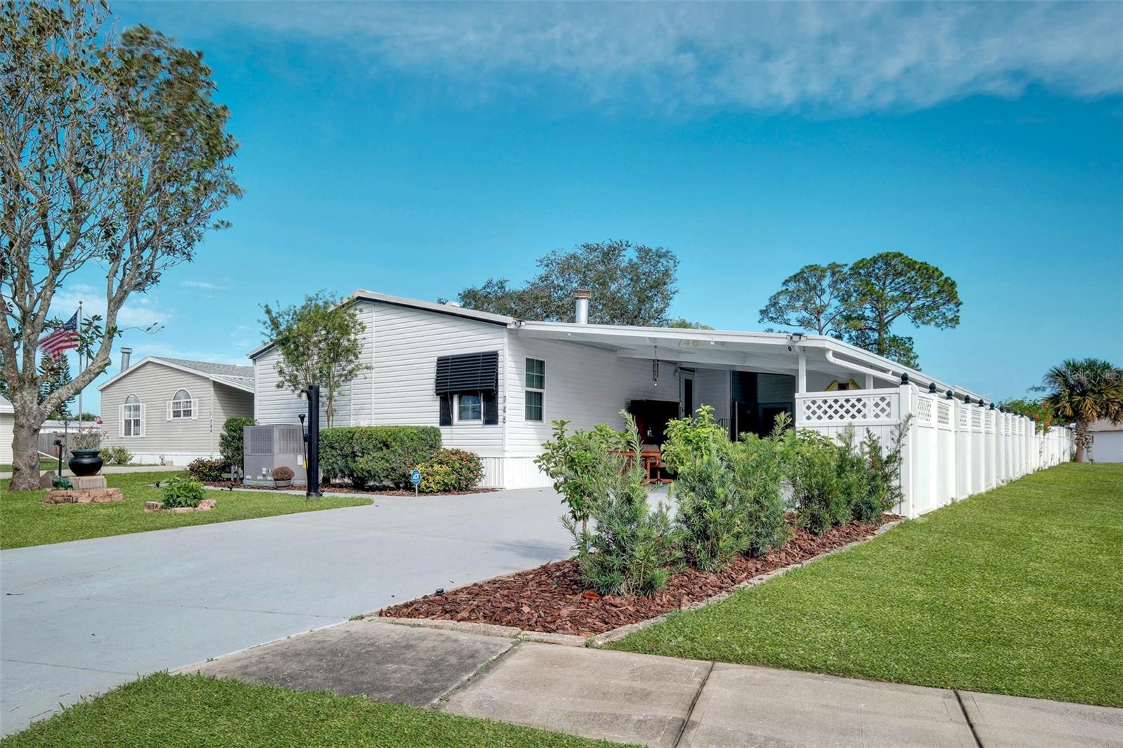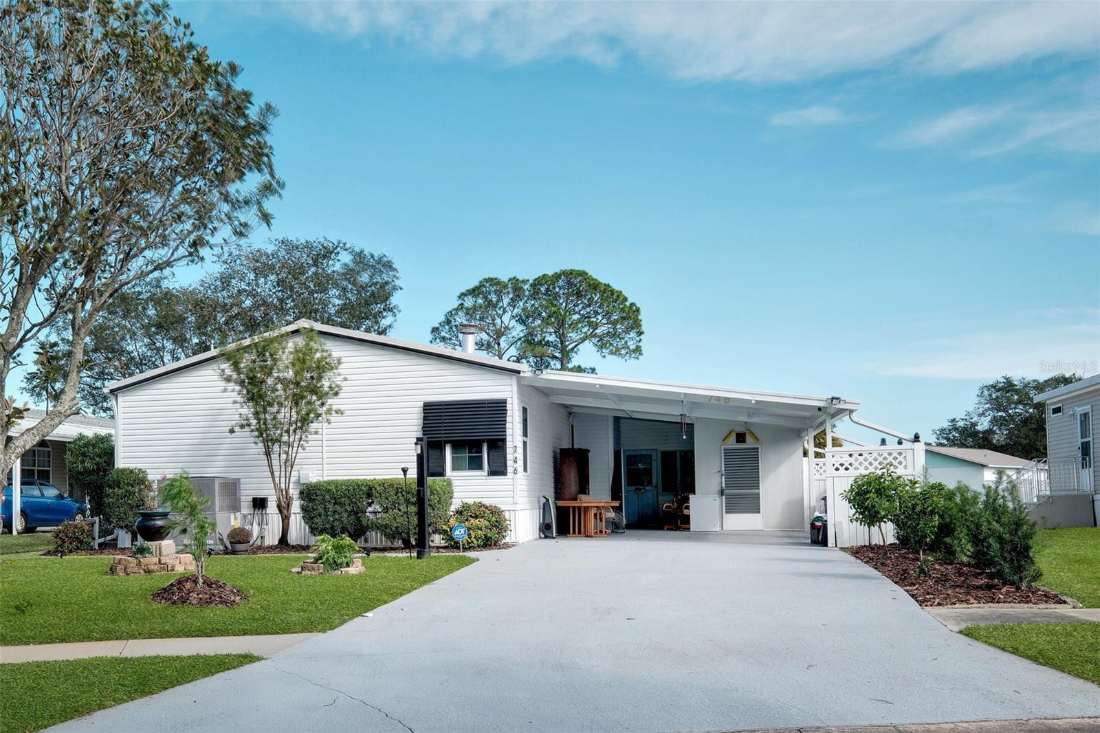 Looking for a great pool home? If longing to spend time floating your cares away in sunny Florida has been your dream, then let's make it your reality. Offered for the first time in twenty-four years, this meticulous 3-bedroom 2 bath home has just arrived on the market. Located in the sought-after 55+ community of Laurelwood Estates of Port Orange, this large and inviting manufactured home is situated on its own lot with NO lot fees. Recent upgrades include HVAC (2024), Rainsoft Water Filtration System (2024) and Safe Step Walk in Tub and Shower Spa (2023) plus a new Bosch Refrigerator (2024) and Whirlpool Oven/Range (2024). Surrounded by a manicured landscape with mature plants, and a private backyard that contains a solar-heated inground swimming pool, the extra amenities found on this property and in the home are extensive. But let's start with the huge Florida room that greets you upon entry and looks out to the sparkling pool and paved pool deck. A true oasis. This room has been the family gathering place for years. With windows galore and easy access to the pool, what's not to love? As you enter the main house, you will find a modern warm and inviting kitchen with solid oak cabinets, newer appliances and an eat-in dining area. The large living room is graced by a beautiful electric fireplace on one side and a row of windows on the other. A formal dining area is offset, and a solid display cabinet runs its full width to display all your treasures. Hardwood flooring is throughout this fine home, including all the closets. With high ceilings and generous-sized bedrooms that have plenty of light and comfort, this is a wonderful example of what a thoughtfully designed home should look and feel like. The master suite is huge as is its private bathroom and walk-in closet. The Laundry room is located directly off the kitchen for easy access. Storage is found everywhere inside and in two areas located on the carport. Adjacent to the pool is a standalone outbuilding that has been used to store all the lawncare and gardening tools. There is also a studio / workshop to the back of the carport, and it is fully equipped with electricity, lights and shelving. This wonderful home lacks nothing except for the next family to love it as much as the current ones have. Located close to the best beaches in the area, Daytona Beach International Airport, NASCAR, Embry Riddle, and a plethora of great restaurants, shopping and spas, this home has everything and more to make living in Florida everything you hoped it would be.