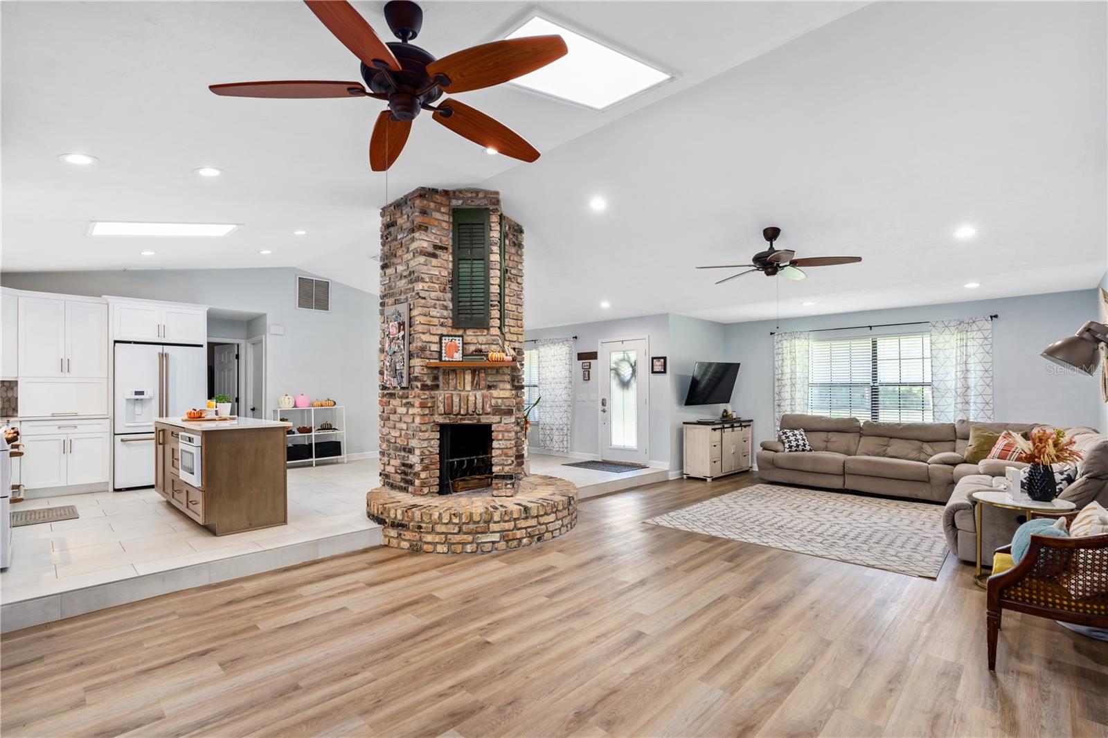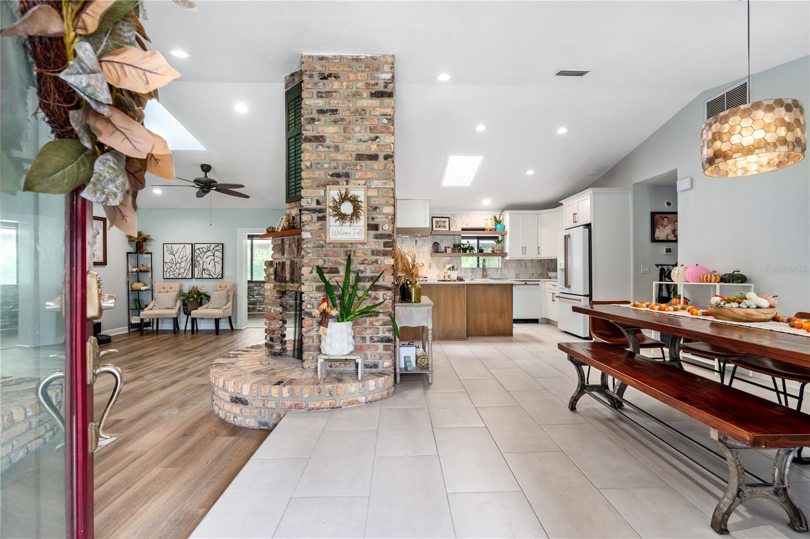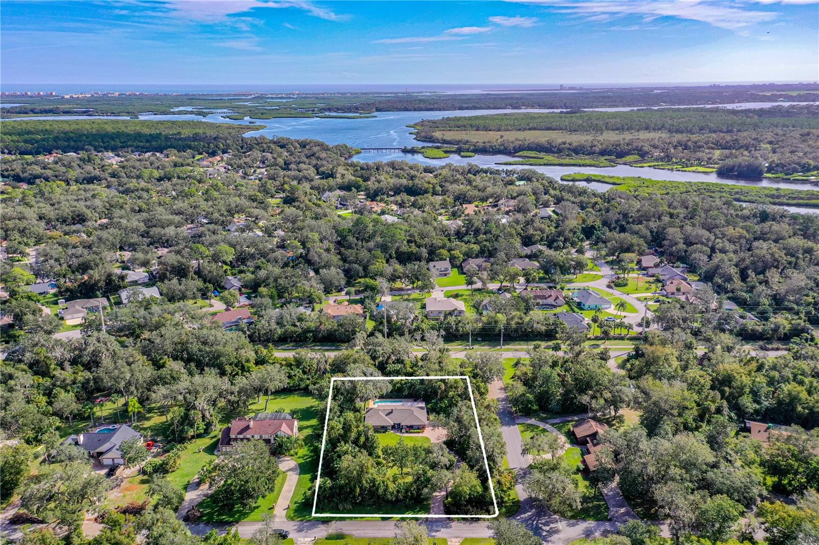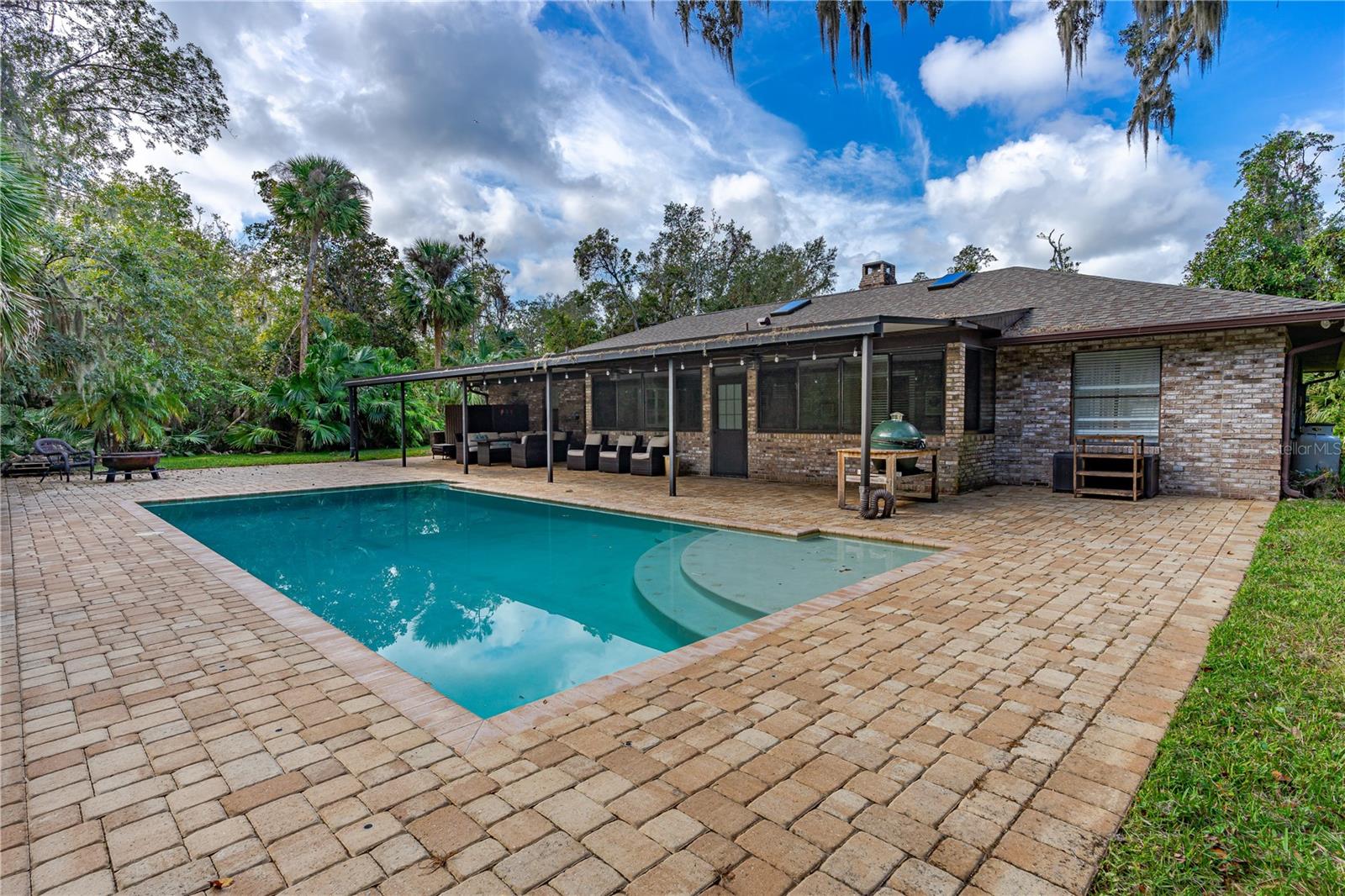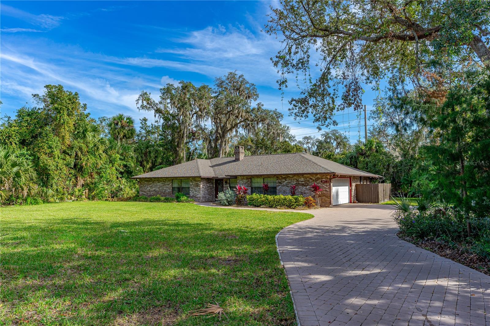 Private 1-Acre Brick Home in Beautiful Spruce Creek Estates - Experience privacy and comfort in this spacious, split-plan brick home. Step inside to find a welcoming atmosphere enhanced by a double wood-burning fireplace, perfectly placed to create cozy spaces for all to enjoy. Living area spacious enough for an additional dining area or a formal sitting room. Love to entertain, the dining room will be the perfect setting for your beautiful farm table or your family heirloom dining set. Chef's Kitchen is open featuring GE Café appliances, double oven and microwave drawer. A center island perfect for meal prep, plus a large pantry to keep everything organized. Floating Shelves in Kitchen giving you a great space to showcase your favorite décor. Primary suite is a peaceful retreat with a walk-in closet plus a second double closet. The updated en-suite bath offers a double vanity, and a large shower. Guest Suites are situated on the opposite side of the home for added privacy. Versatile Florida Room is expansive enough to serve as a gym, game room, or additional sitting area for family gatherings. Outside, enjoy the private, tree-lined backyard that adds privacy while you have your late-night swim in the salt water pool. Outside Shower. New paver driveway and walkway to front entrance. Cozy front porch, perfect setting for a couple rocking chairs to relax after a long day at work. Easy access to shopping, restaurants, and the beach, plus room for your recreational toys, this home truly offers the best of both worlds. This home did not flood with recent Hurricanes. NO FLOODING. Roof 2017; AC 2020; Water Heater 2019ish; Garage Door 2019All measurements and information deemed to be accurate but cannot be guaranteed, buyers and realtors are advised to verify.