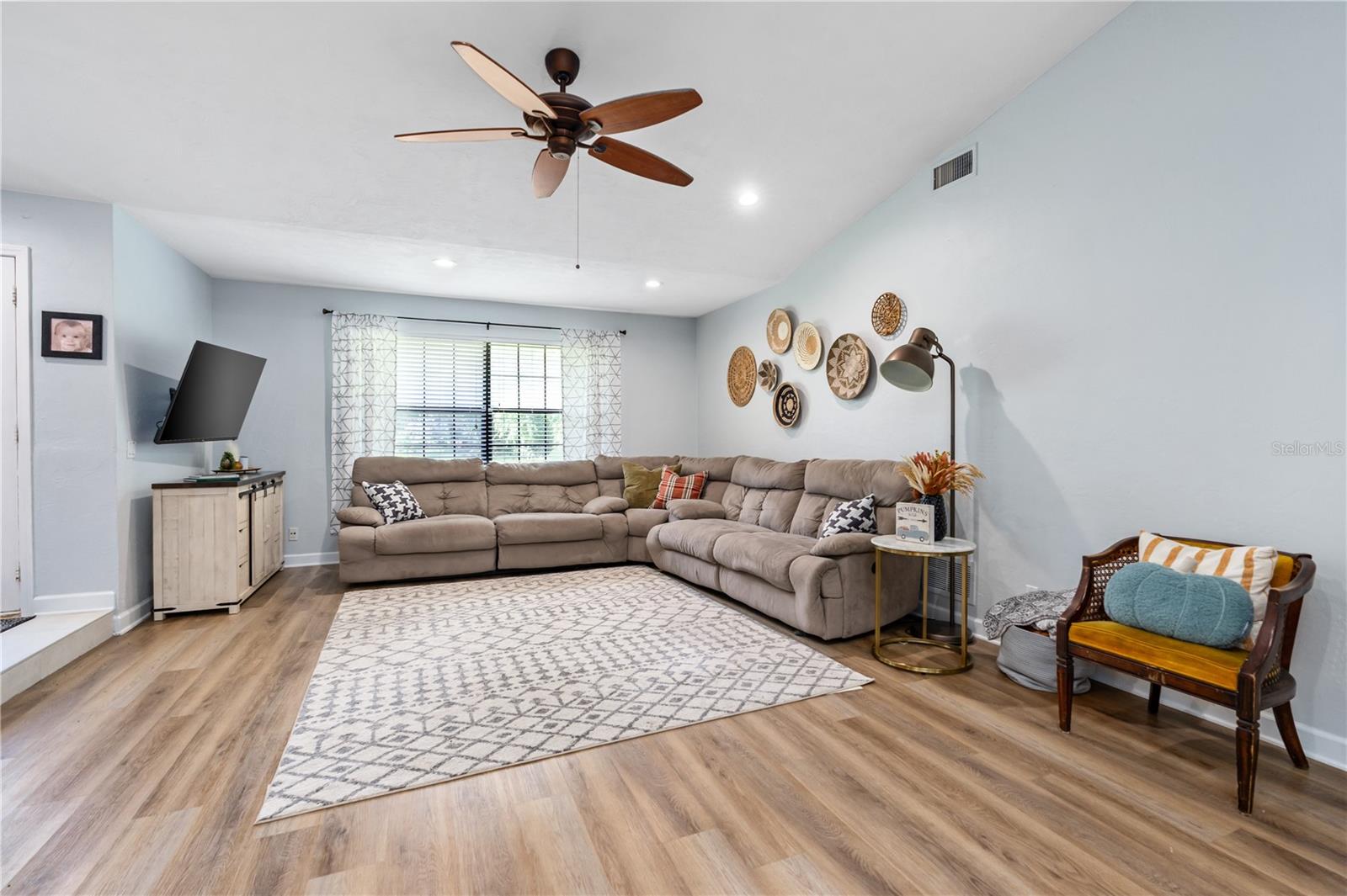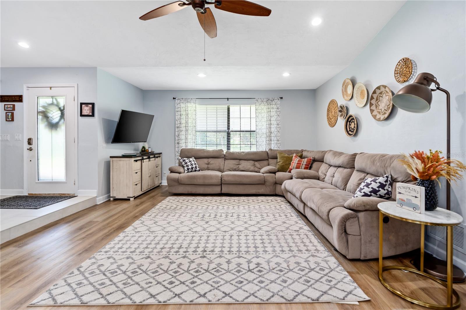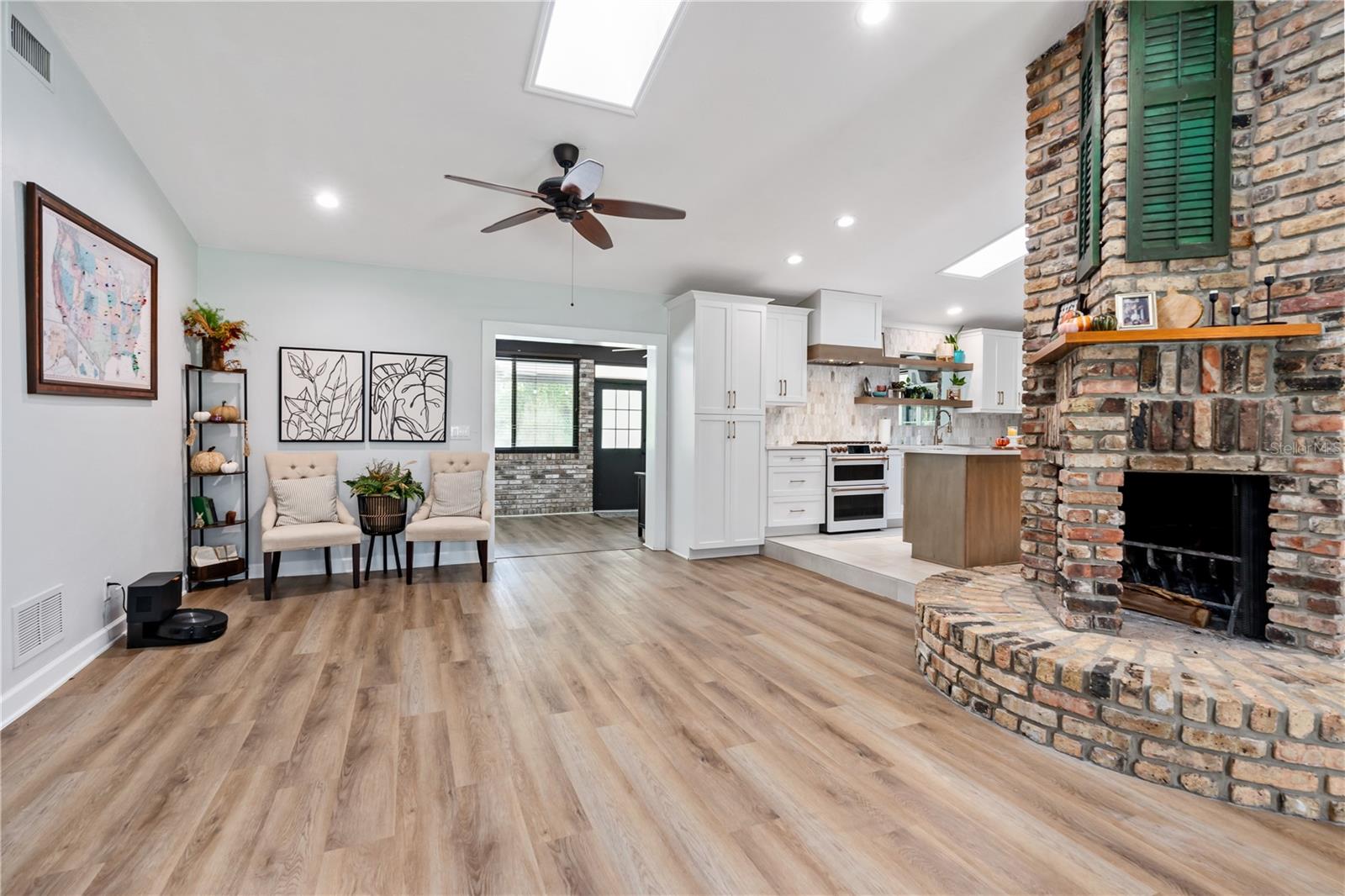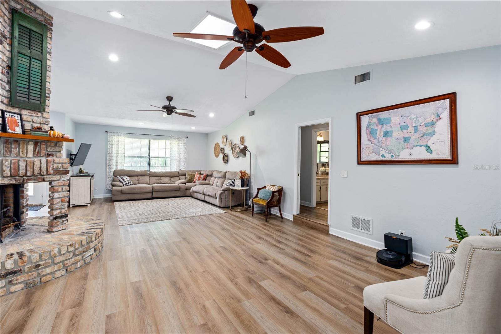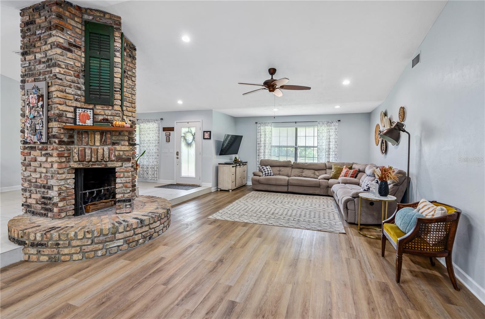 Private 1-Acre Brick Home in Beautiful Spruce Creek Estates - Experience privacy and comfort in this spacious, split-plan brick home. Step inside to find a welcoming atmosphere enhanced by a double wood-burning fireplace, perfectly placed to create cozy spaces for all to enjoy. Living area spacious enough for an additional dining area or a formal sitting room. Love to entertain, the dining room will be the perfect setting for your beautiful farm table or your family heirloom dining set. Chef's Kitchen is open featuring GE Café appliances, double oven and microwave drawer. A center island perfect for meal prep, plus a large pantry to keep everything organized. Floating Shelves in Kitchen giving you a great space to showcase your favorite décor. Primary suite is a peaceful retreat with a walk-in closet plus a second double closet. The updated en-suite bath offers a double vanity, and a large shower. Guest Suites are situated on the opposite side of the home for added privacy. Versatile Florida Room is expansive enough to serve as a gym, game room, or additional sitting area for family gatherings. Outside, enjoy the private, tree-lined backyard that adds privacy while you have your late-night swim in the salt water pool. Outside Shower. New paver driveway and walkway to front entrance. Cozy front porch, perfect setting for a couple rocking chairs to relax after a long day at work. Easy access to shopping, restaurants, and the beach, plus room for your recreational toys, this home truly offers the best of both worlds. This home did not flood with recent Hurricanes. NO FLOODING. Roof 2017; AC 2020; Water Heater 2019ish; Garage Door 2019All measurements and information deemed to be accurate but cannot be guaranteed, buyers and realtors are advised to verify.
