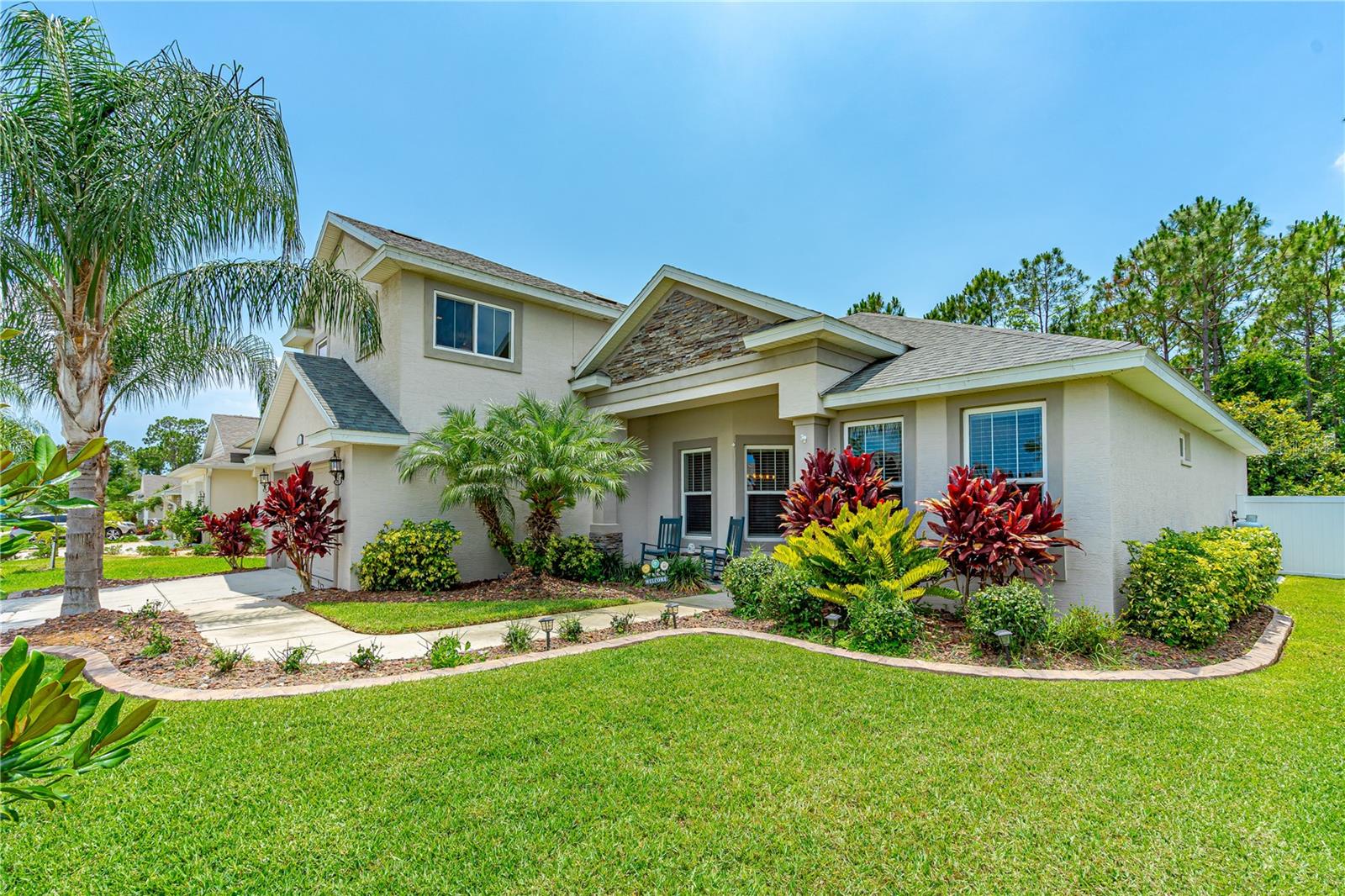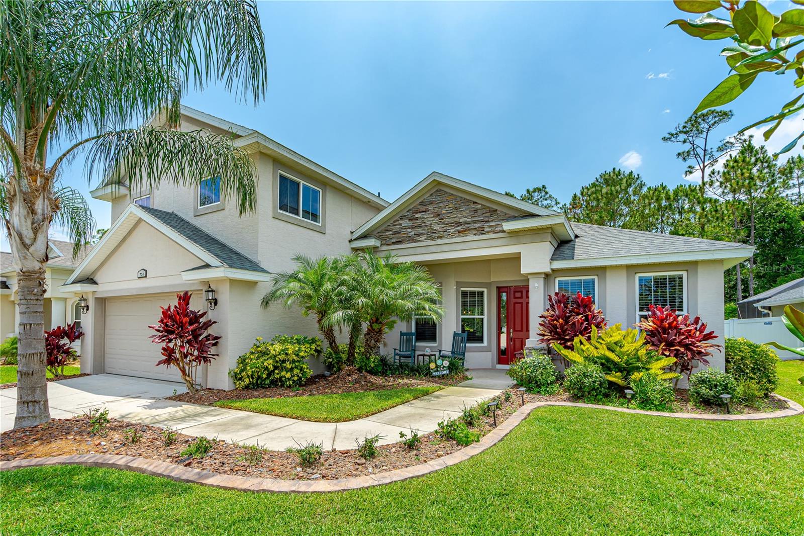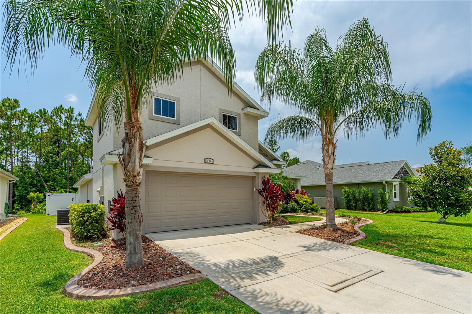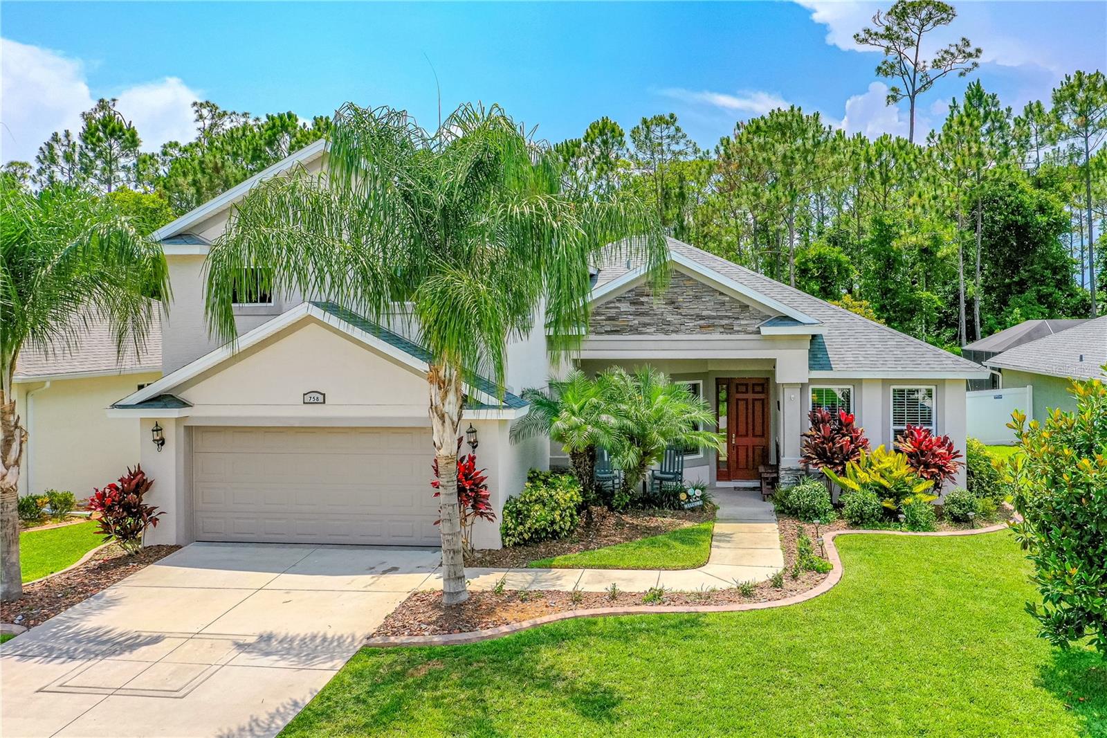 Welcome to your dream home in Pinnacle Parke, Port Orange, Florida! This 2019-built residence boasts a spacious and versatile layout with three bedrooms with a bonus room with connecting bathroom can be used as possible dual primary bedroom, three full bathrooms, and an office/den. The split floor plan ensures privacy, with all bedrooms conveniently located downstairs. Enjoy the expansive bonus room upstairs, complete with a closet and bathroom, perfect for a guest room, recreation area, or mother-in-law suite. The heart of the home is the open-concept living area, featuring a modern kitchen with a sleek design and a large island ideal for entertaining. Additional highlights include a cozy fireplace, a screened lanai, and an extended paver patio and deck with a citrus tree, creating a perfect backyard entertainment space. All measurements and information deemed to be accurate but cannot be guaranteed, buyers and realtors are advised to verify.