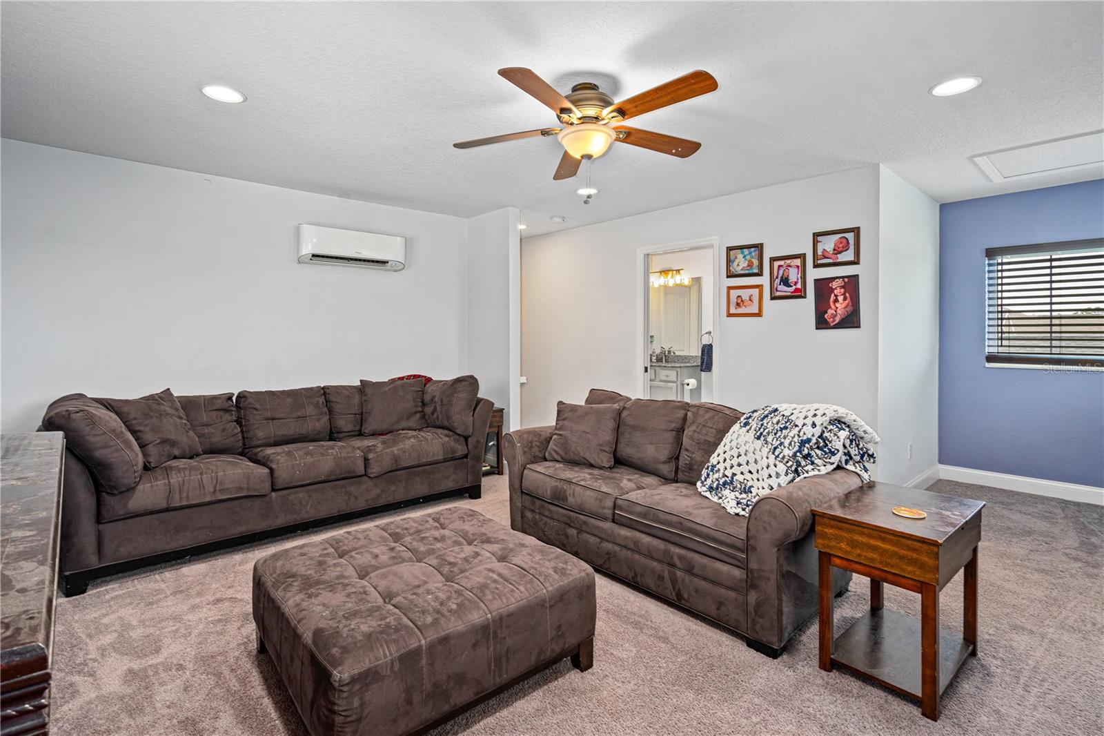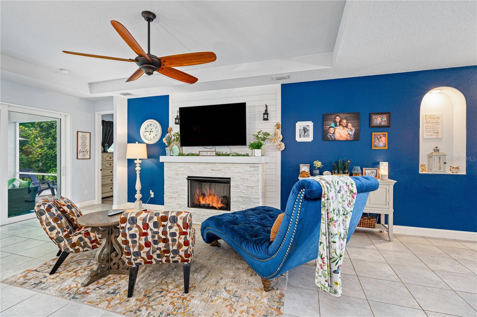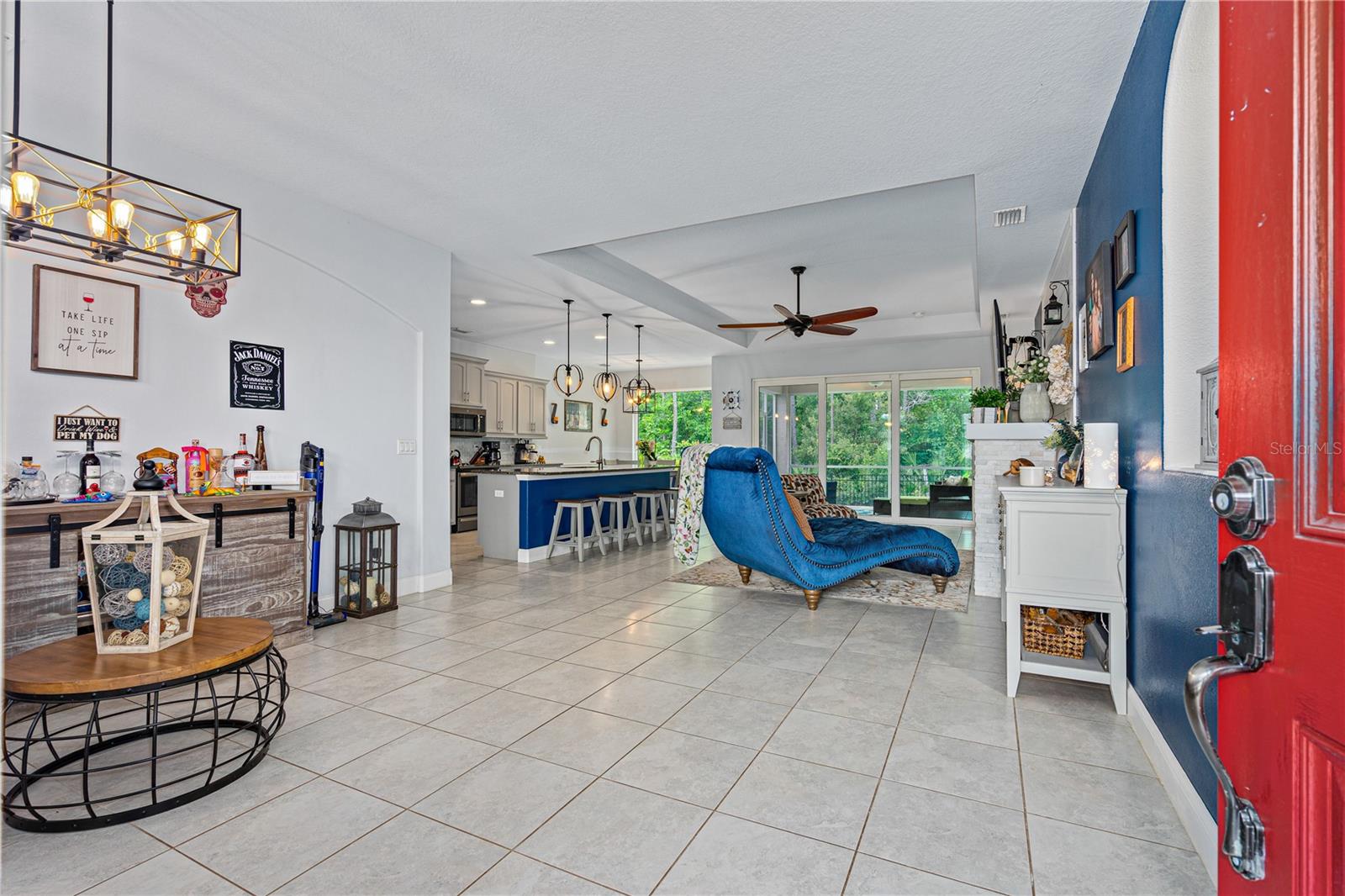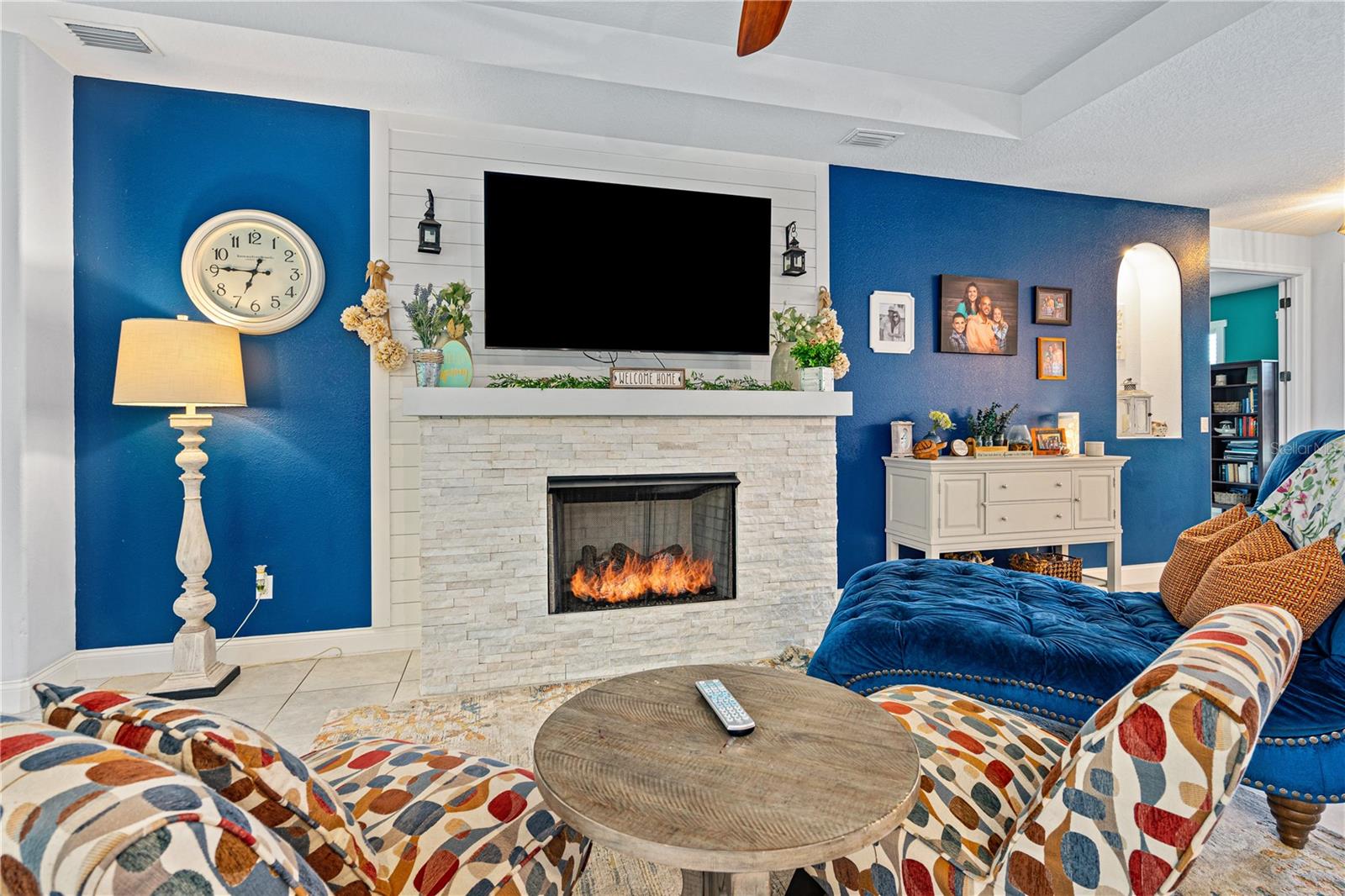 Welcome to your dream home in Pinnacle Parke, Port Orange, Florida! This 2019-built residence boasts a spacious and versatile layout with three bedrooms with a bonus room with connecting bathroom can be used as possible dual primary bedroom, three full bathrooms, and an office/den. The split floor plan ensures privacy, with all bedrooms conveniently located downstairs. Enjoy the expansive bonus room upstairs, complete with a closet and bathroom, perfect for a guest room, recreation area, or mother-in-law suite. The heart of the home is the open-concept living area, featuring a modern kitchen with a sleek design and a large island ideal for entertaining. Additional highlights include a cozy fireplace, a screened lanai, and an extended paver patio and deck with a citrus tree, creating a perfect backyard entertainment space. All measurements and information deemed to be accurate but cannot be guaranteed, buyers and realtors are advised to verify.