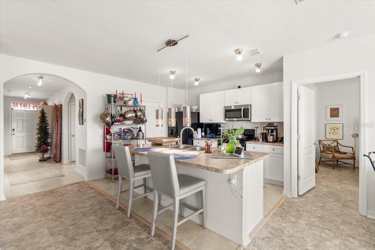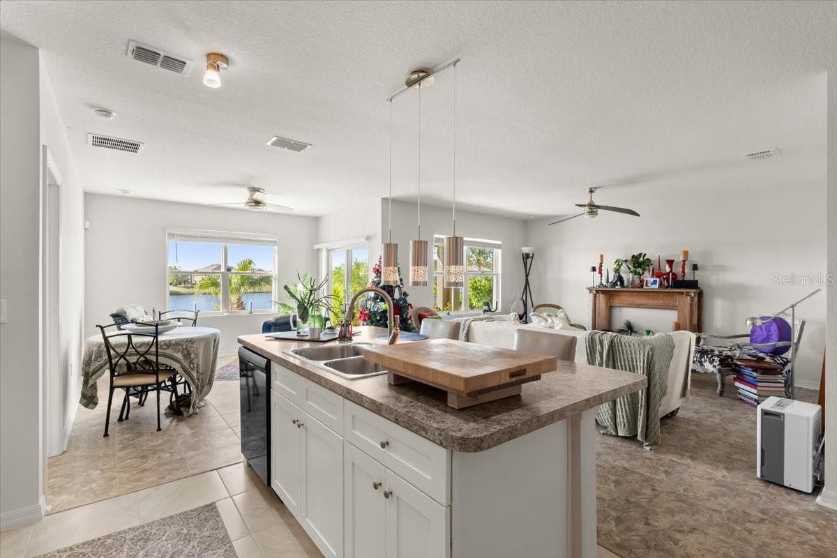 Discover the perfect blend of modern elegance and serene lakefront living in this stunning 3-bedroom, 2-bathroom home located in the highly sought-after Hawks Preserve community in Port Orange. Built in 2019, this home features fresh interior paint and updated flooring throughout, creating a bright and inviting atmosphere. The brand-new hurricane-resistant sliding glass door provides peace of mind and opens to breathtaking lake views. Updated light fixtures add a contemporary touch, while custom landscaping surrounds the property, enhancing its curb appeal. Relax on the back porch and take in spectacular sunsets over the lake, offering a daily retreat right in your backyard. This beautifully updated home is designed for comfort, style, and unforgettable views.