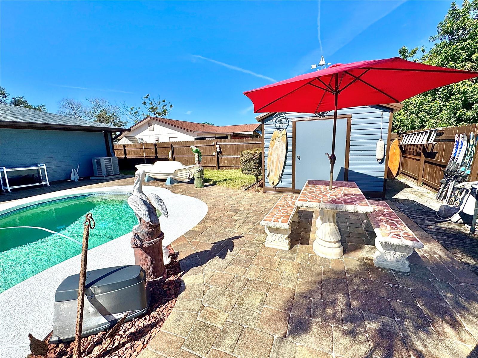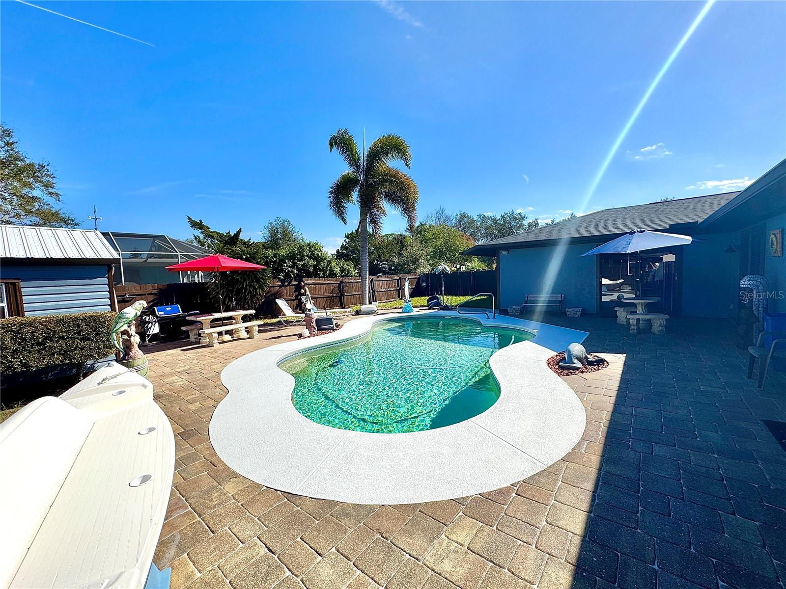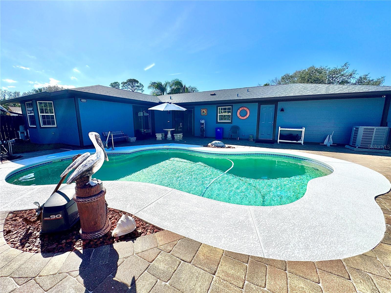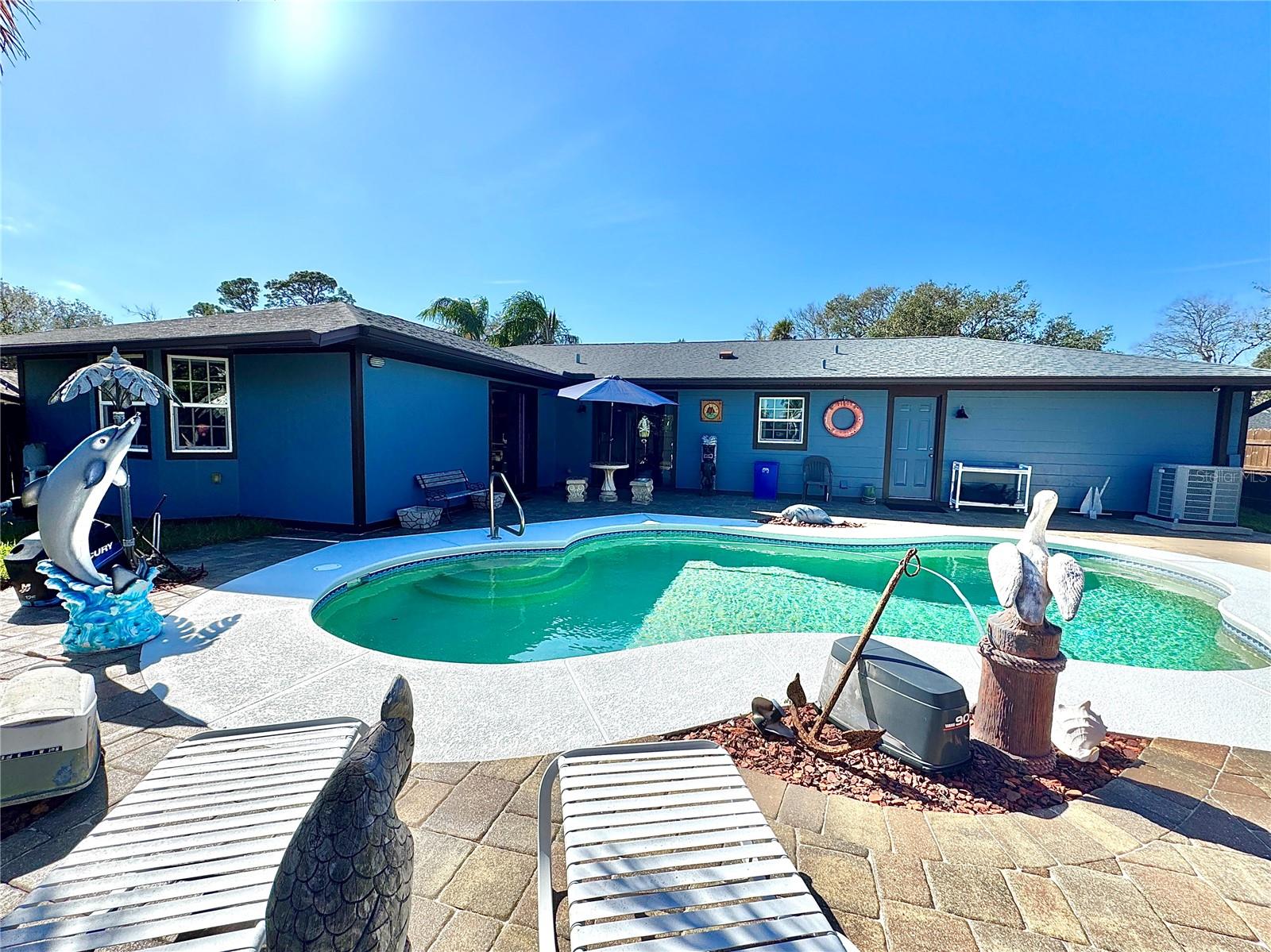 Across from the river, this 3 bedroom 2 bathroom saltwater pool home sits on a large corner lot with beautiful landscaping & trees. Nestled between US1 & the river, as you enter into your living area you have views of your kitchen & pool. Kitchen has ample counter space with a large bar top island & stainless steel appliances. Grade 4 porcelain tile flooring throughout. Large master suite has a walk-in closet and sliders leading you to the pool deck. Extra tile flooring in the garage if you want to continue the tile into the master bathroom. Guest bedroom 1 has a large walk-in closet. Guest bathroom has a newer tile shower. 2015 Roof. 2 car oversize garage is climate controlled. A/C in garage is 2017 & a 3.5 ton unit. Washer & Dryer in the garage. Newer 180 mph wind garage door with brace. You have access to the pool/backyard from your garage, living area & master suite. Wood is pressure treated & home has a Termite Bond. Irrigation system is on well. This home has never flooded & is not in a flood zone! Saltwater pool has a new pump, new pool vacuum & an adjustable 20 foot dolphin fountain. Pool deck has recently been sealed & painted. Upgraded electrical 200amp. Some windows are newer double pane up to 180 mph winds. Electric fireplace. All newer fans. Shed out back is 10x10 with electric & has a ceiling fan. Grill is also included. All windows across the back of the home are updated 180 mph wind proof with fold out double pane glass filled vinyl. 15 inches of insulation throughout the home making it pass with flying colors for FPL energy savings! Backyard was redone with exterior steel doors. Security cameras on all 4 corners of the home. Newer hot water heater. A true Florida paradise for any family!