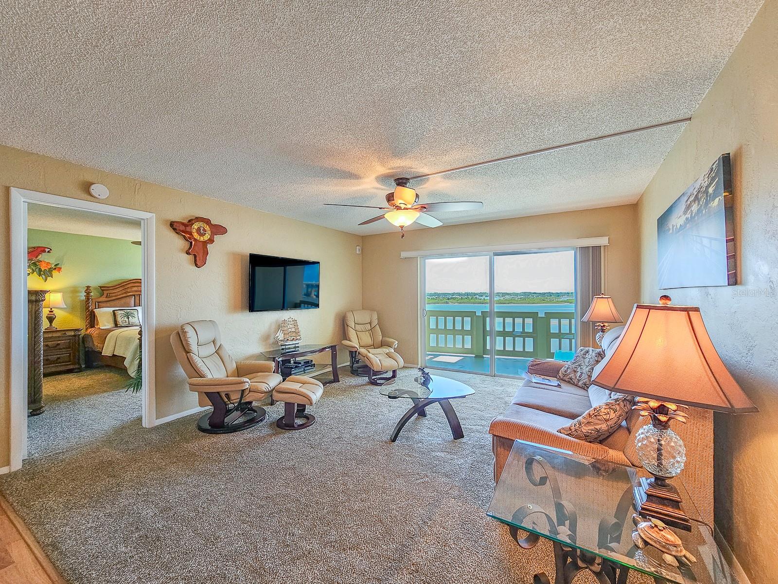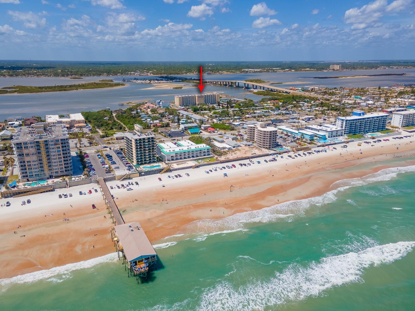 Welcome to an extraordinary opportunity to own this stunning DIRECT RIVERFRONT condominium on the 7th floor of one of the area's most coveted buildings, nestled on a quiet, no-through street. This beautifully renovated and FULLY FURNISHED 2-bedroom, 2-bath residence offers panoramic, awe-inspiring views of the Intracoastal Waterway (Halifax River) and stretches all the way to the Atlantic Ocean. From the moment you step through the glass-paneled front door, you'll be captivated by the natural light that floods the space and draws you toward the private riverfront balcony—your personal sanctuary with sweeping views to the South and Ponce Inlet Lighthouse to the North towards Daytona Beach Shores. The open-concept layout is designed with a split bedroom plan for added privacy. Wake up to sailboats gliding across the water and pelicans soaring past at eye level from your spacious primary suite, complete with a luxurious ensuite bathroom featuring a newly updated walk-in shower, vanity, and elegant finishes. The guest bedroom and bath have also been tastefully updated, ensuring comfort and Florida style throughout. Enjoy cooking in a kitchen where OCEAN VIEWS turn meal prep into a delight. Recent updates include a brand new AC (2024), new carpet in the bedrooms and living area, luxury vinyl plank flooring in the dining space, and tile in the kitchen and bathrooms. Resort-style amenities elevate the lifestyle here: • Riverfront heated pool & sauna • Floating kayak launch • Recently renovated social room (aka The Pelican Lounge) with floor-to-ceiling windows, full kitchen, TV, pool table, ping pong and never-ending puzzles as well as a mini library for residents • Assigned parking, private storage unit, bike racks, and water-toy storage. Just a few blocks from the World’s Most Famous Beach, this home offers the perfect blend of serenity and excitement with front row seat of sunrises to your balcony of spectacular sunsets. After 23 cherished years of family winter memories, this lovingly cared-for condo is ready to welcome new owners and their next generation of unforgettable moments. Live the good life every day—this rarely available riverfront gem will not disappoint!