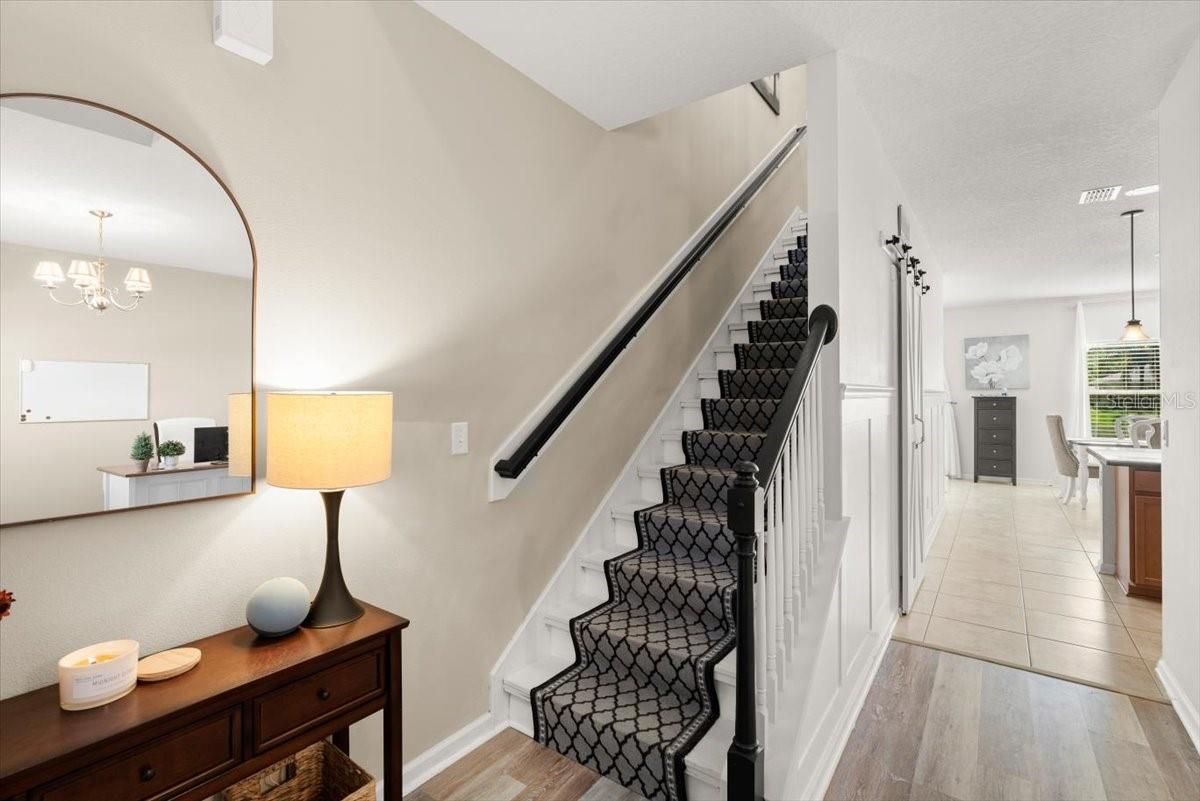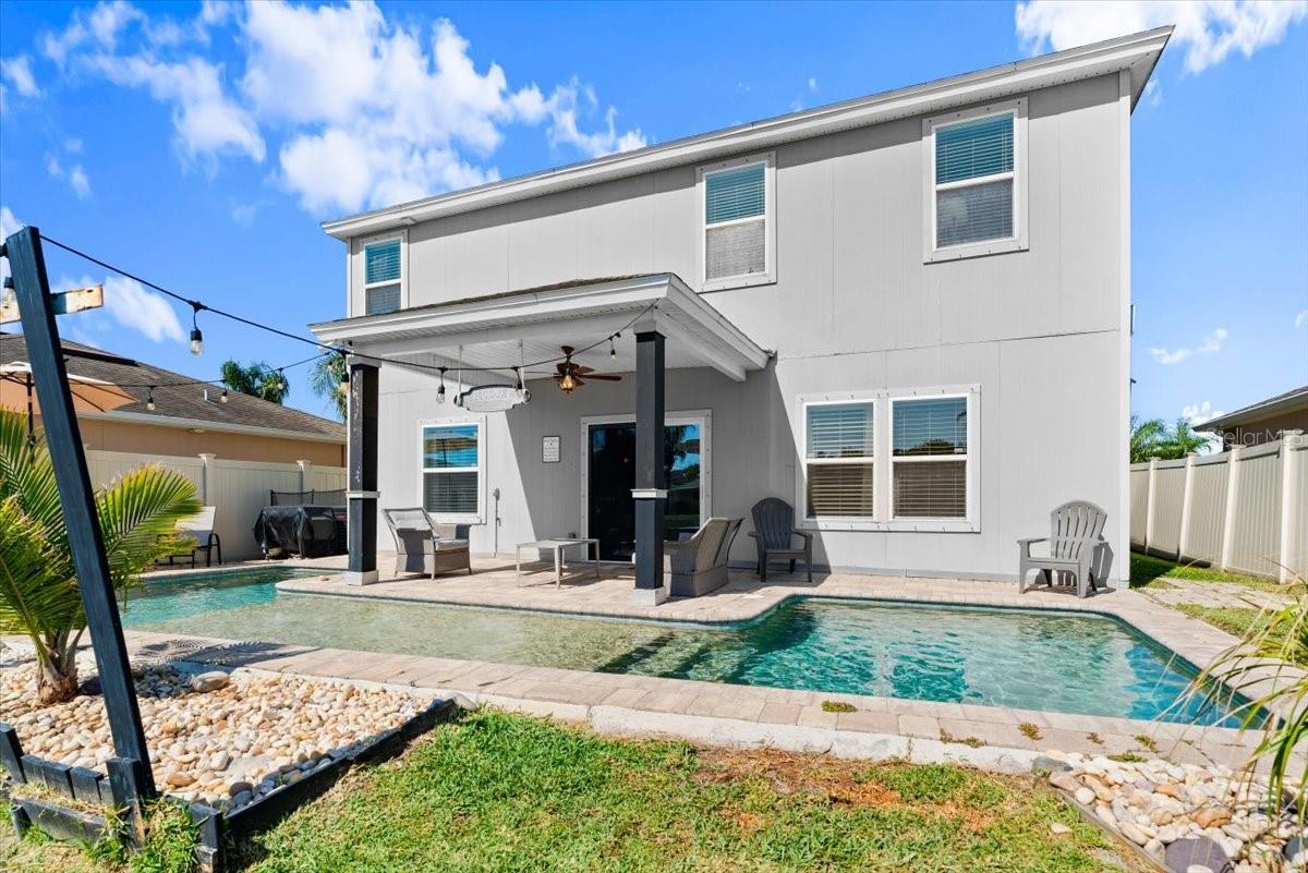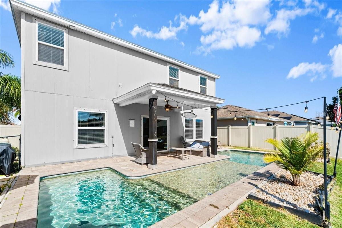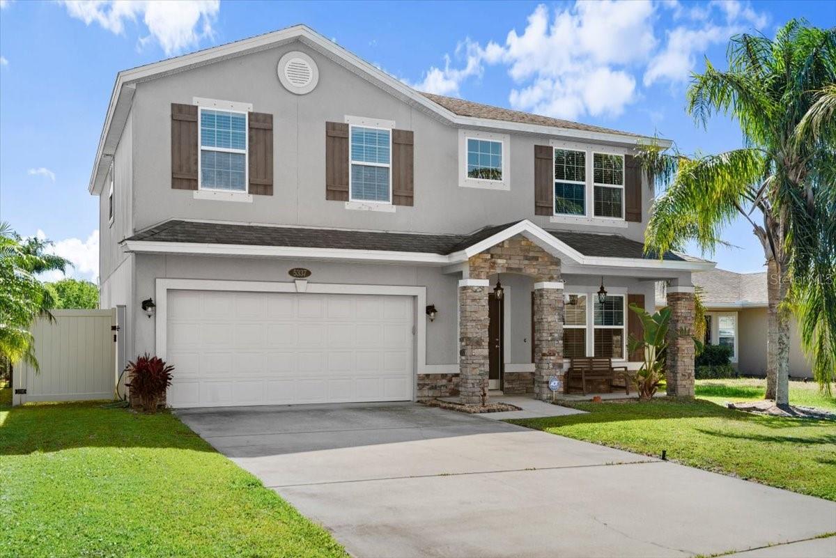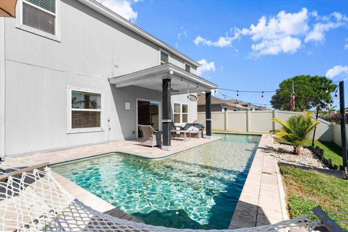Welcome to this beautifully landscaped 2-story lakefront pool home in the desirable Port Orange Plantation community! Featuring 4 bedrooms, 2 full baths upstairs, and a convenient half bath downstairs, this home offers the perfect layout for both comfort and functionality. As you enter, you'll find a versatile flex space—ideal for a home office, playroom, or additional living area. The main floor showcases an updated custom pantry with charming sliding barn doors tucked under the staircase, along with stylish flooring throughout—no carpet in sight. All bedrooms and the laundry room are located upstairs for added convenience. Step outside to a fenced-in backyard oasis with a sparkling pool and serene lake views. Additional highlights include a 2-car garage and a 4-year-old A/C unit. Located just minutes from Coraci Sports Complex, shopping and dining at the Port Orange Pavilion, and only a 15-minute drive to the beach down Dunlawton Avenue.