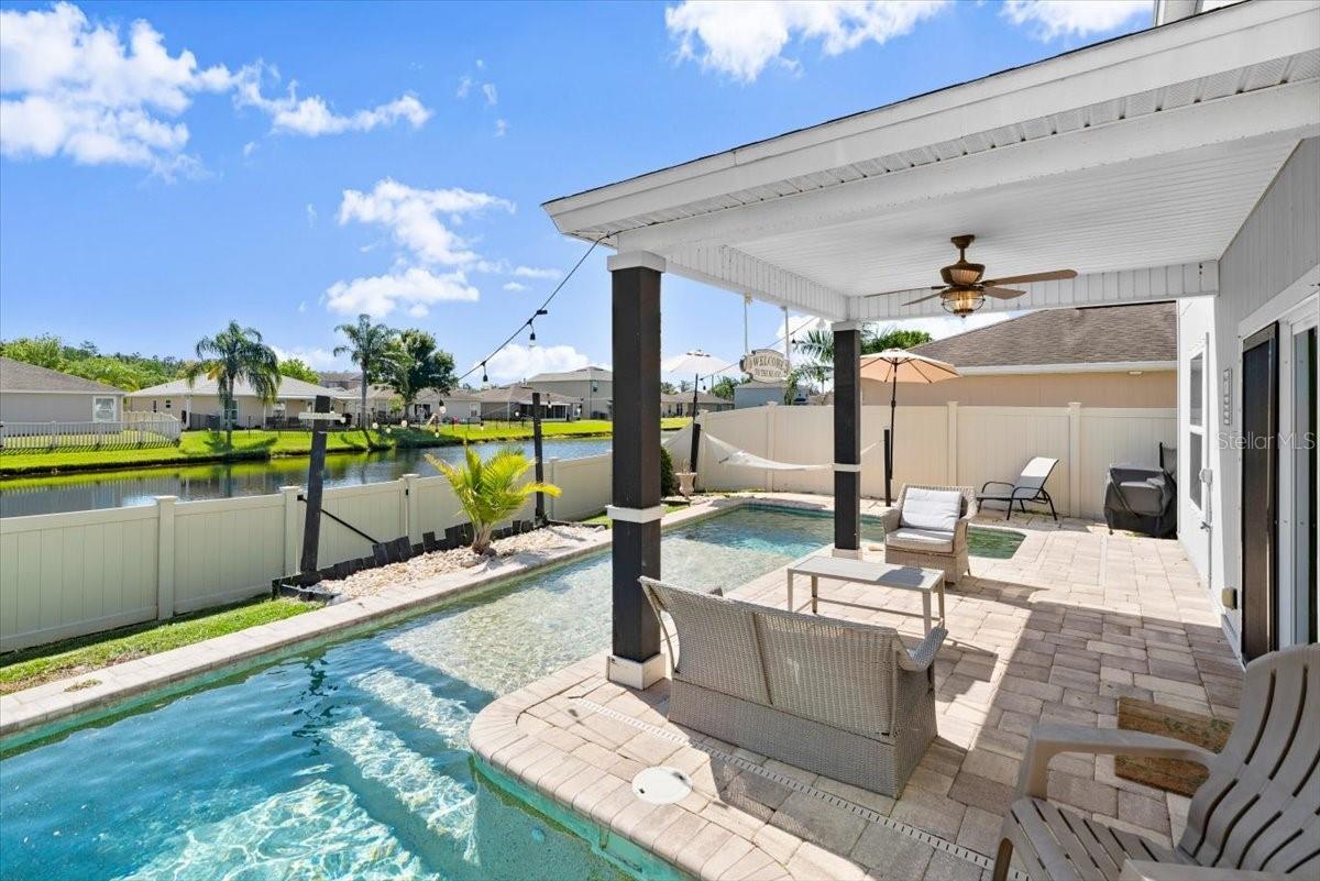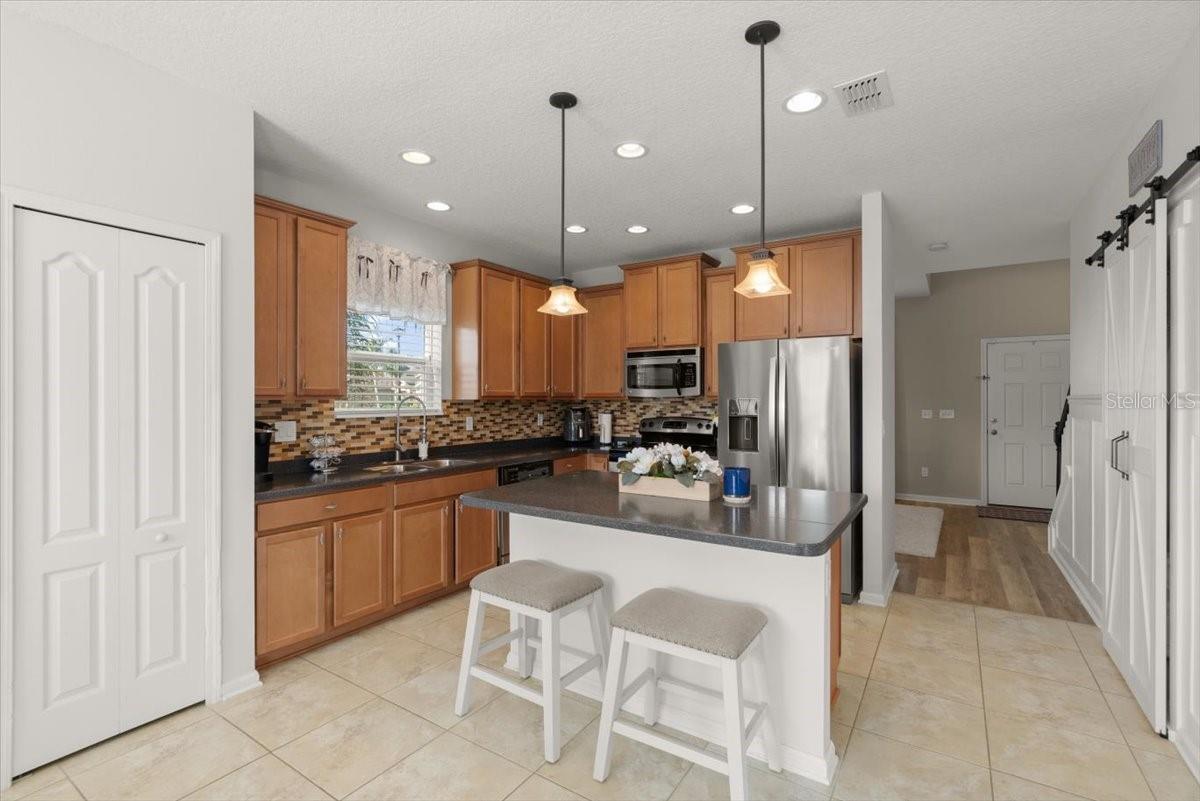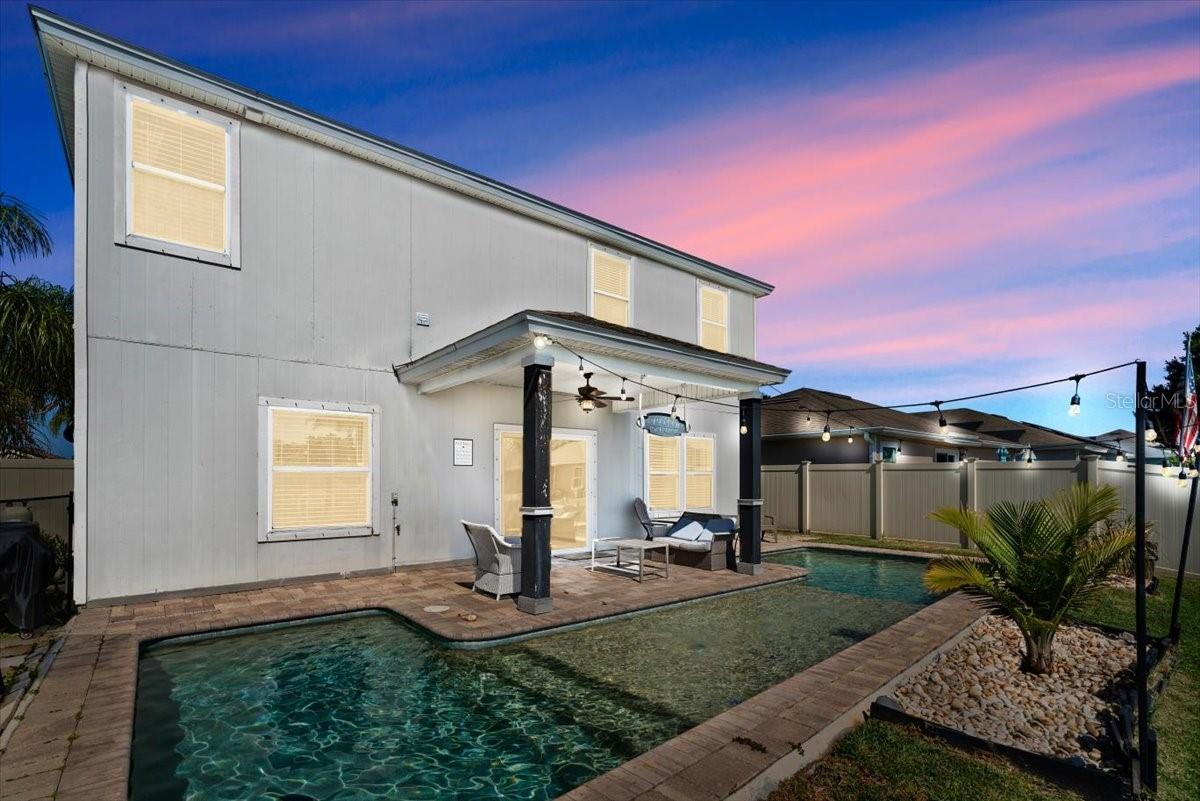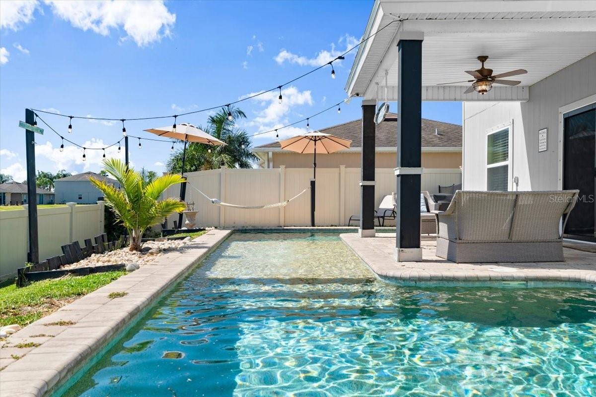 Welcome to this beautifully landscaped 2-story lakefront pool home in the desirable Port Orange Plantation community! Featuring 4 bedrooms, 2 full baths upstairs, and a convenient half bath downstairs, this home offers the perfect layout for both comfort and functionality. As you enter, you'll find a versatile flex space—ideal for a home office, playroom, or additional living area. The main floor showcases an updated custom pantry with charming sliding barn doors tucked under the staircase, along with stylish flooring throughout—no carpet in sight. All bedrooms and the laundry room are located upstairs for added convenience. Step outside to a fenced-in backyard oasis with a sparkling pool and serene lake views. Additional highlights include a 2-car garage and a 4-year-old A/C unit. Located just minutes from Coraci Sports Complex, shopping and dining at the Port Orange Pavilion, and only a 15-minute drive to the beach down Dunlawton Avenue.