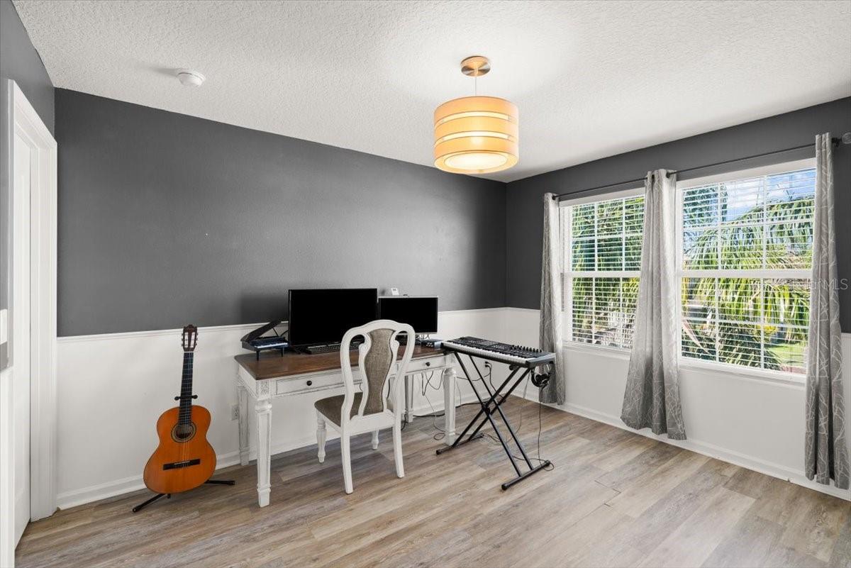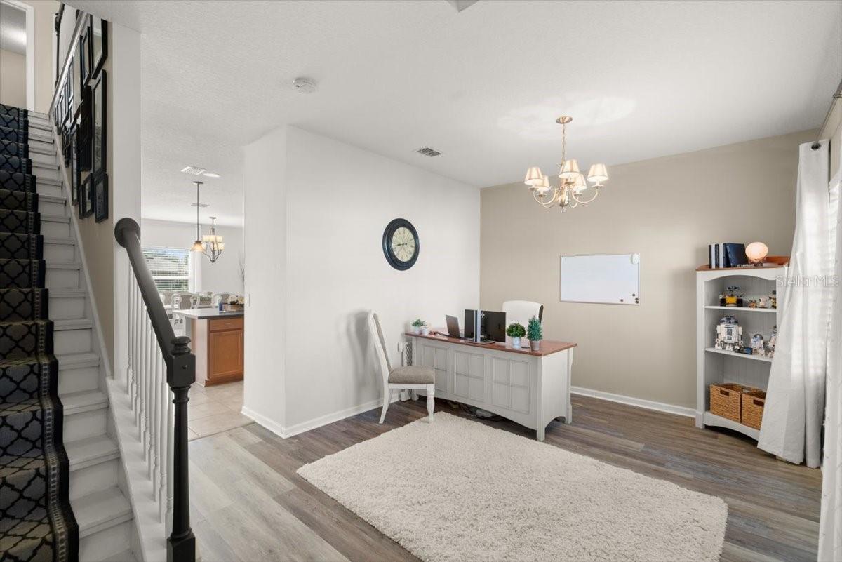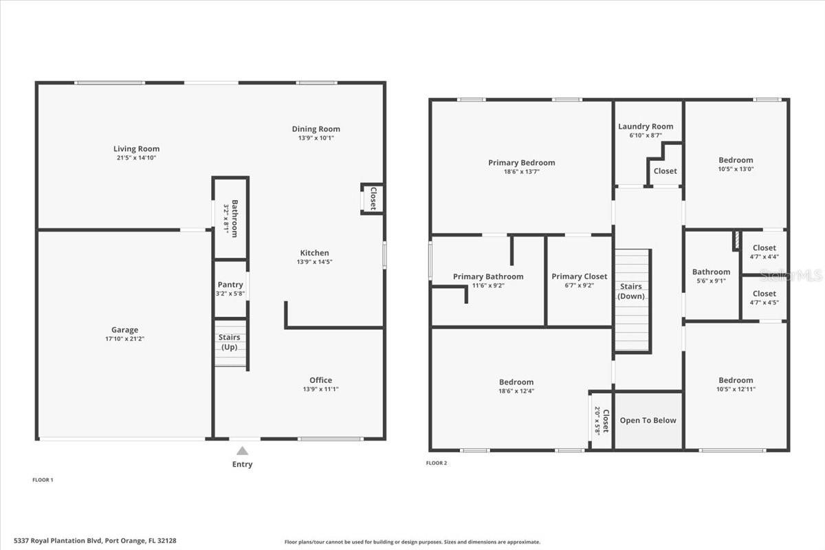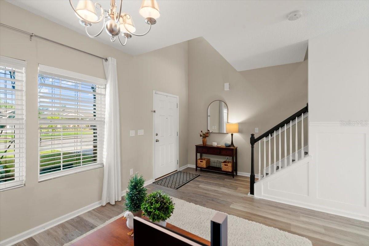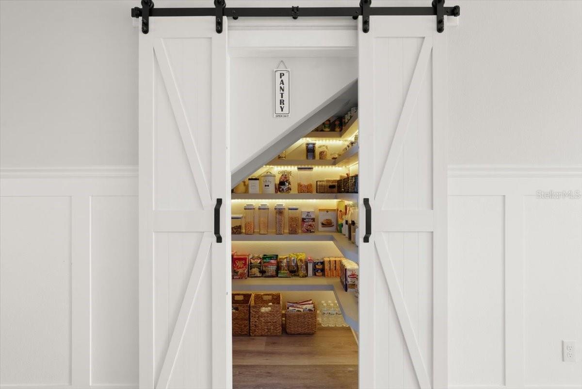 Welcome to this beautifully landscaped 2-story lakefront pool home in the desirable Port Orange Plantation community! Featuring 4 bedrooms, 2 full baths upstairs, and a convenient half bath downstairs, this home offers the perfect layout for both comfort and functionality. As you enter, you'll find a versatile flex space—ideal for a home office, playroom, or additional living area. The main floor showcases an updated custom pantry with charming sliding barn doors tucked under the staircase, along with stylish flooring throughout—no carpet in sight. All bedrooms and the laundry room are located upstairs for added convenience. Step outside to a fenced-in backyard oasis with a sparkling pool and serene lake views. Additional highlights include a 2-car garage and a 4-year-old A/C unit. Located just minutes from Coraci Sports Complex, shopping and dining at the Port Orange Pavilion, and only a 15-minute drive to the beach down Dunlawton Avenue.