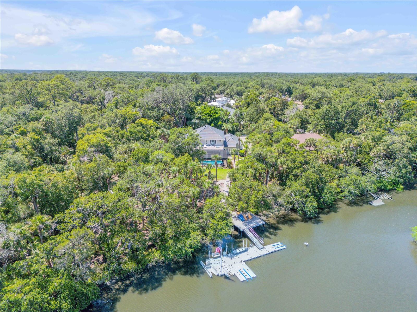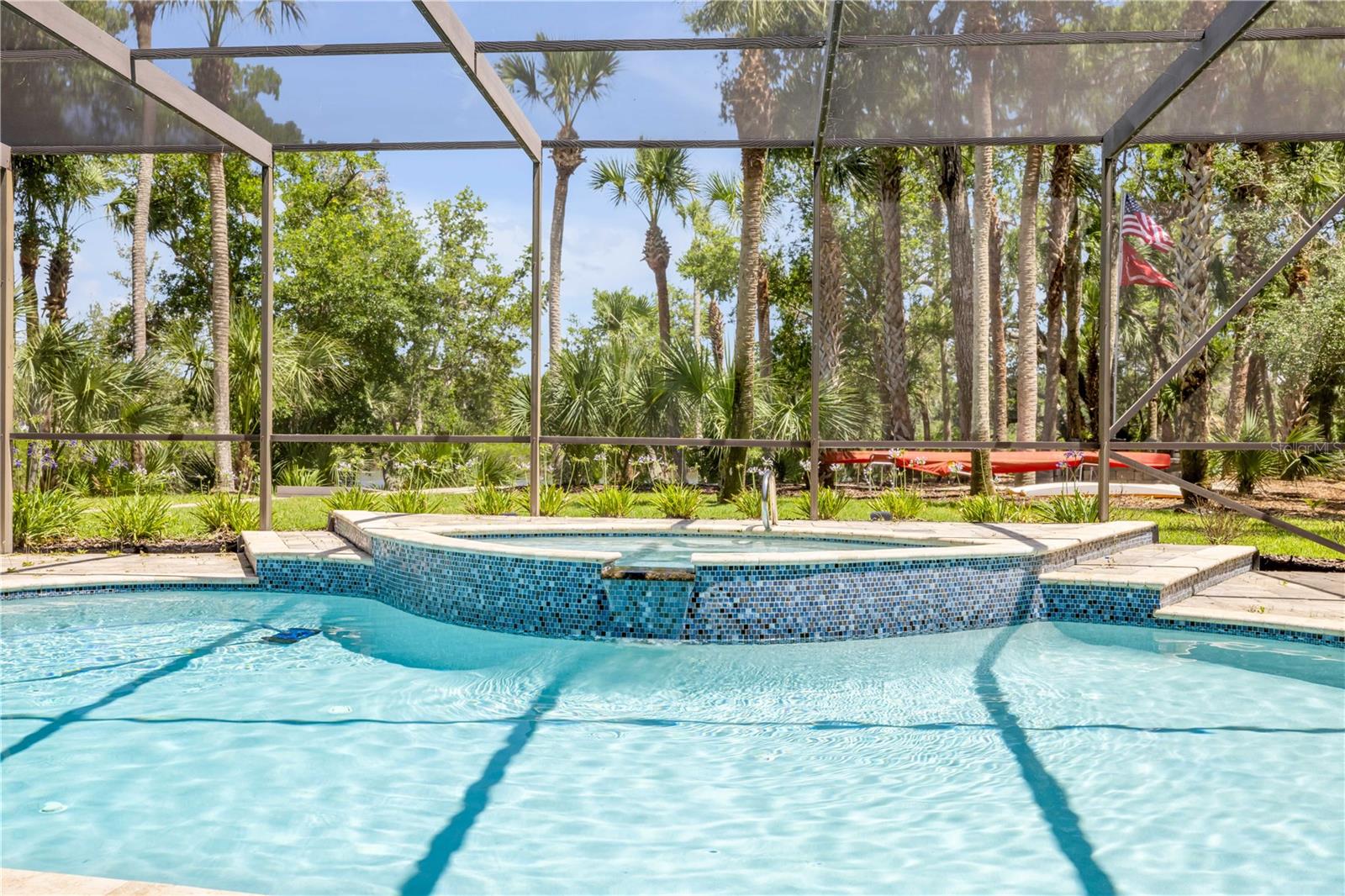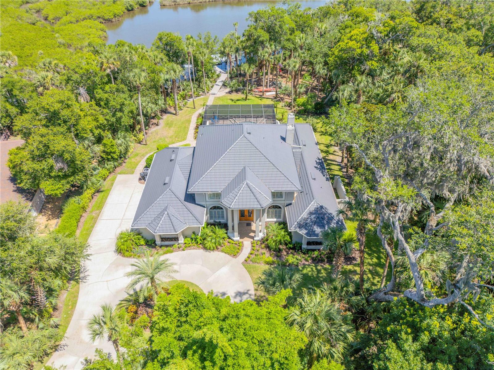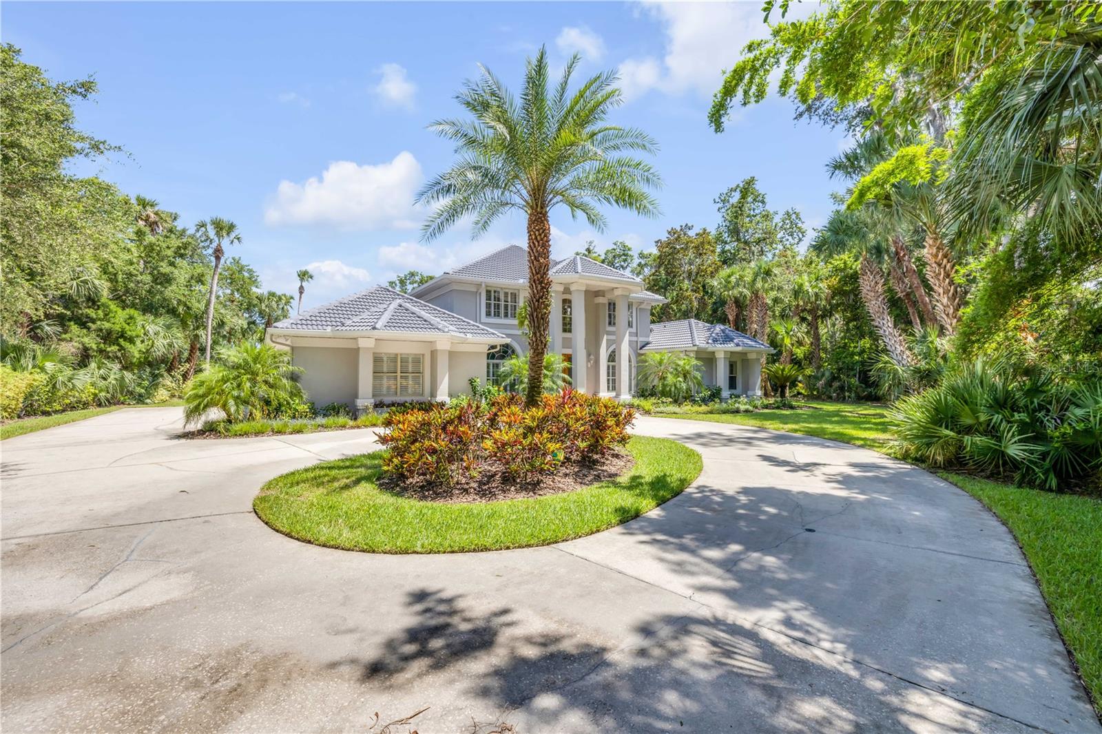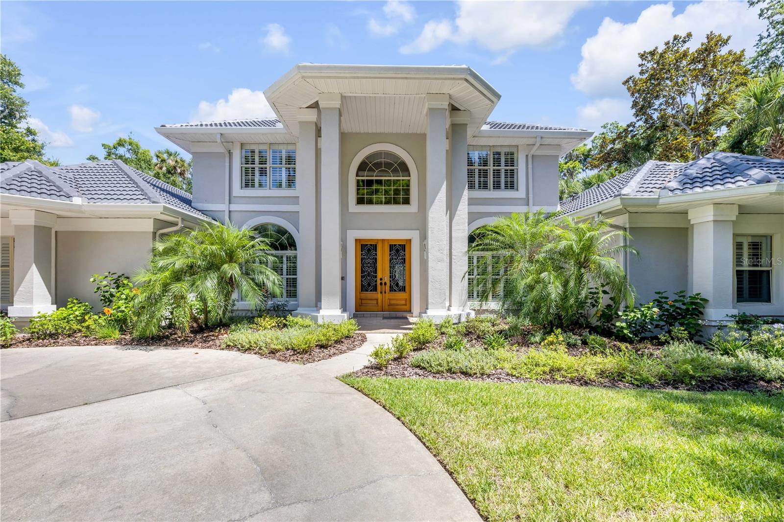 Stunning 5 Bdr, 4 1/2 Ba, waterfront pool estate home at 6325 Palmas Bay, located in the gated Palmas Bay Club within the Riverwood community of Port Orange. Positioned on a semi private cul de sac along Spruce Creek with direct access to the Halifax River and Intracoastal Waterway, ideal for boating enthusiasts. This home features a circular driveway, lush landscaping, and a 3 car garage. Inside the home is a grand foyer, formal dining, spacious kitchen with island and breakfast nook, and a large living room with gas fireplace. Sliders open to a screened outdoor living area, summer kitchen, and fully screened in pool. The first floor includes the primary suite, pool bath, laundry, and media room. Upstairs offers three bedrooms, two full baths, and a divided sitting area. A paver walkway leads to a large deck and floating dock, perfect for fishing, relaxing, or launching your boat. Located minutes to beaches, dining, shopping, and top rated schools in Port Orange. POF/Pre-approval for showings.