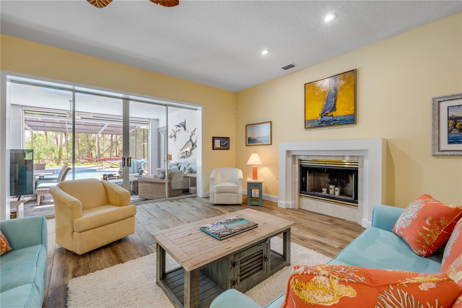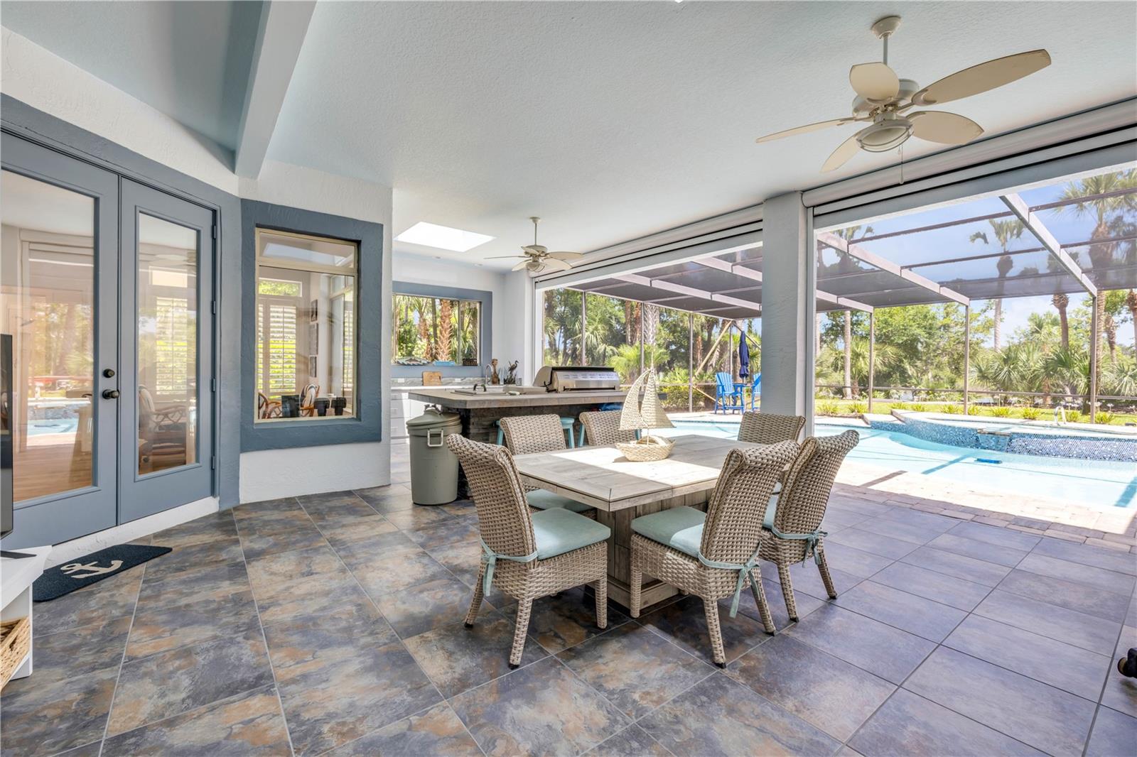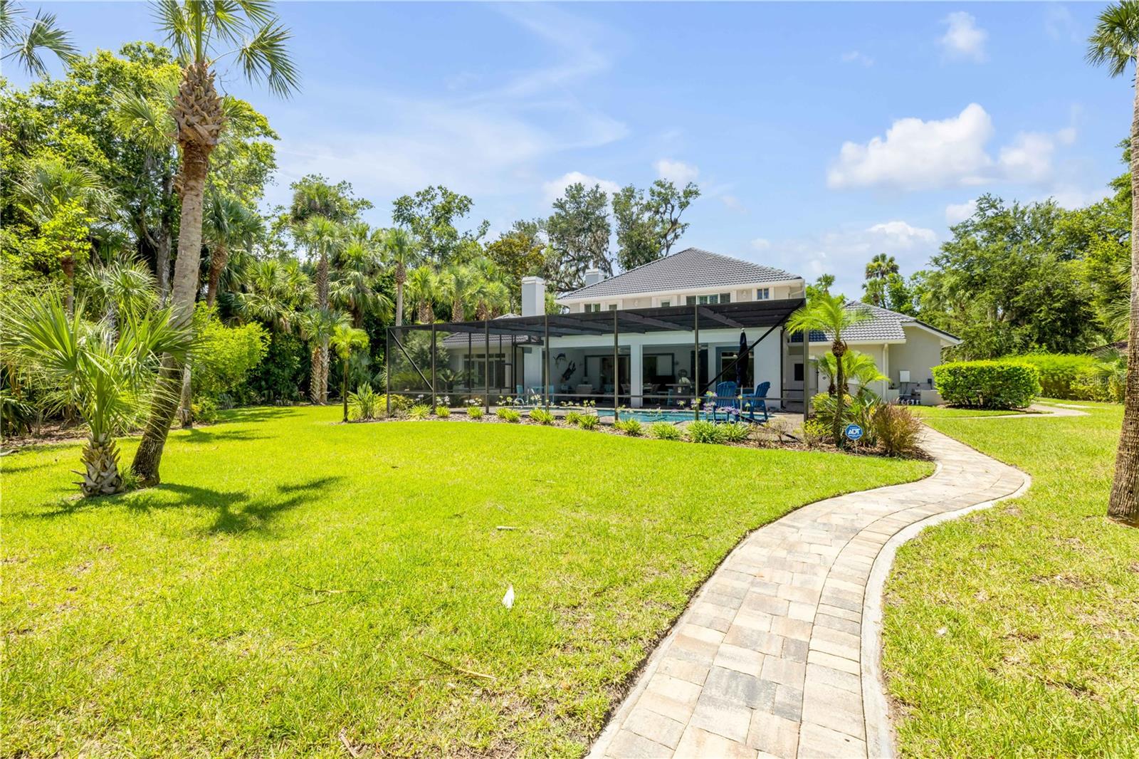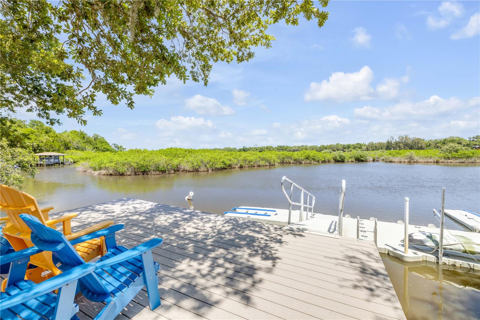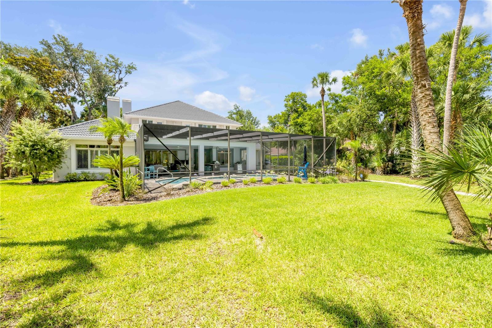 Stunning 5 Bdr, 4 1/2 Ba, waterfront pool estate home at 6325 Palmas Bay, located in the gated Palmas Bay Club within the Riverwood community of Port Orange. Positioned on a semi private cul de sac along Spruce Creek with direct access to the Halifax River and Intracoastal Waterway, ideal for boating enthusiasts. This home features a circular driveway, lush landscaping, and a 3 car garage. Inside the home is a grand foyer, formal dining, spacious kitchen with island and breakfast nook, and a large living room with gas fireplace. Sliders open to a screened outdoor living area, summer kitchen, and fully screened in pool. The first floor includes the primary suite, pool bath, laundry, and media room. Upstairs offers three bedrooms, two full baths, and a divided sitting area. A paver walkway leads to a large deck and floating dock, perfect for fishing, relaxing, or launching your boat. Located minutes to beaches, dining, shopping, and top rated schools in Port Orange. POF/Pre-approval for showings.