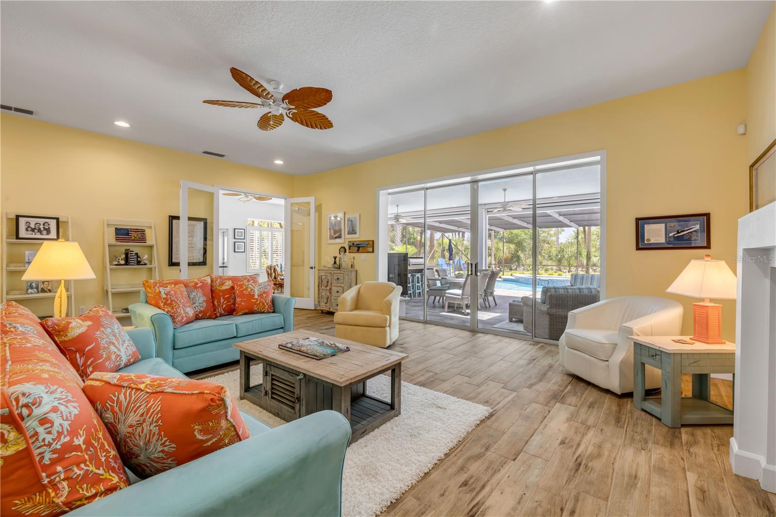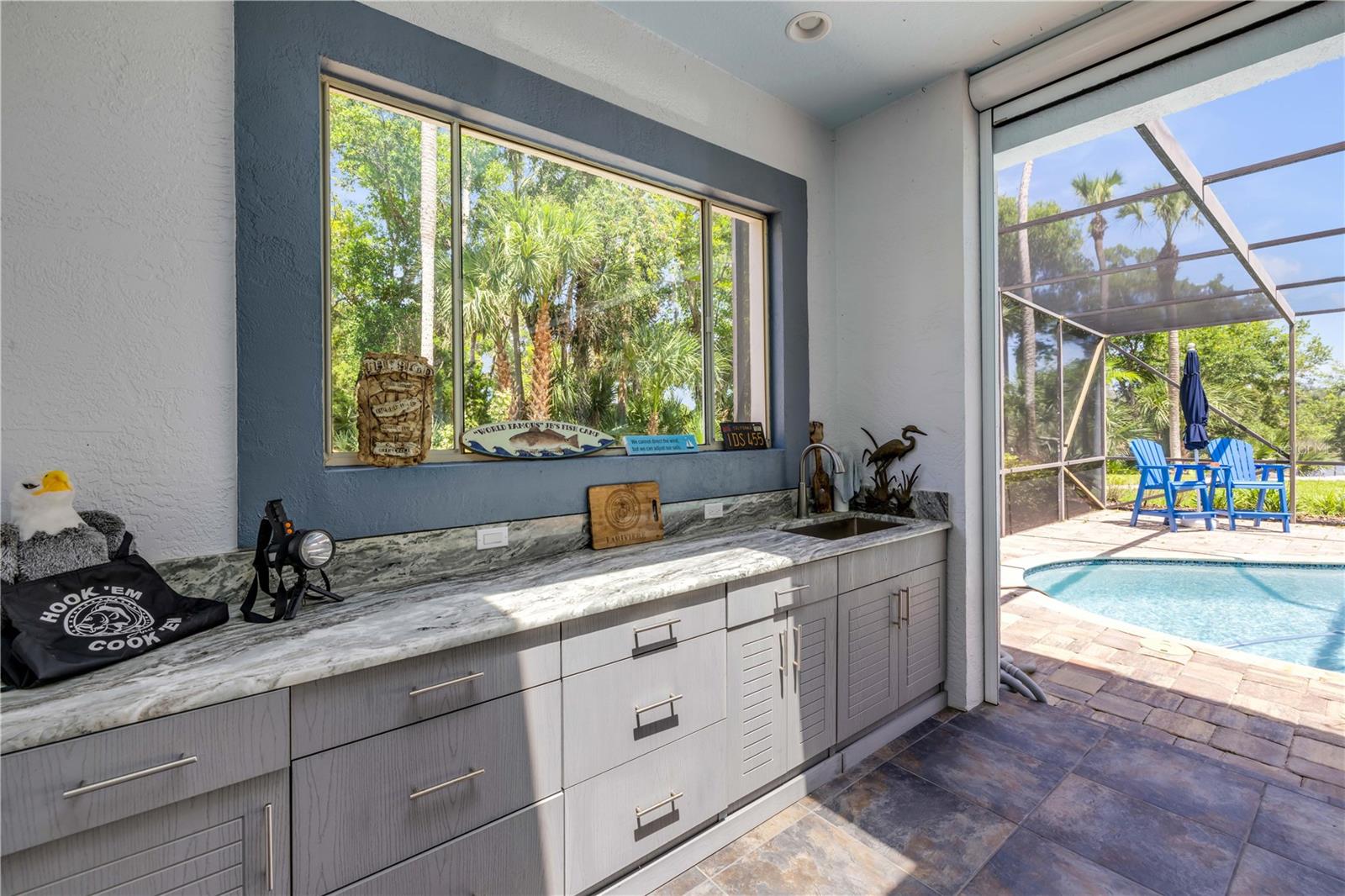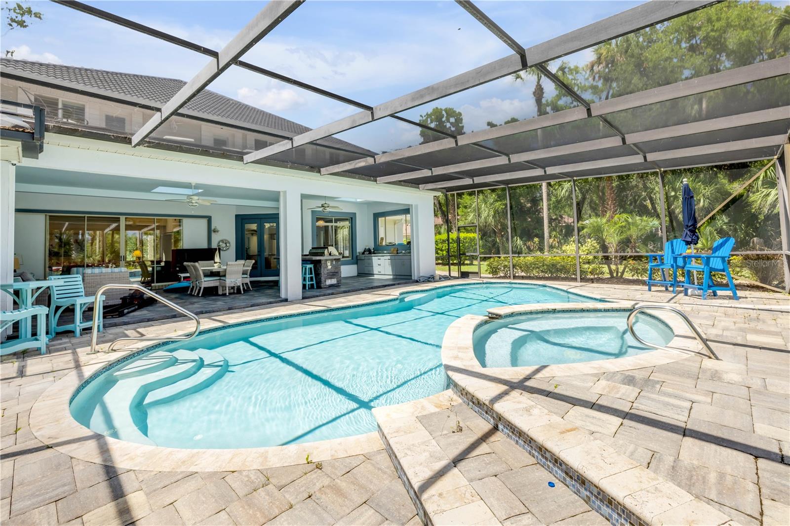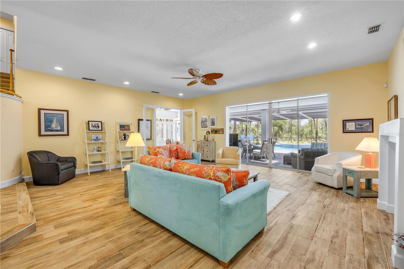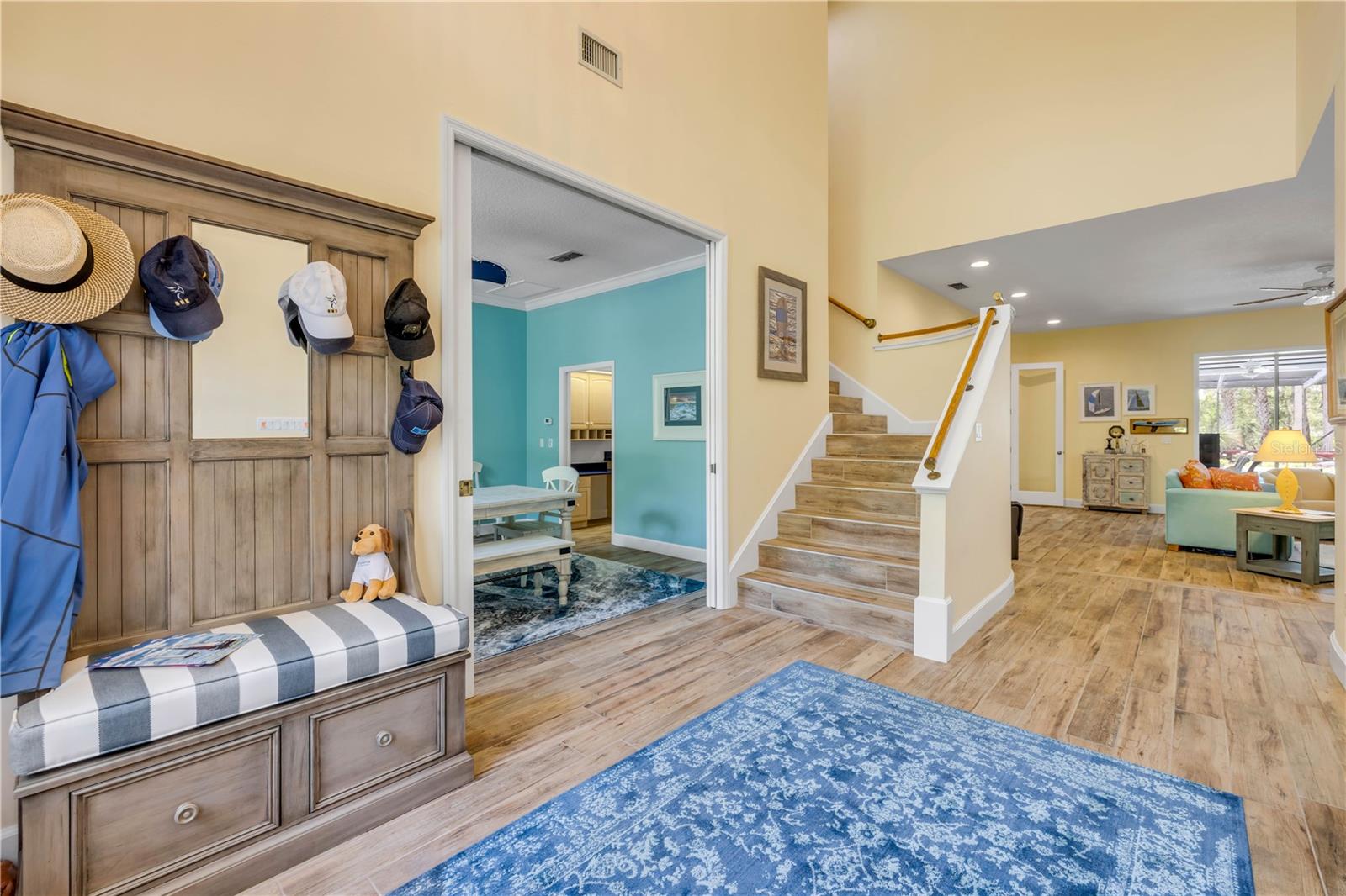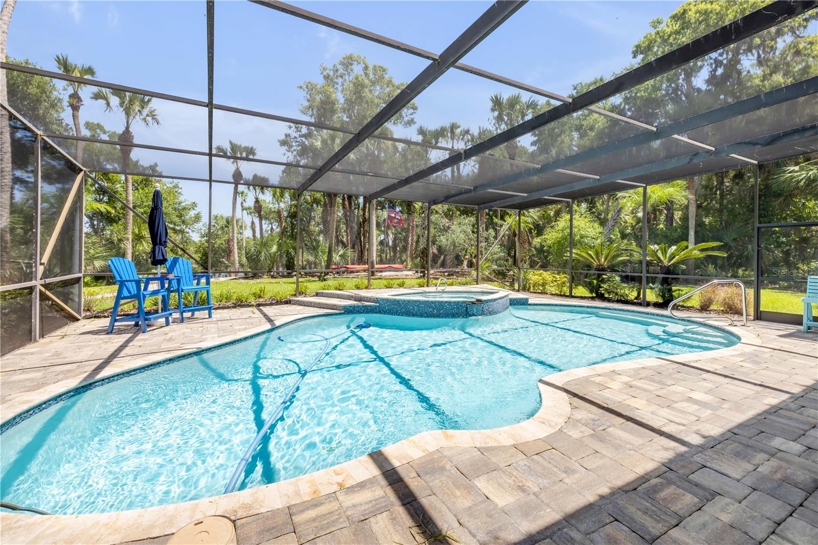 Stunning 5 Bdr, 4 1/2 Ba, waterfront pool estate home at 6325 Palmas Bay, located in the gated Palmas Bay Club within the Riverwood community of Port Orange. Positioned on a semi private cul de sac along Spruce Creek with direct access to the Halifax River and Intracoastal Waterway, ideal for boating enthusiasts. This home features a circular driveway, lush landscaping, and a 3 car garage. Inside the home is a grand foyer, formal dining, spacious kitchen with island and breakfast nook, and a large living room with gas fireplace. Sliders open to a screened outdoor living area, summer kitchen, and fully screened in pool. The first floor includes the primary suite, pool bath, laundry, and media room. Upstairs offers three bedrooms, two full baths, and a divided sitting area. A paver walkway leads to a large deck and floating dock, perfect for fishing, relaxing, or launching your boat. Located minutes to beaches, dining, shopping, and top rated schools in Port Orange. POF/Pre-approval for showings.
